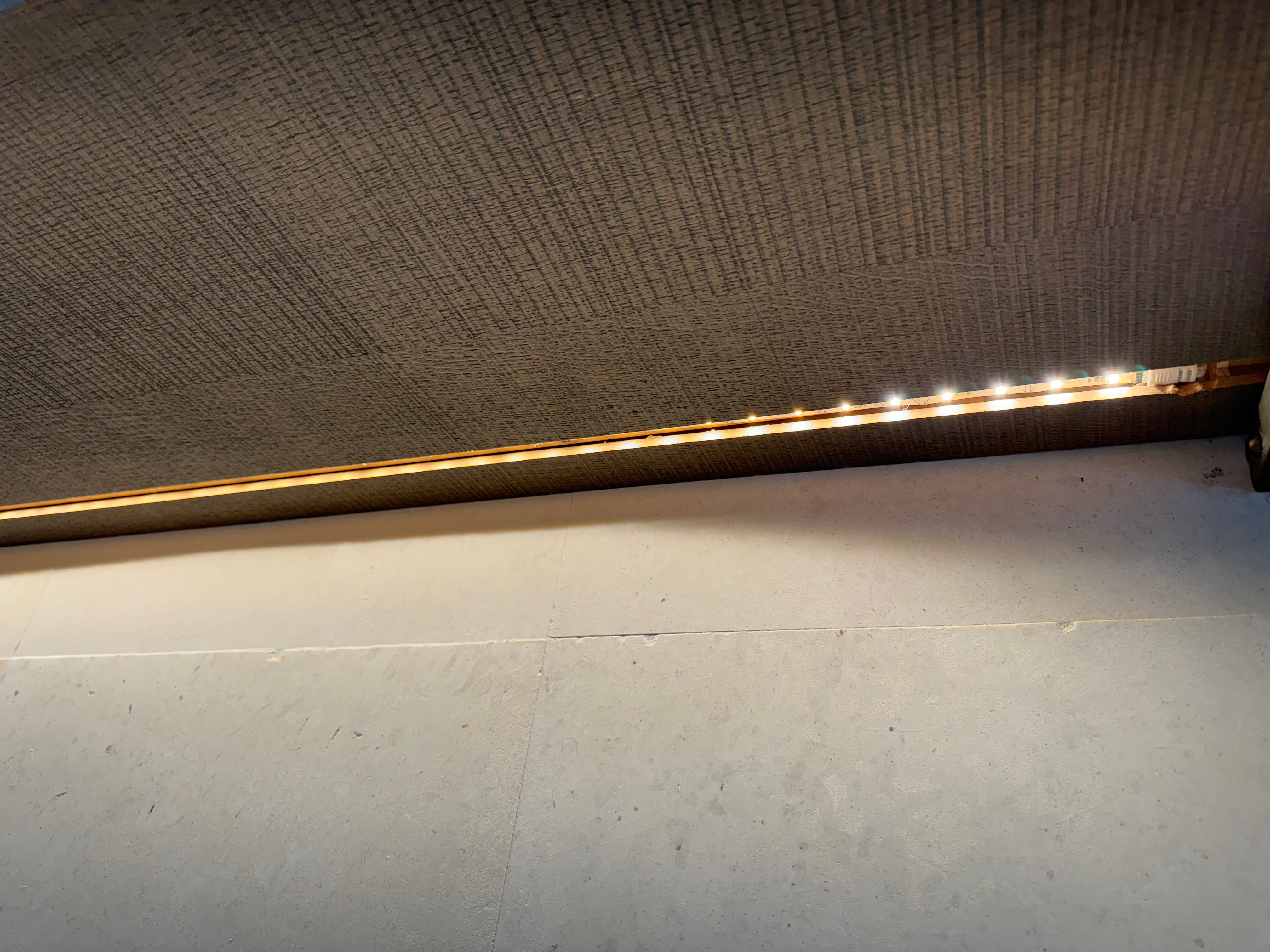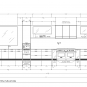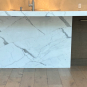 Perimeter wall countertop to the left of the range 199 ½”w x 25”d/28” d @ the range, there is a seam @ 103 5/8” from the left end of the bar.