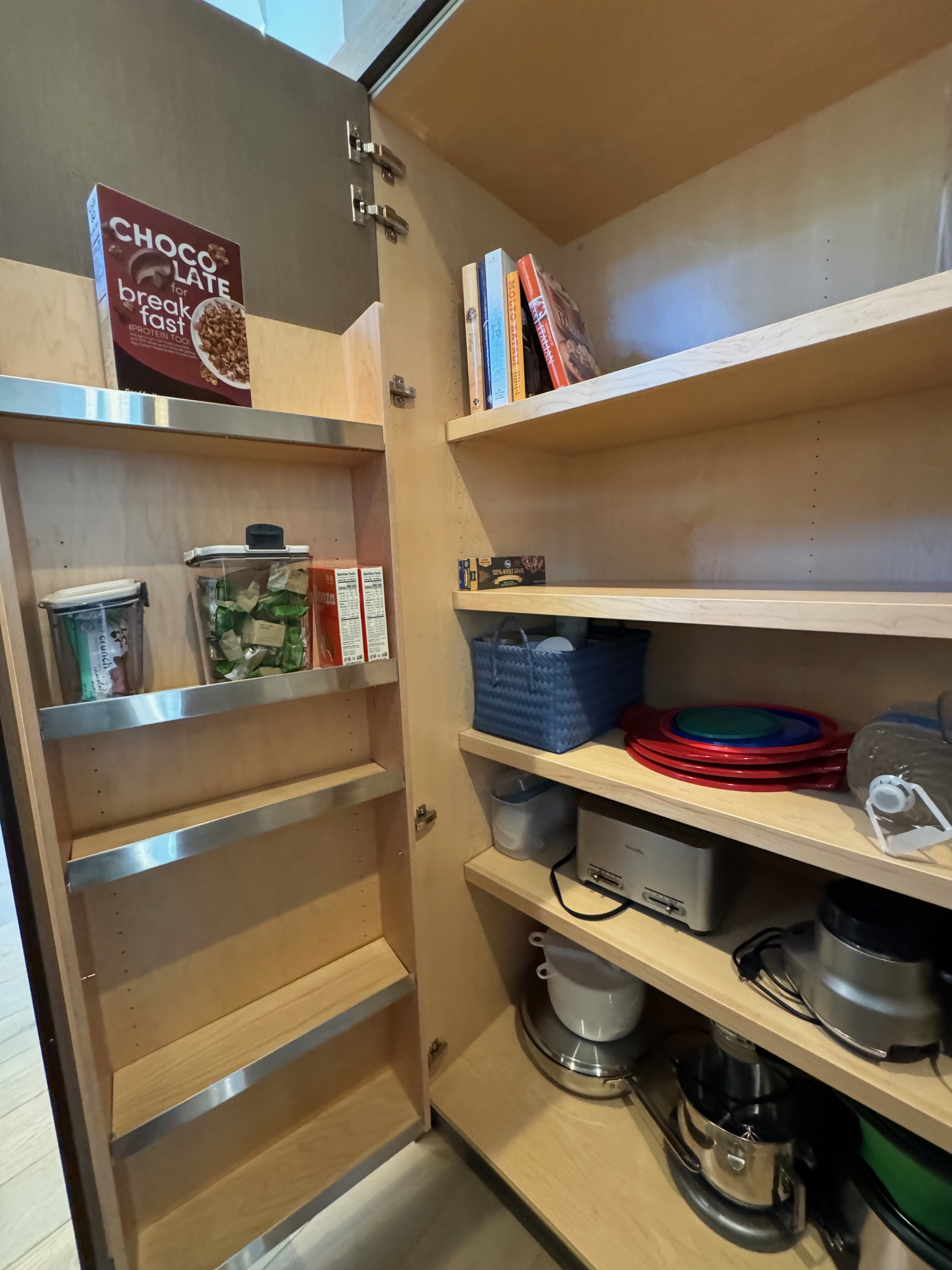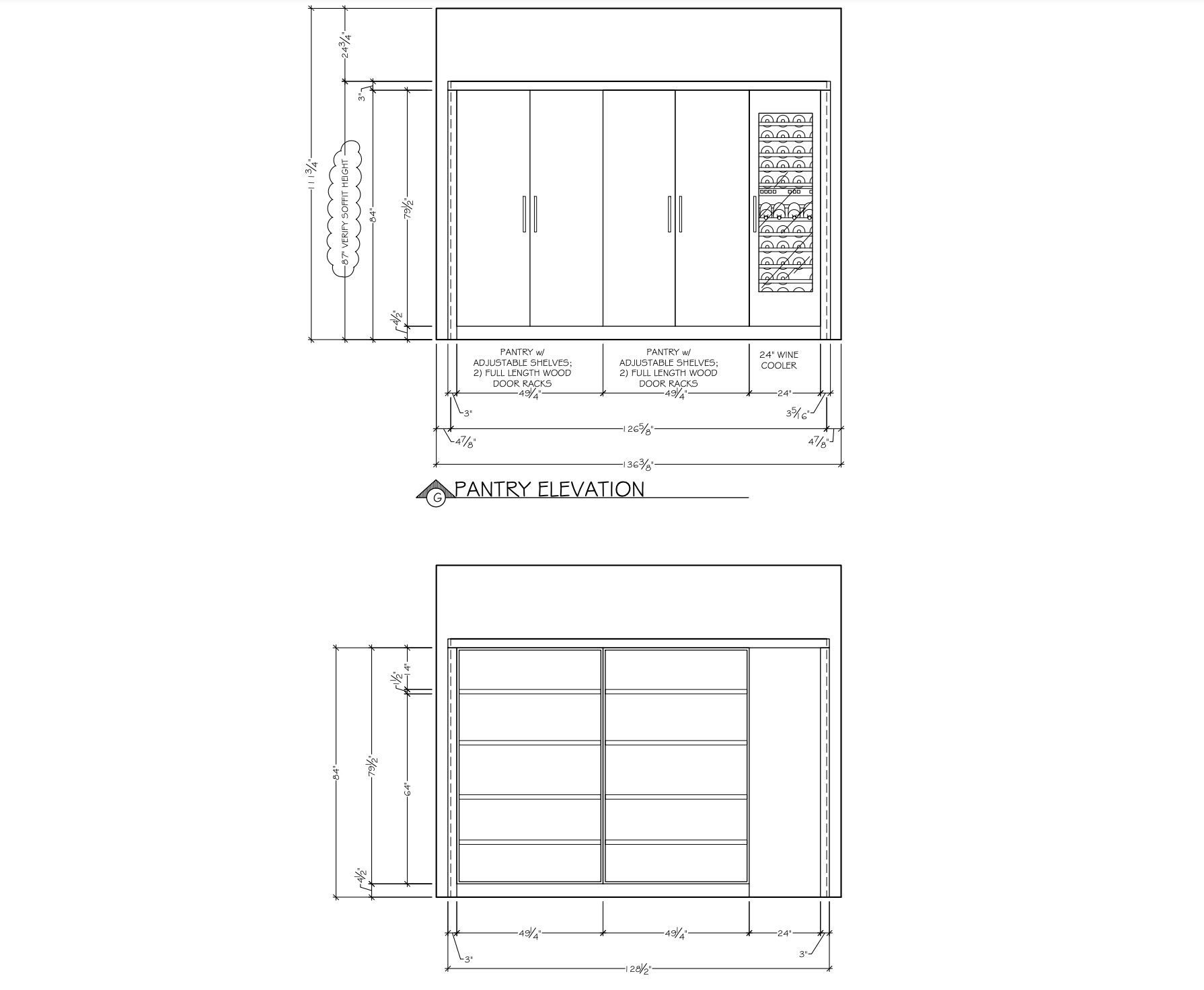 2-Two door double tall pantry cabinets with shelves on the doors Dim.: 47 ¼”w x 87”h x 24”d