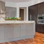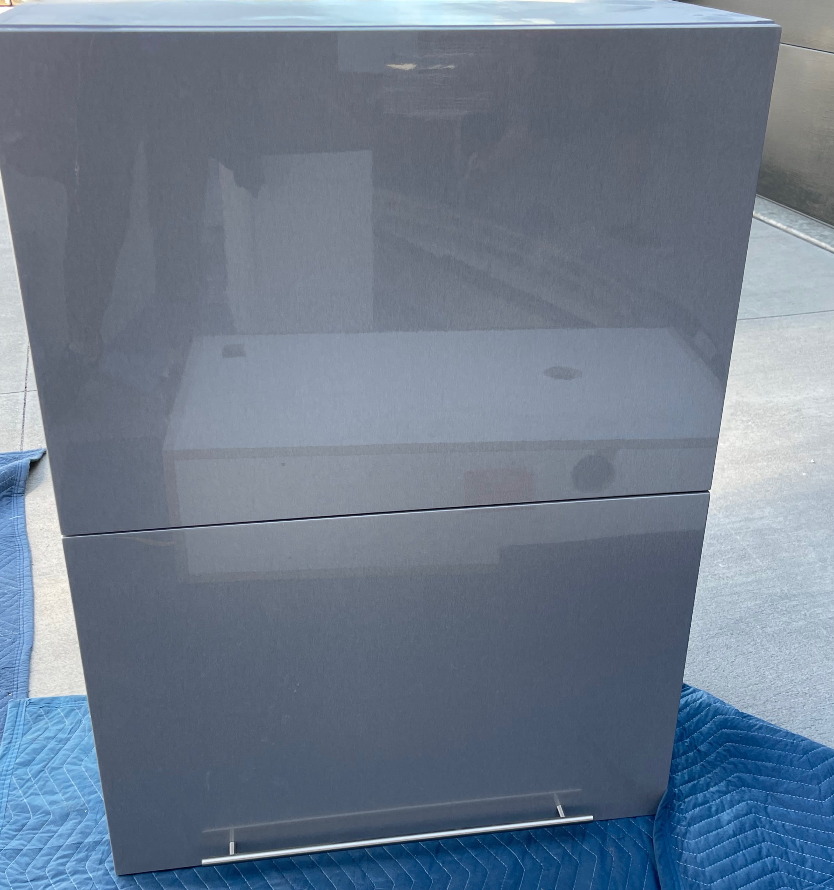 Like new Irpinia and Wood-Mode Brookhaven Kitchen and wet bar cabinetry. All the cabinetry has the soft close feature and is in excellent condition. The silver wall cabinets and island cabinets are Irpinia cabinetry with the Décor door style in a Hairline Stainless gloss finish. The darker espresso stained wood base cabinets in the kitchen and wet bar are made by Wood-Mode Brookhaven. The Wolf 6 burner gas cooktop and wall hood are included in the package. The cabinets were installed in a multimillion-dollar home in Colorado Springs, but the builder had to sell the home before the project was finished. The kitchen and wet bar were barely used. Everything was carefully uninstalled and moved to storage in Denver. Price for the package below. SERIOUS INQUIRIES ONLY!