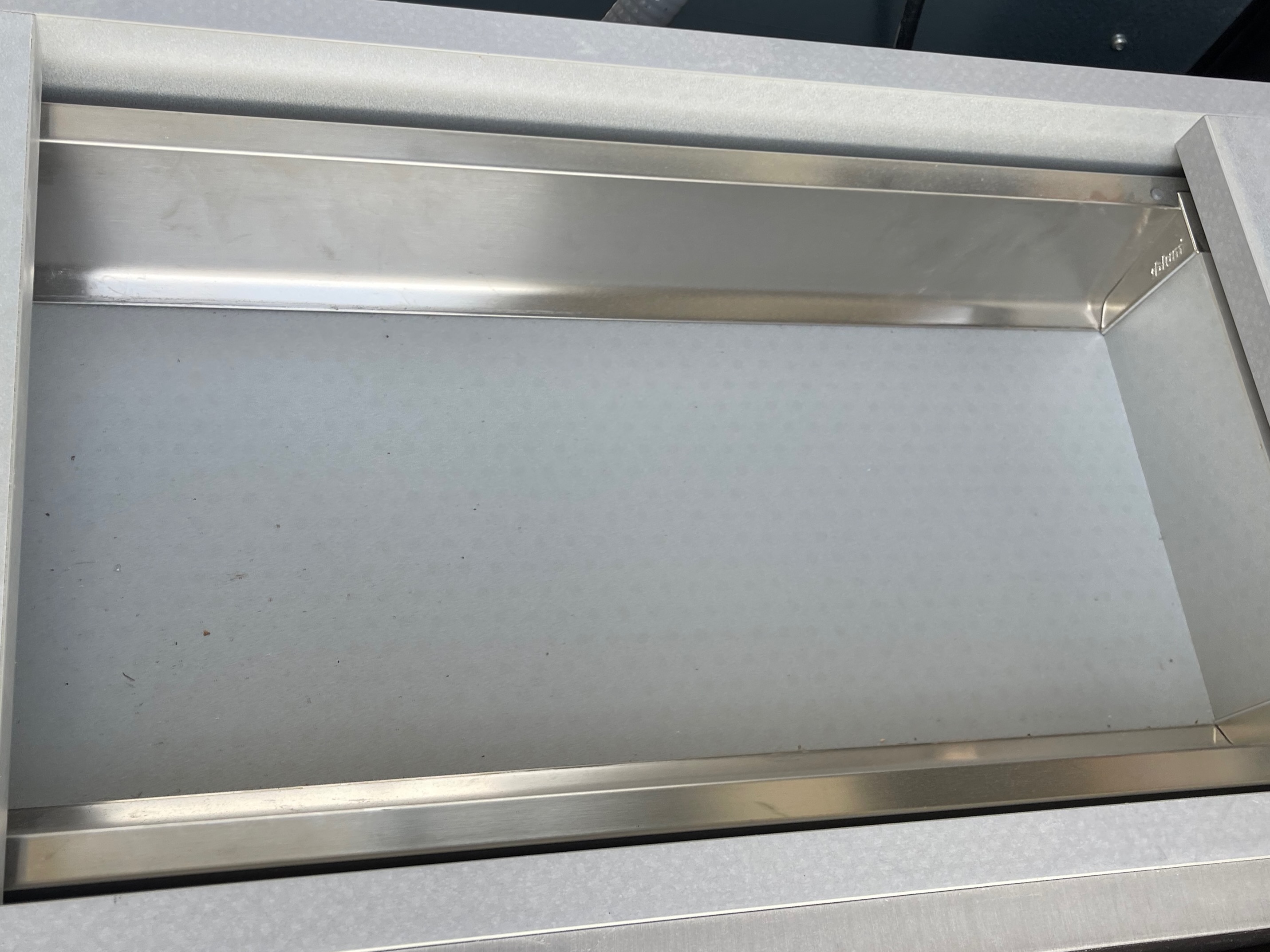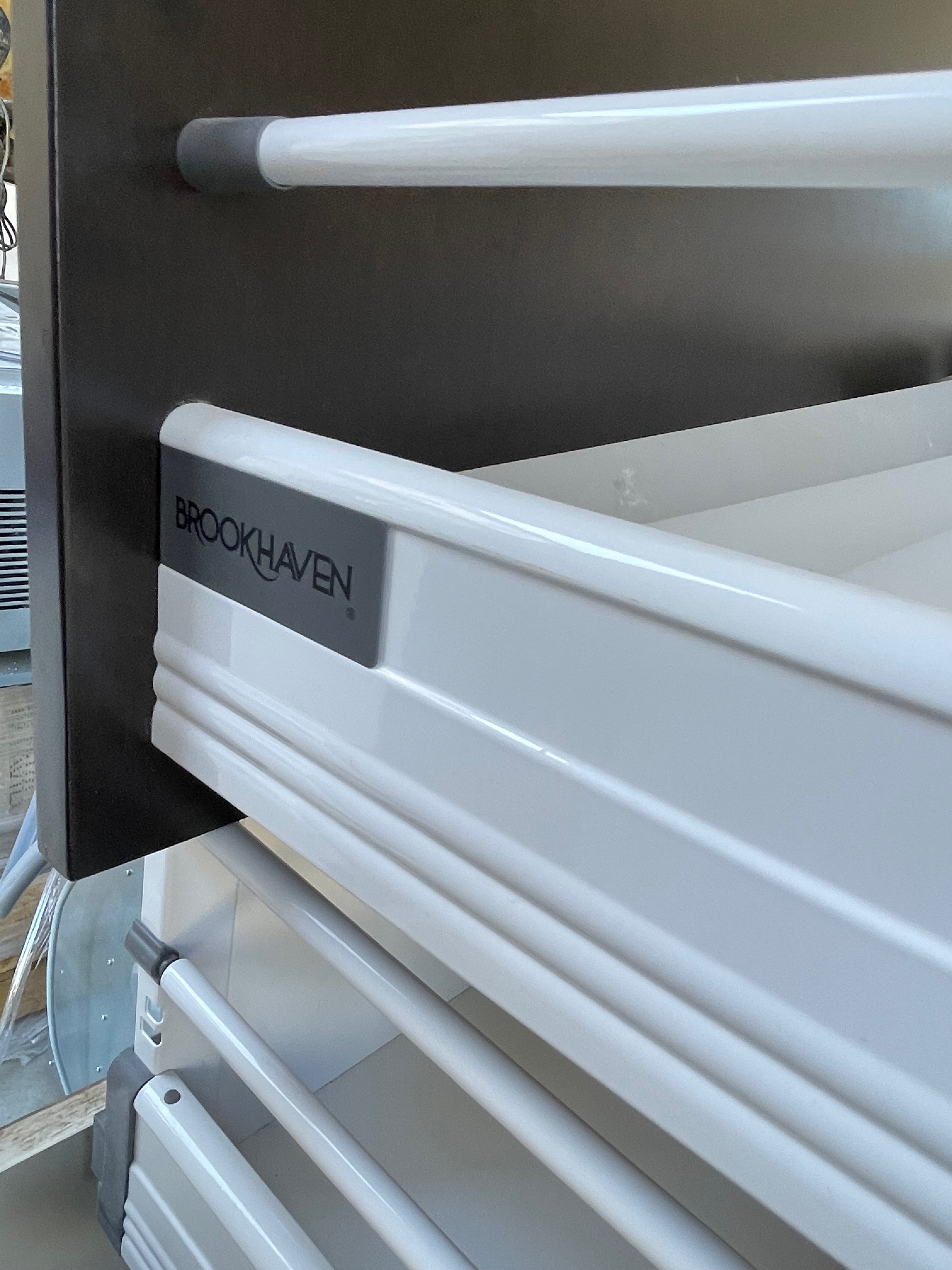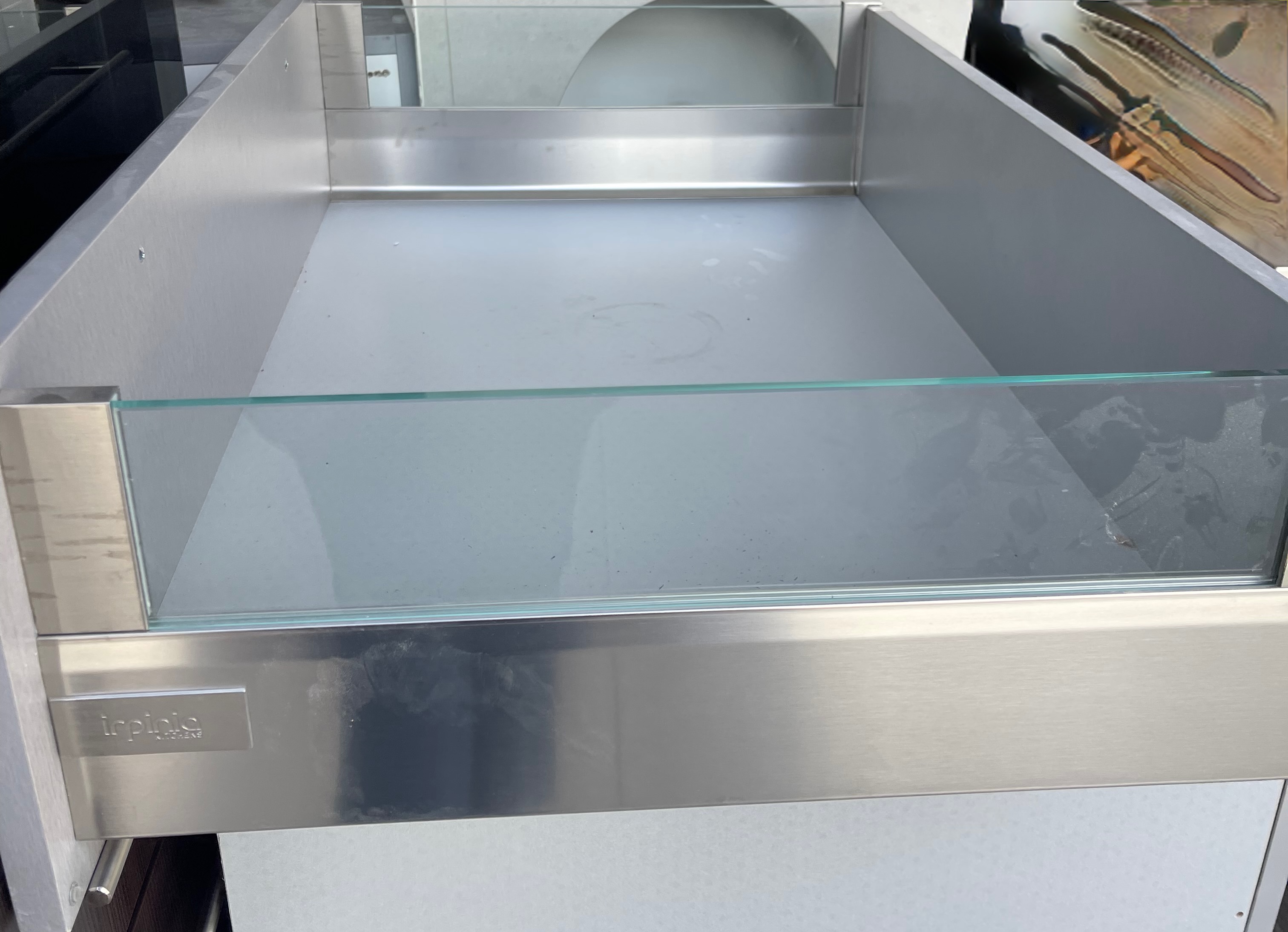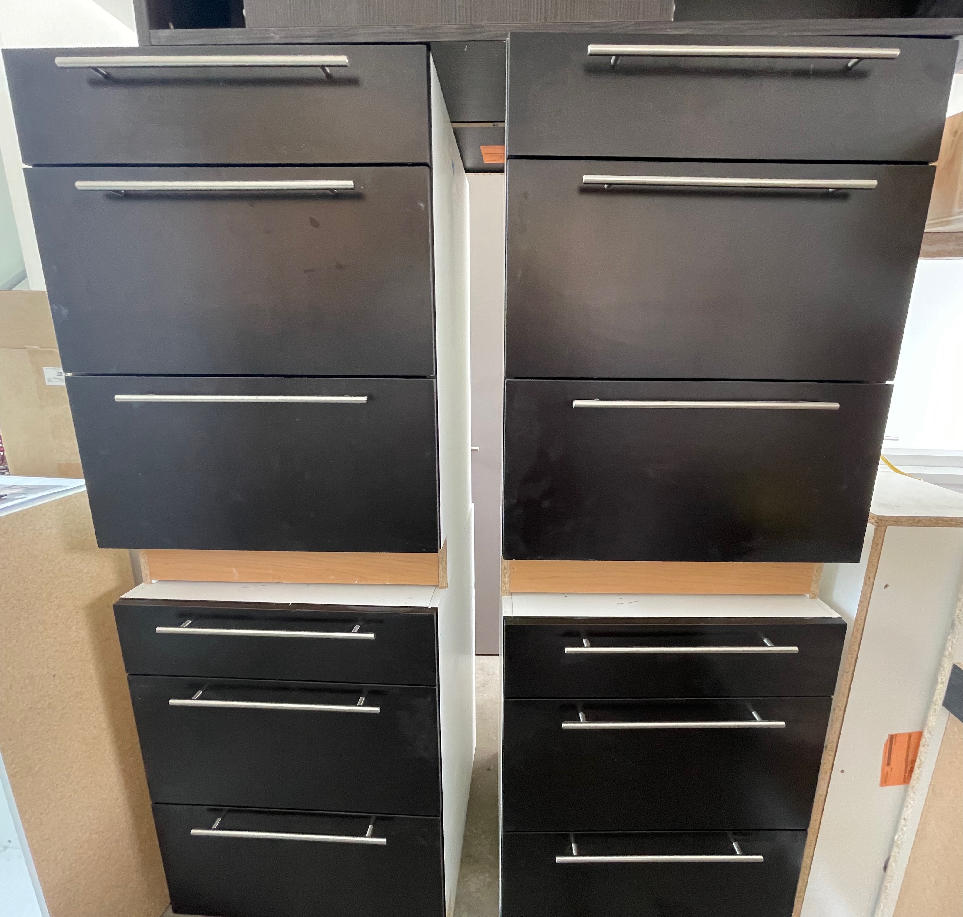 2-Drawers underneath the range top, there was no cabinet box rails attach to side pieces Dim.: 36” w x “h x 24’d
