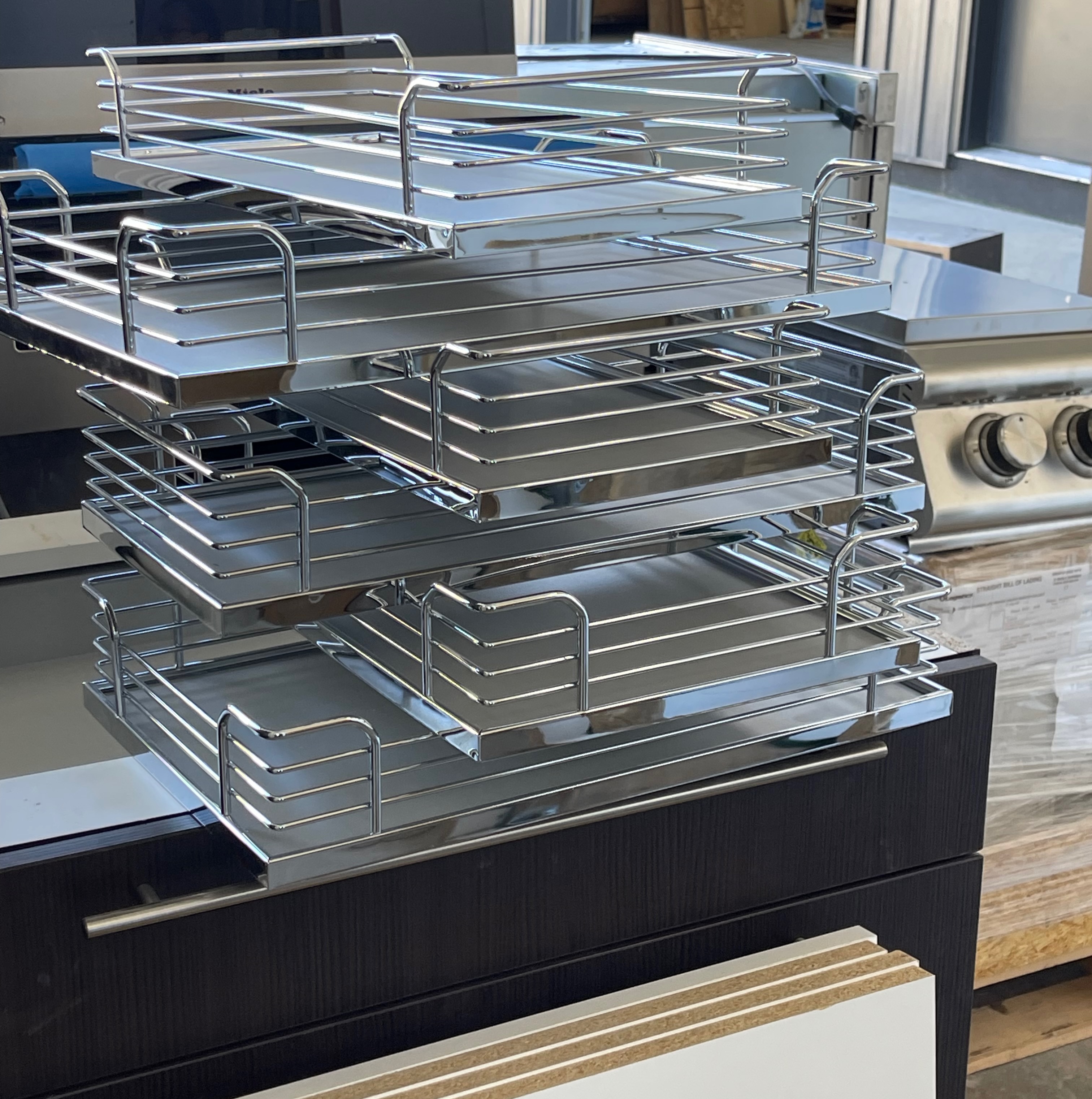 3-Four door double tall wall cabinet holds the ovens and speed ovens w/pull out metal drawers Dim.:30” w x 96“h x 24” d