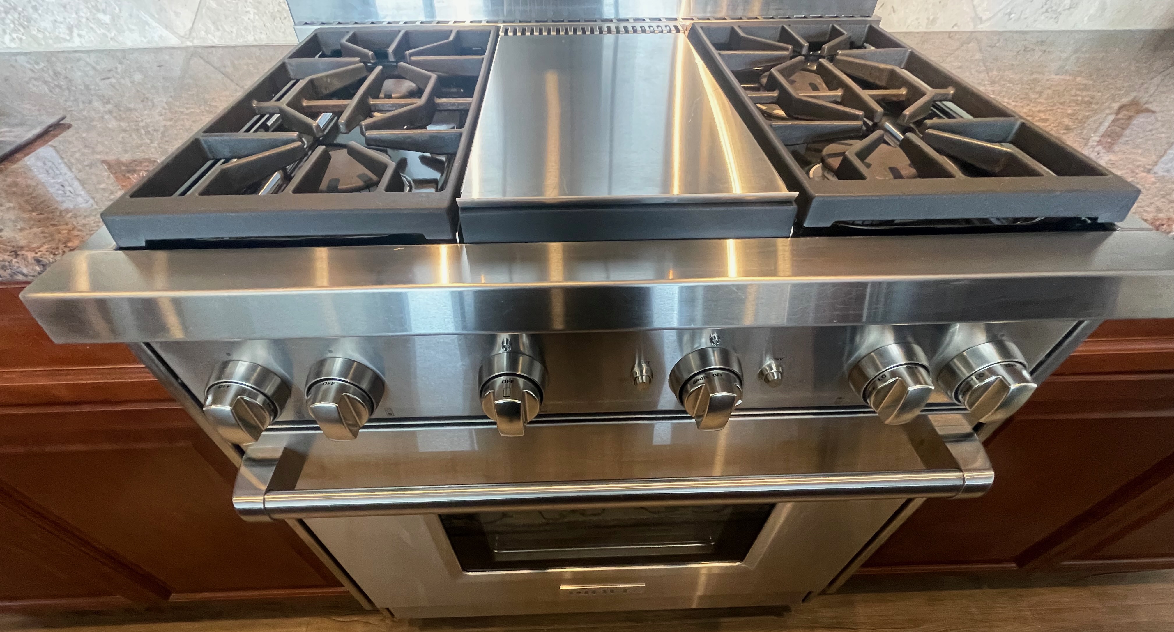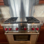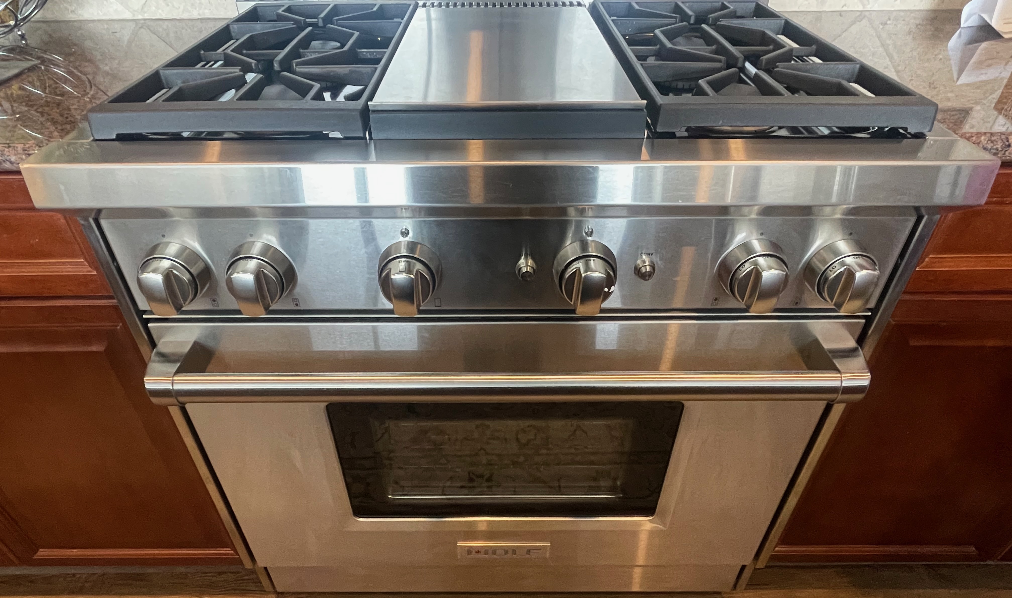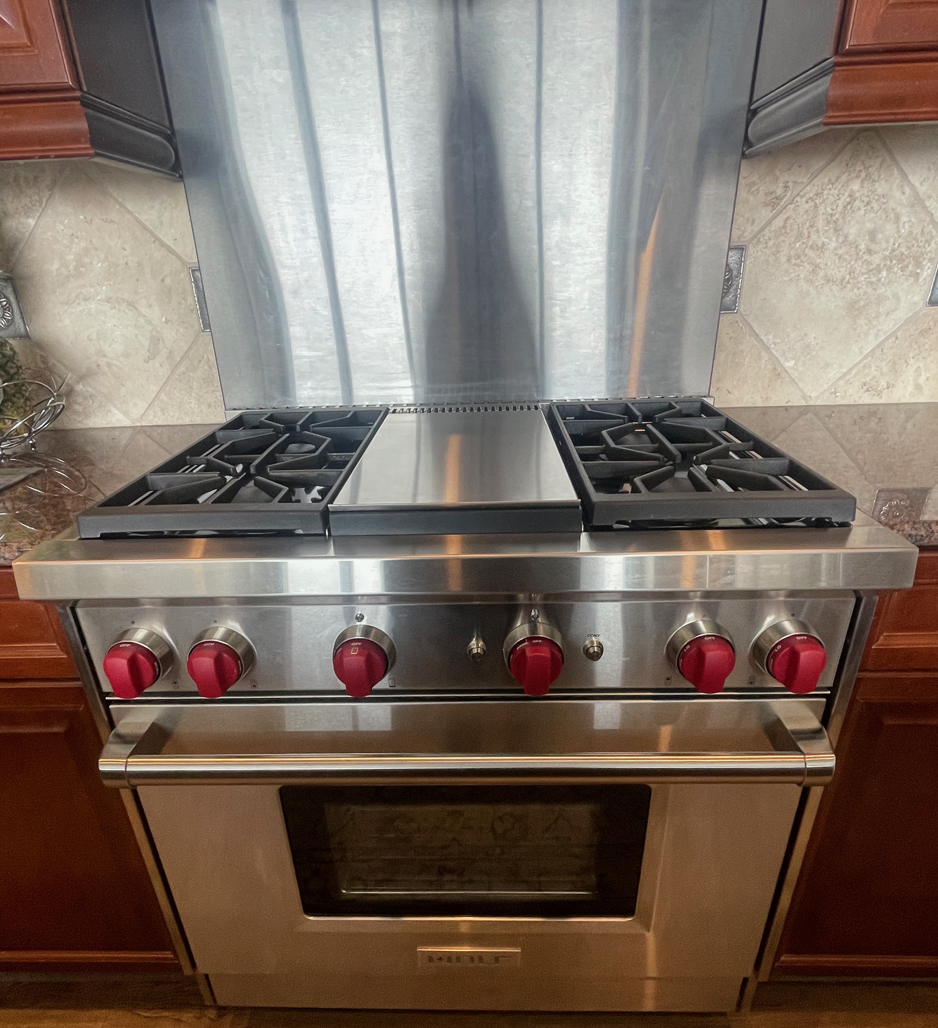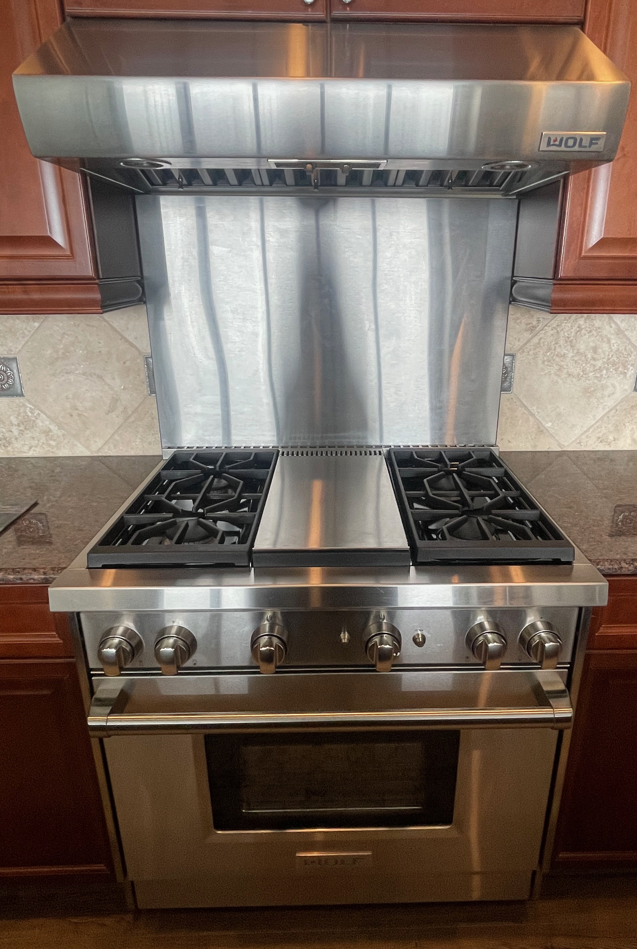 36" Wolf Gas Range with griddle, Wolf low profile wall Hood and Wolf M series professional Microwave.The appliances are being switched out for induction cooktop, speed oven that is why they are being sold.