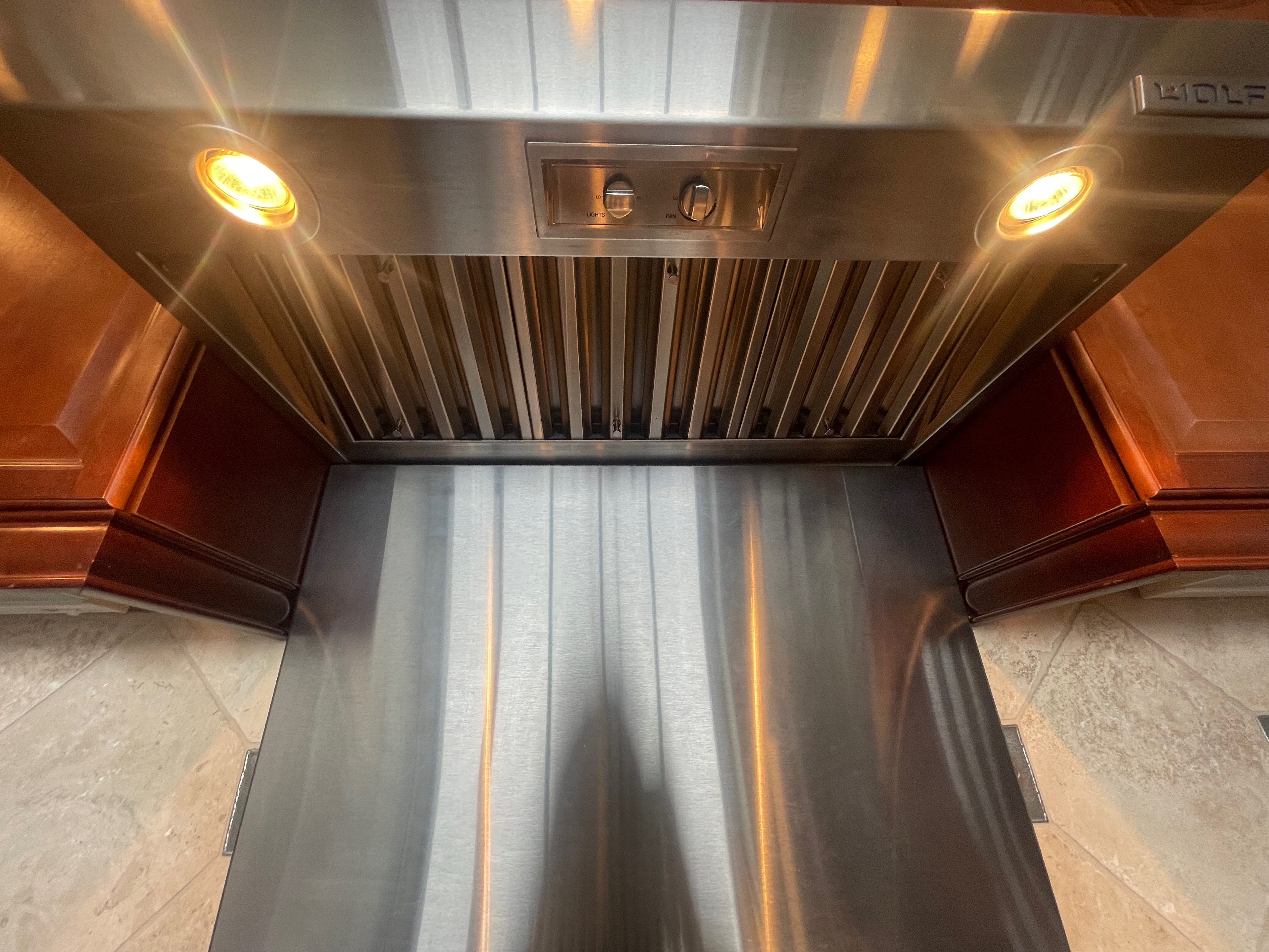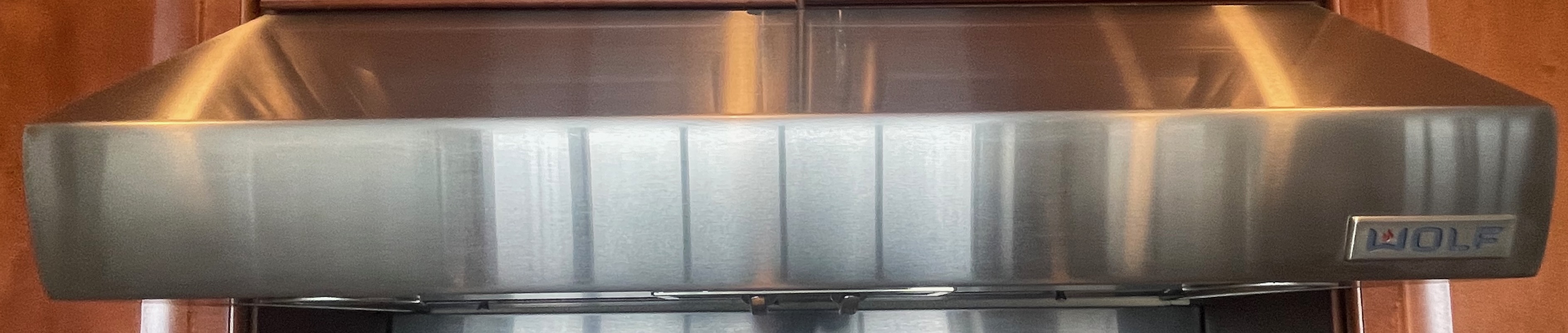 36 Wolf Stainless Steel side pro low profile wall Hood Model #PW362210 Serial #16314005 Dim.: 36”w x 22”h x 10”d
