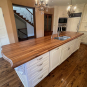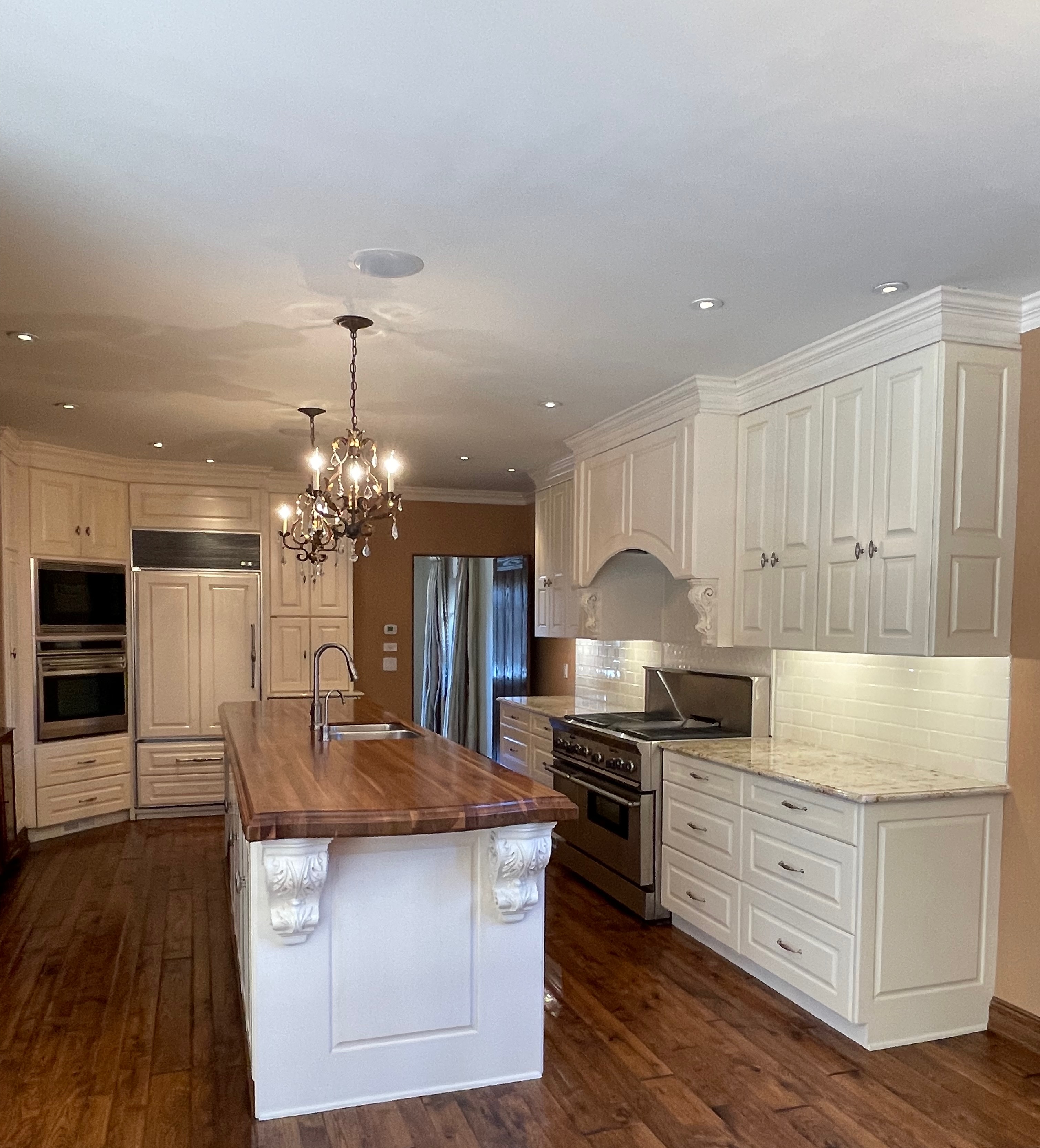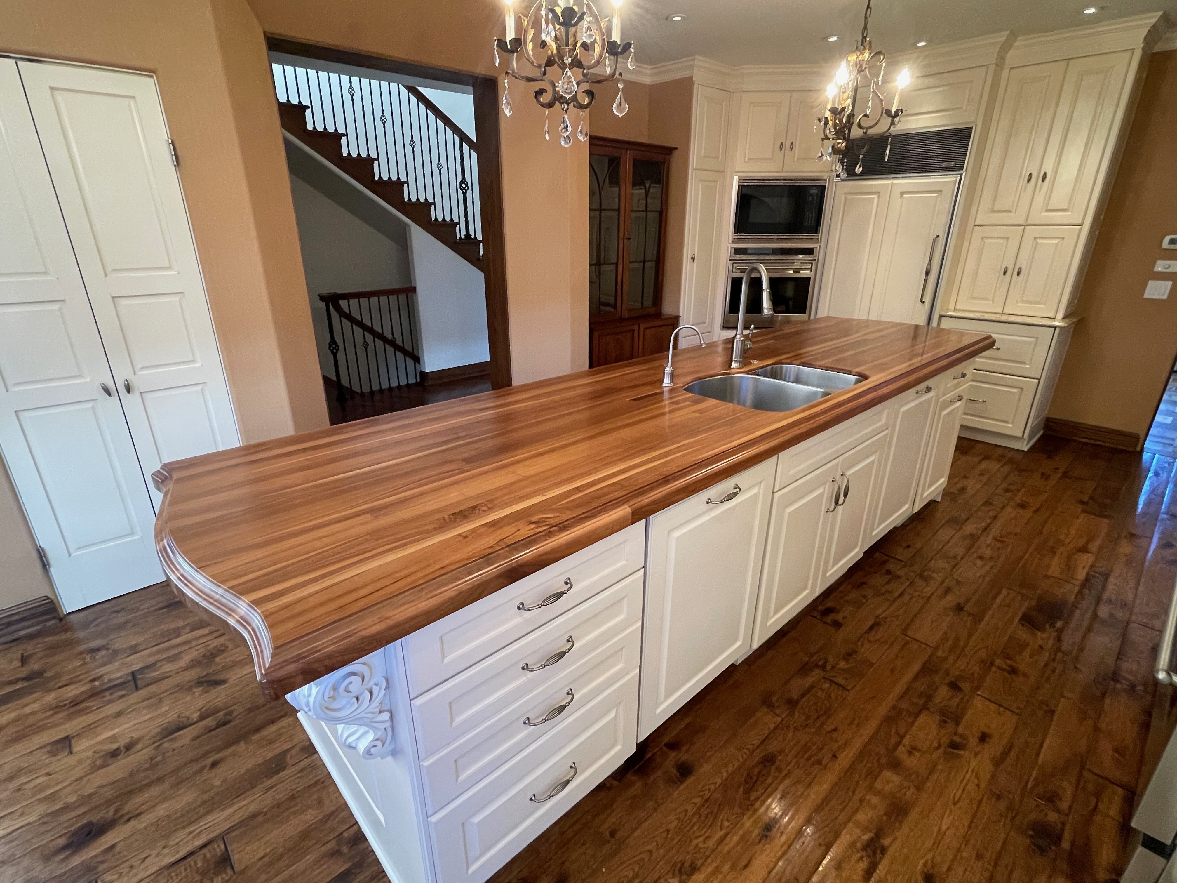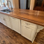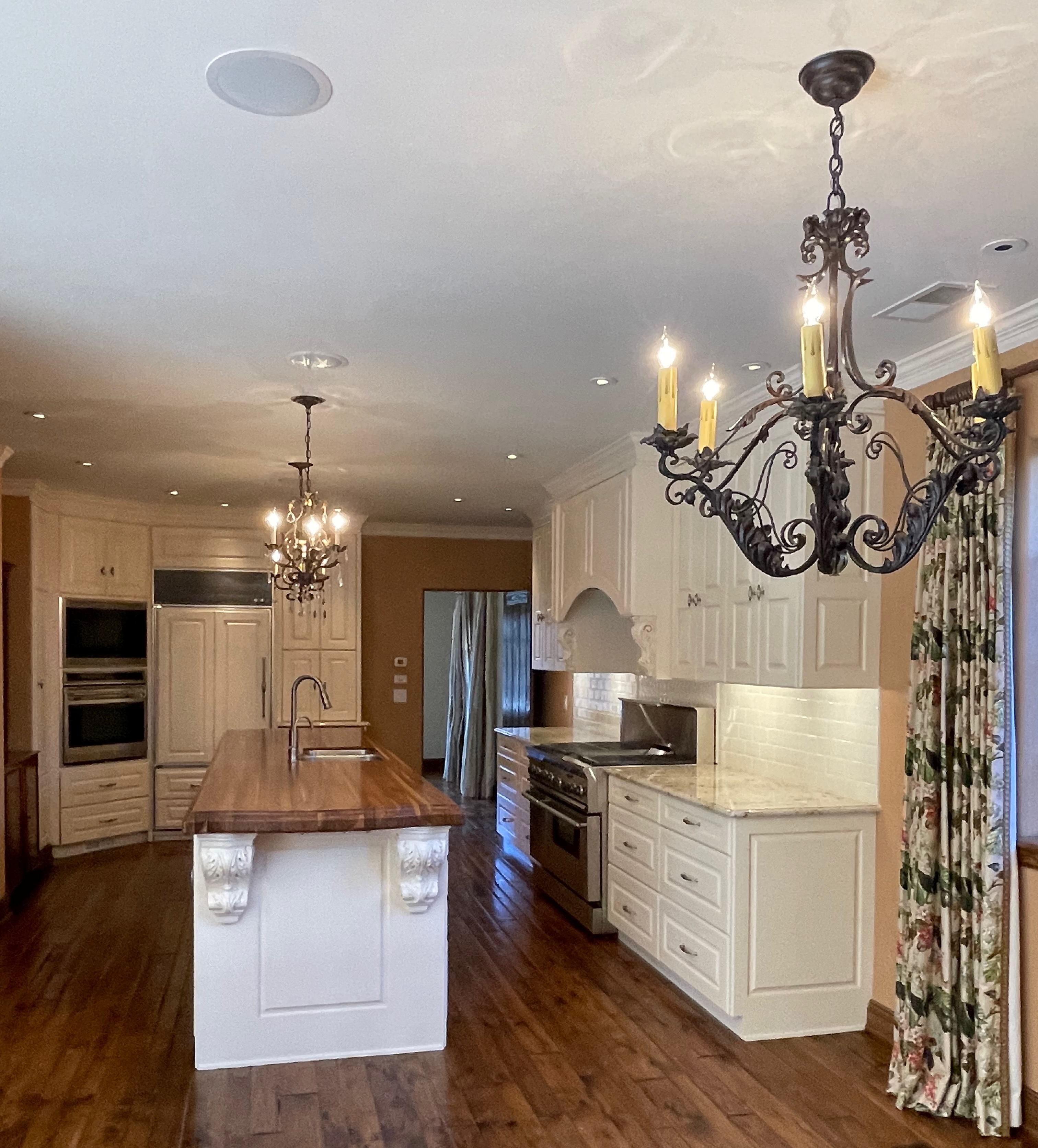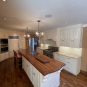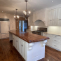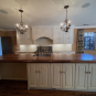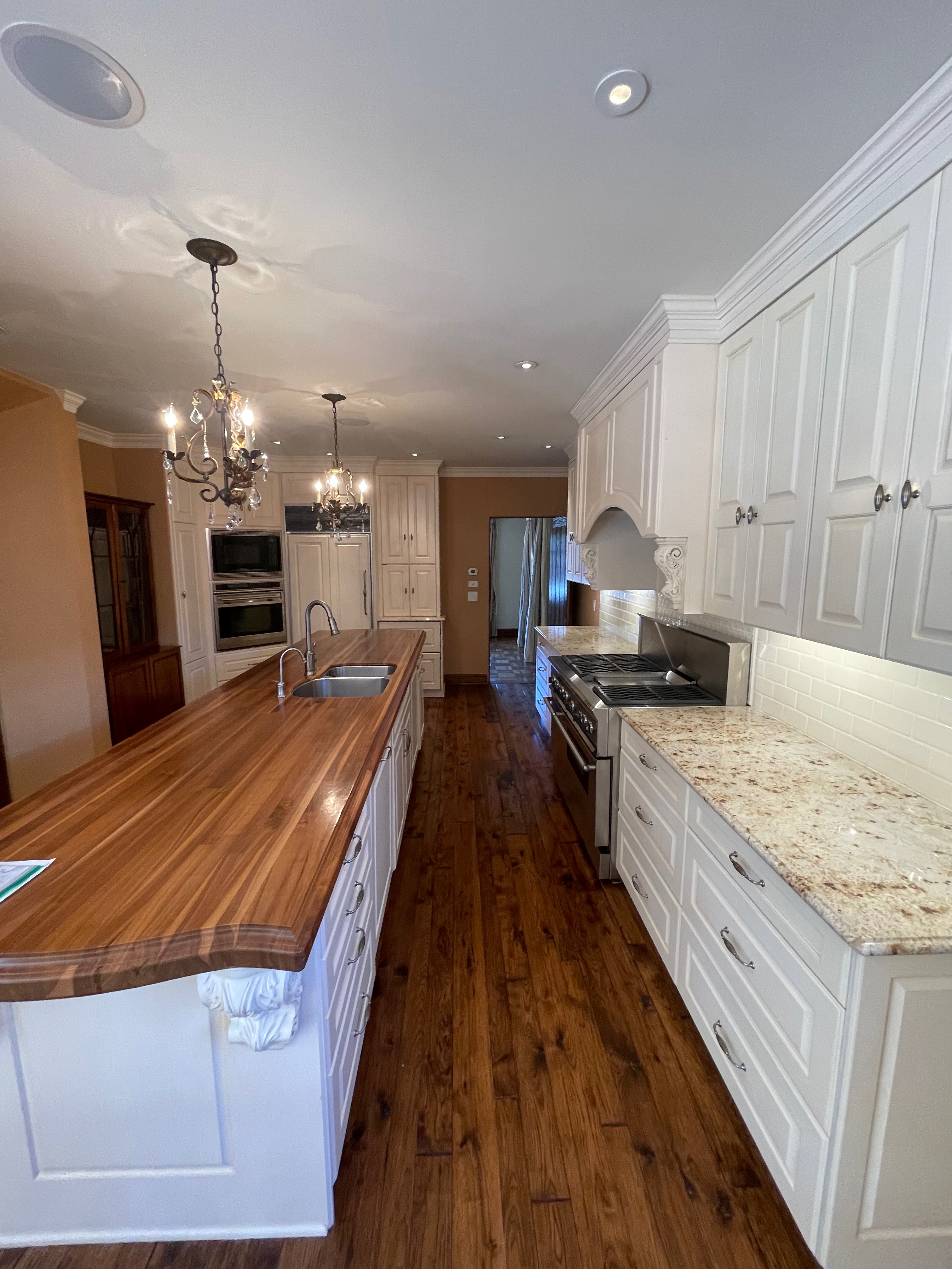 ISLAND BASE CABINETS w/ Wood island counter & two pendant lights