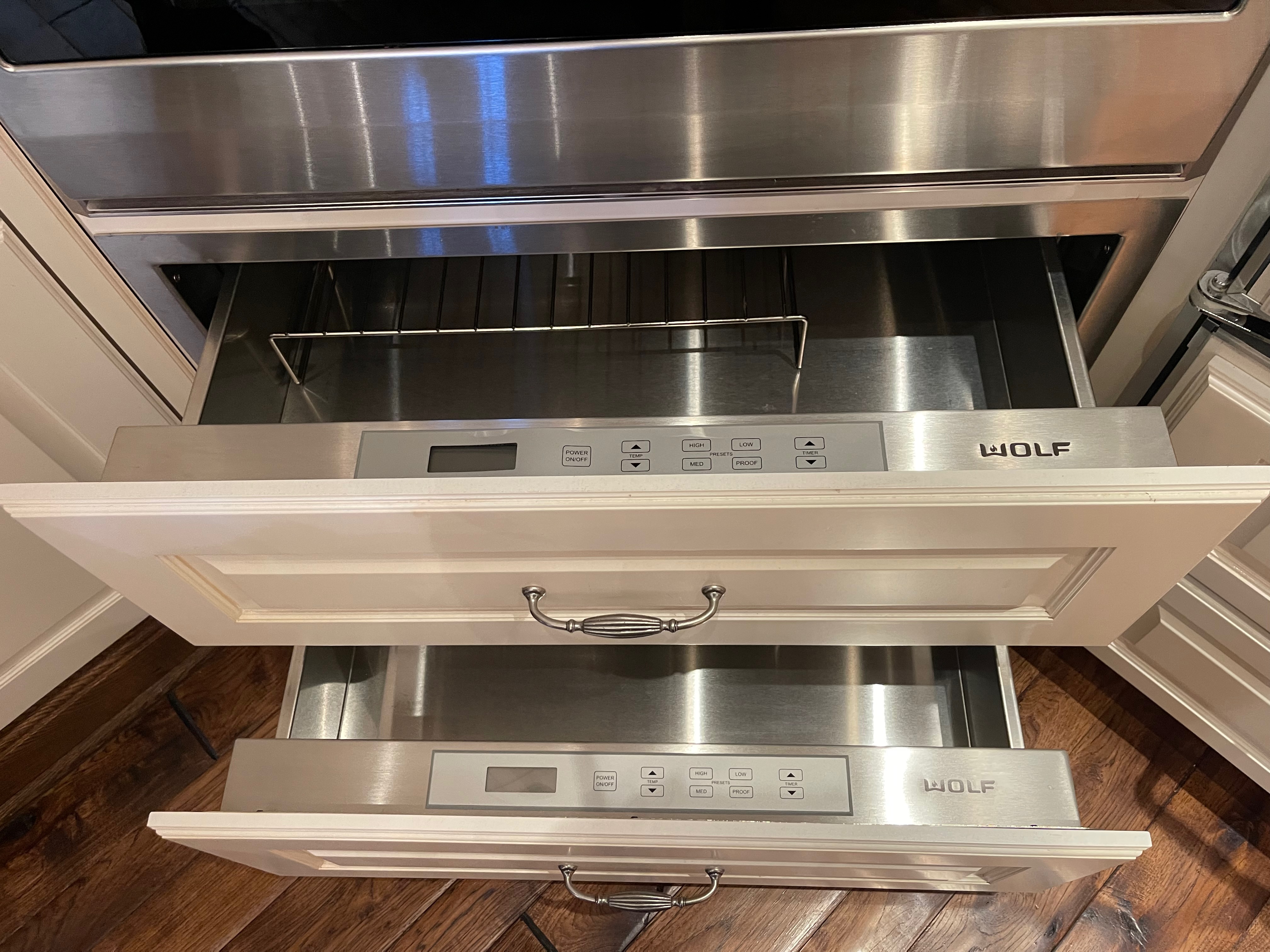 24” Wolf Microwave w/ trim kit Model #MWC24 Serial #12539583, 3/10 Dim.: 24”w/ 30” w/trim kit x 20”h, Listing price new $770