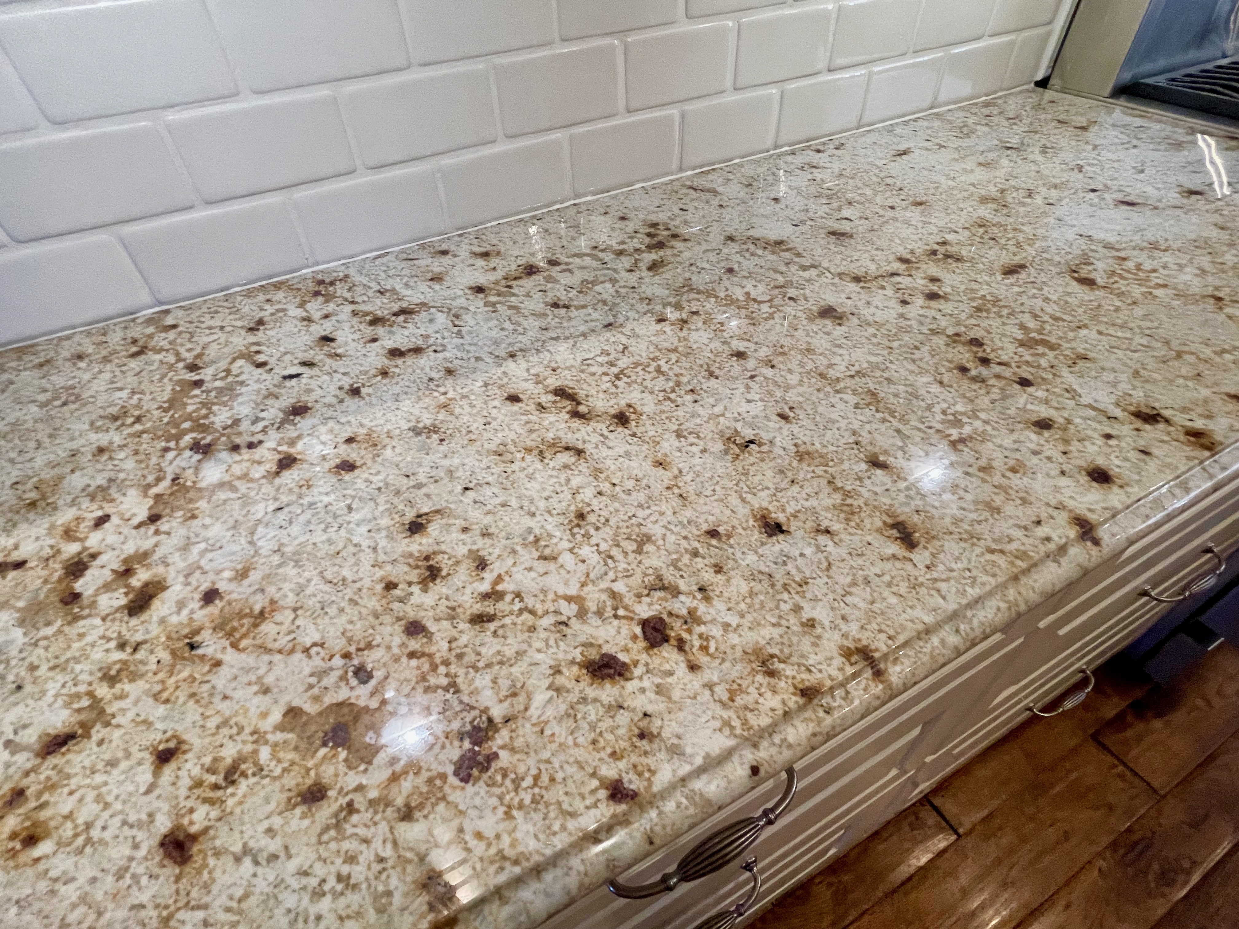 Granite to the right of the refrigerator Dim.: 29 1/2” w x 25 ½” d