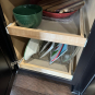 1-One drawer, one door base cabinet w/ /two drawer inserts inside Dim.: 18” w/20” w w/ filler x 36”h x 24” d
