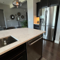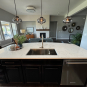Perimeter cooktop countertop 250 ¼”w x 25 ½”d, two seams in the countertop
