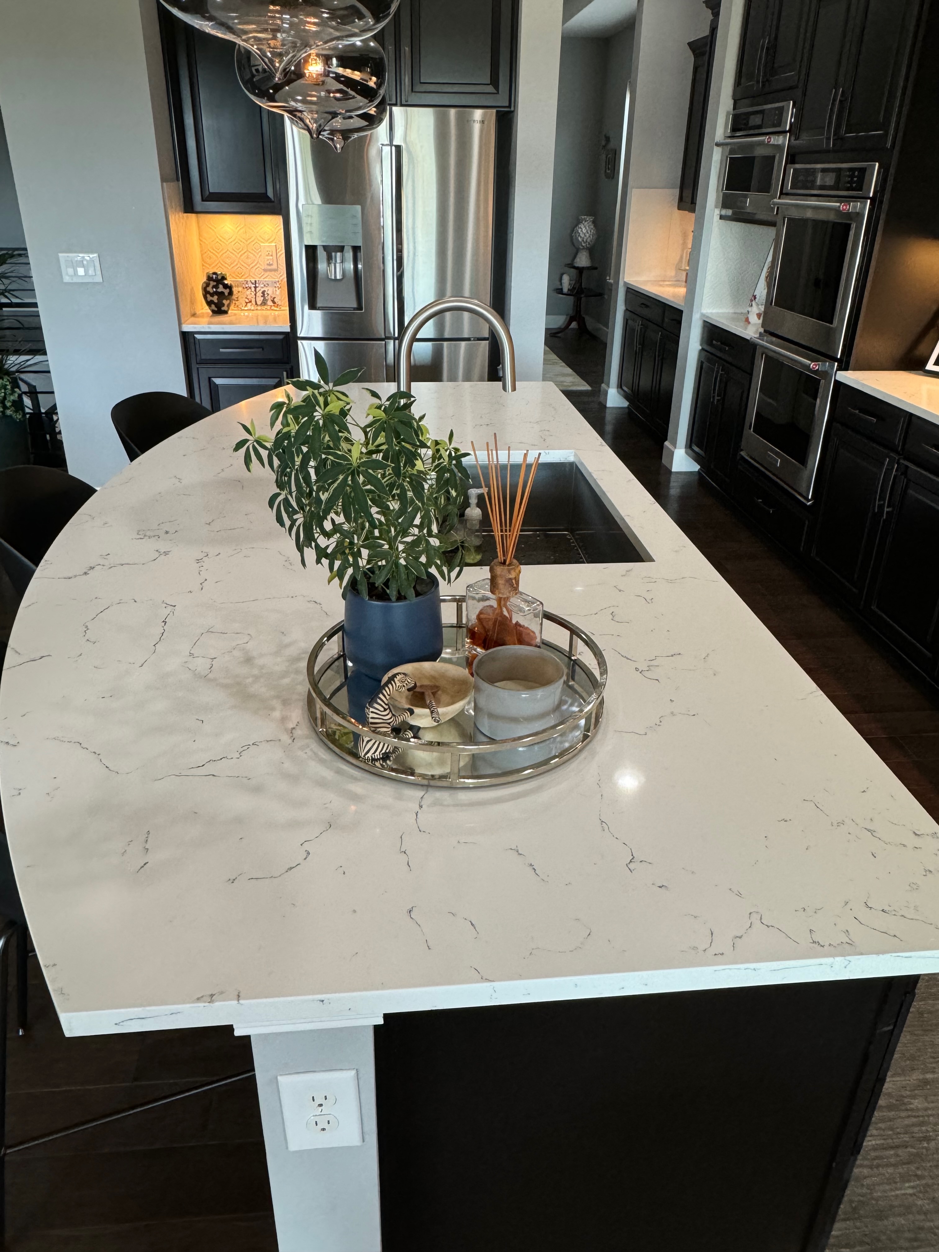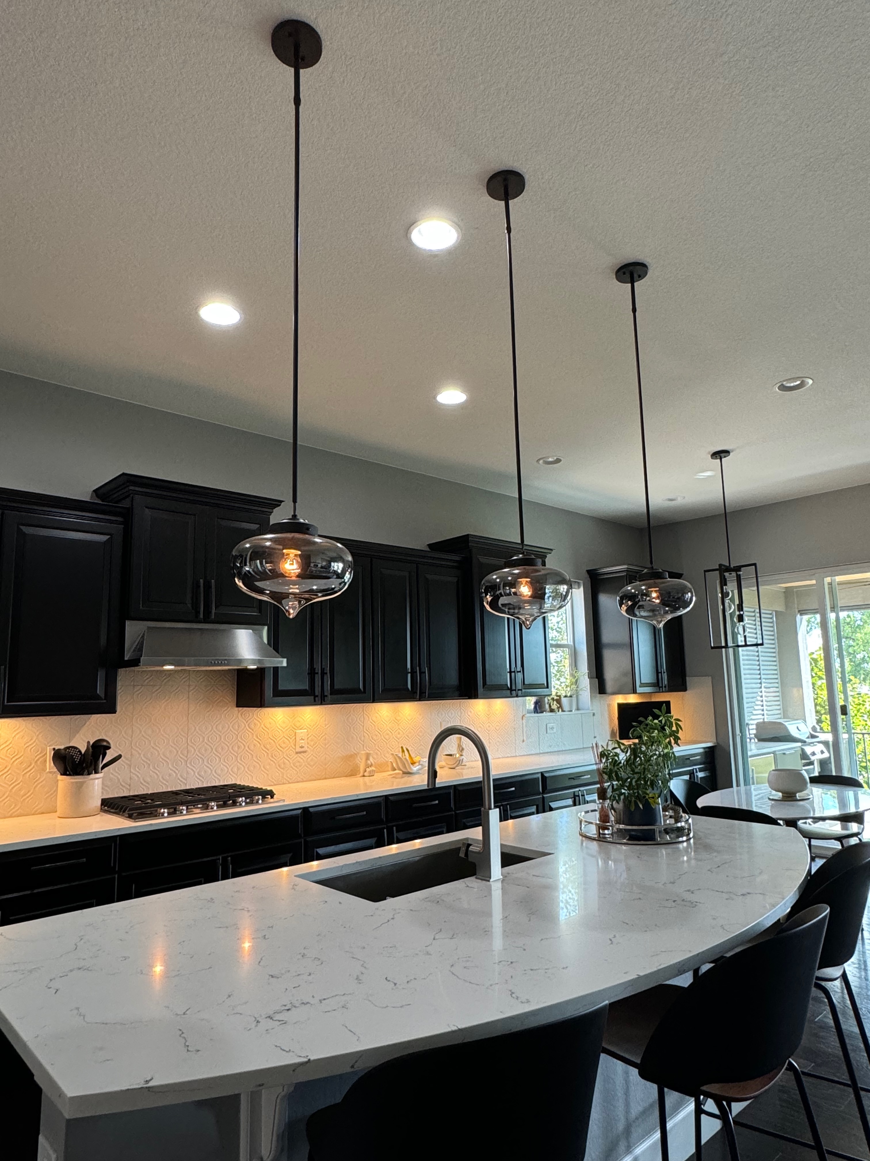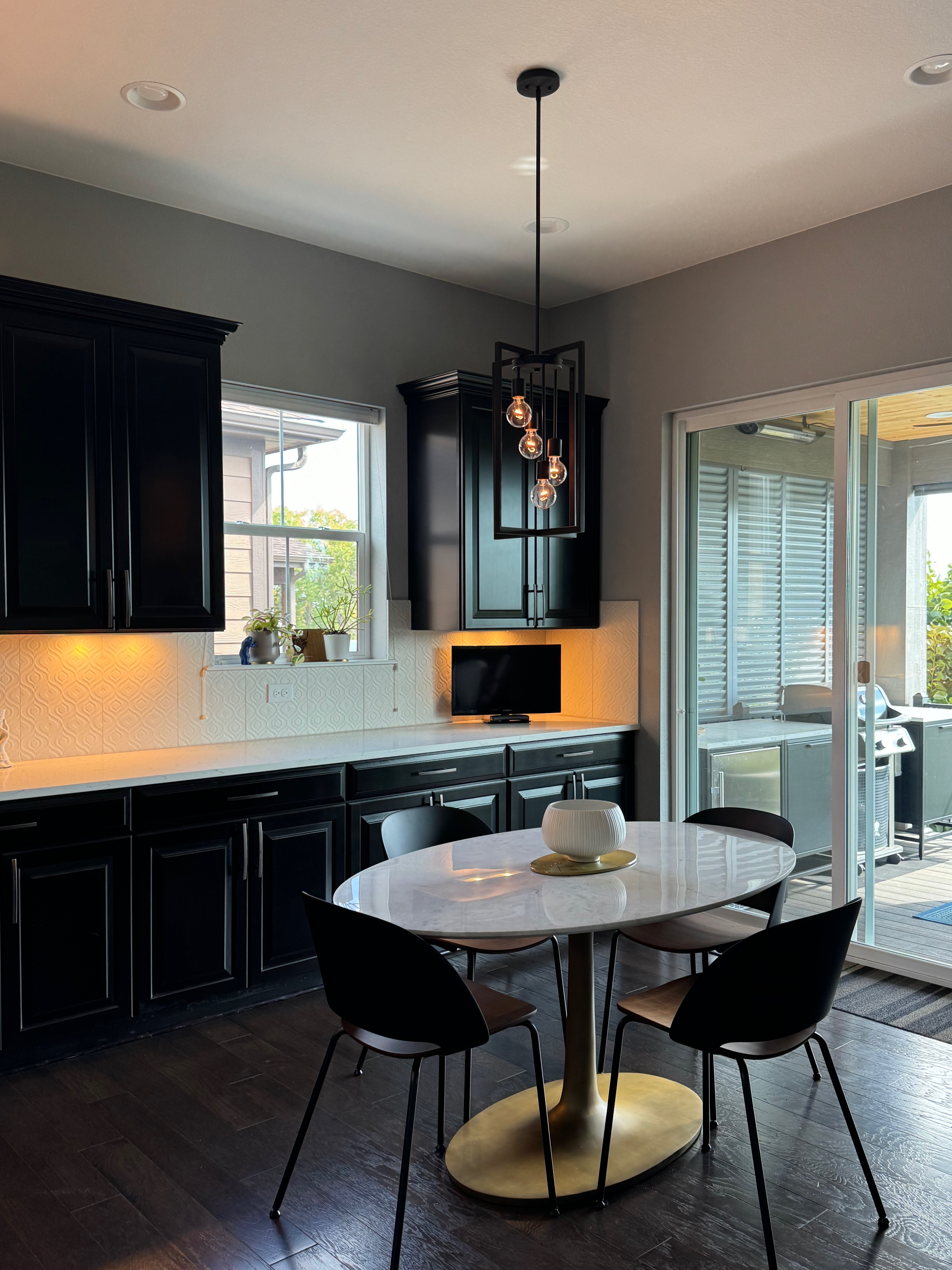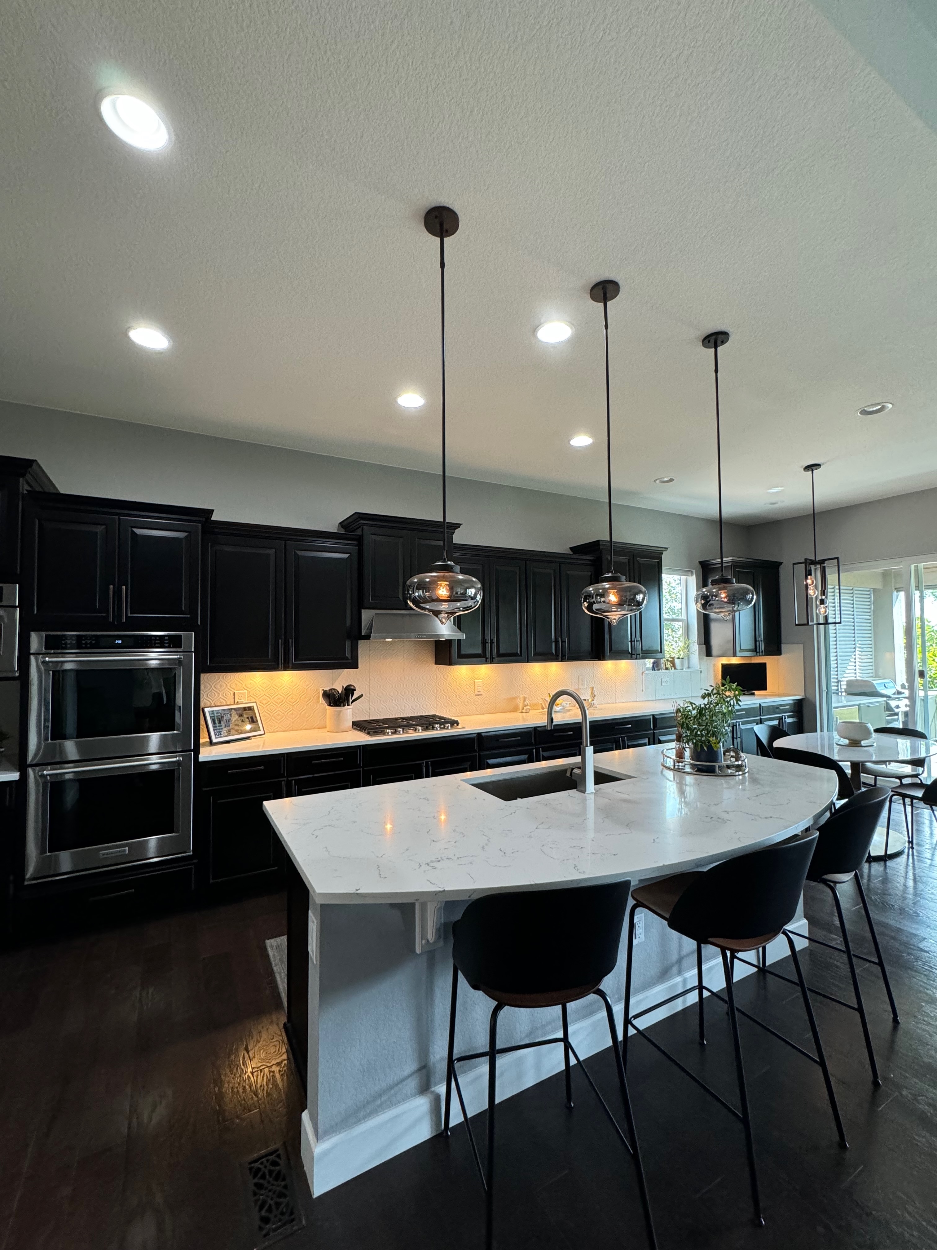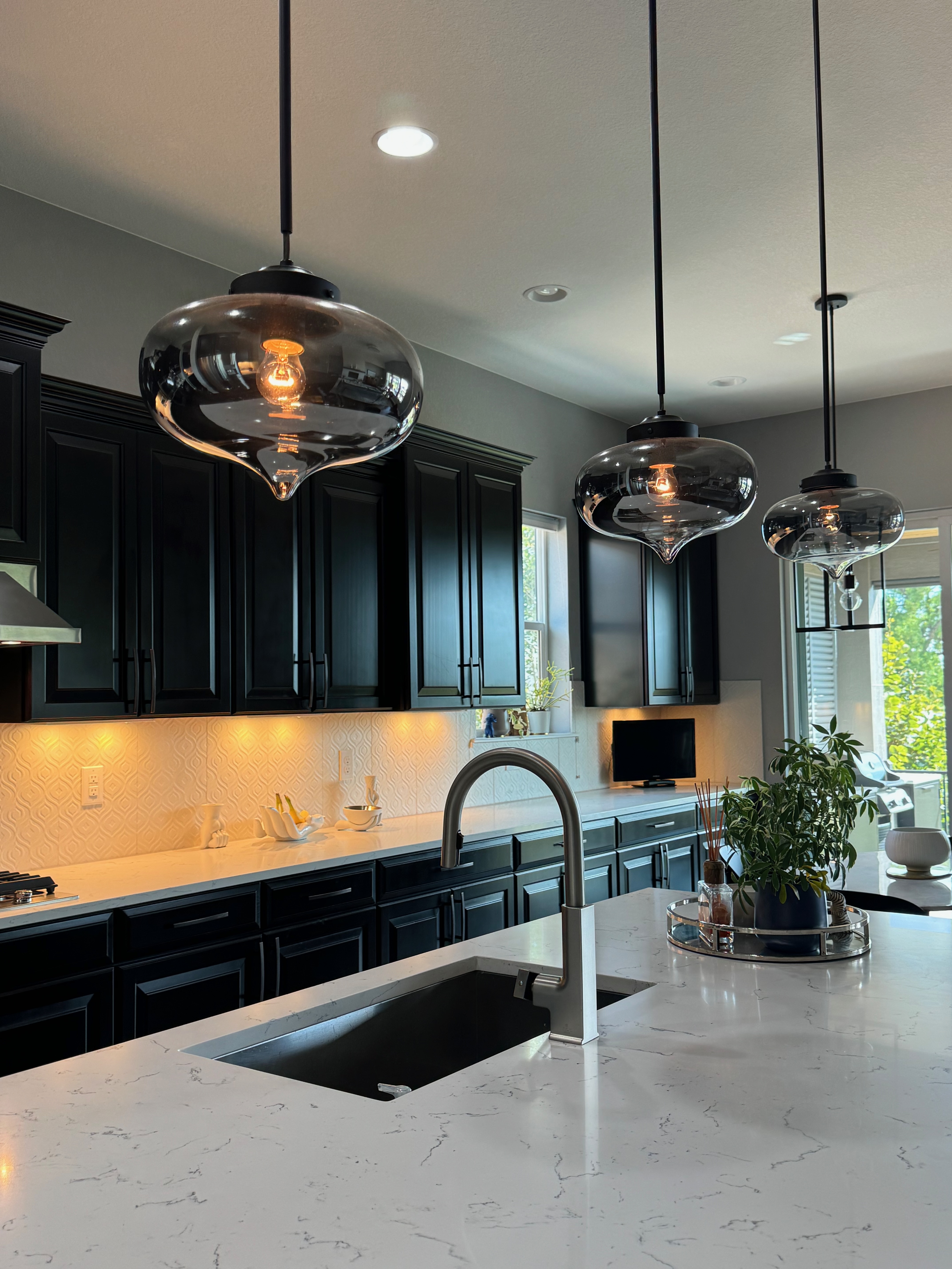 Like New! Timberlake Kitchen Cabinetry, only 7 years old. The cabinets are the Rushmore door style in a Maple wood with a raised panel overlay in a nice Espresso finish. The cabinets have bow pull door hardware in Verona bronze. The cabinets have dove-tail drawers and lots of pull-out drawer inserts inside. The cabinet maker is local so you could add additional matching cabinetry. Included are gorgeous Quartz slab countertops along with KitchenAid and Samsung Stainless Steel Appliances. The kitchen is available to be removed by a qualified buyer or there are licensed contractors available to hire after Christmas by 1/5/25. Price for the kitchen package below.