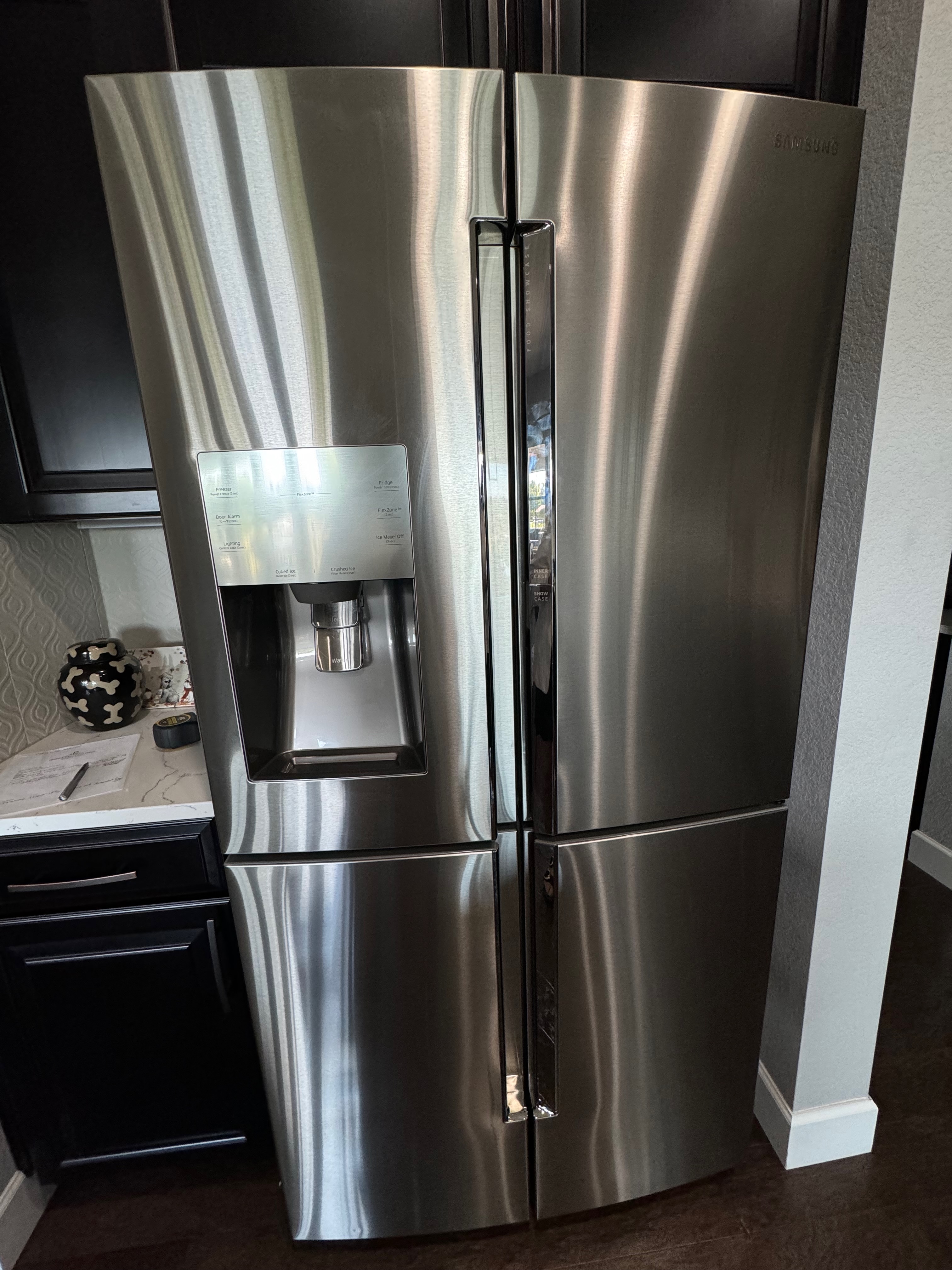 36” Samsung refrigerator/freezer Model: RF22K9381SR 1/17, Dim.: 36”w x 71 7/8”h x 21 7/8”d Listing price new $3,999