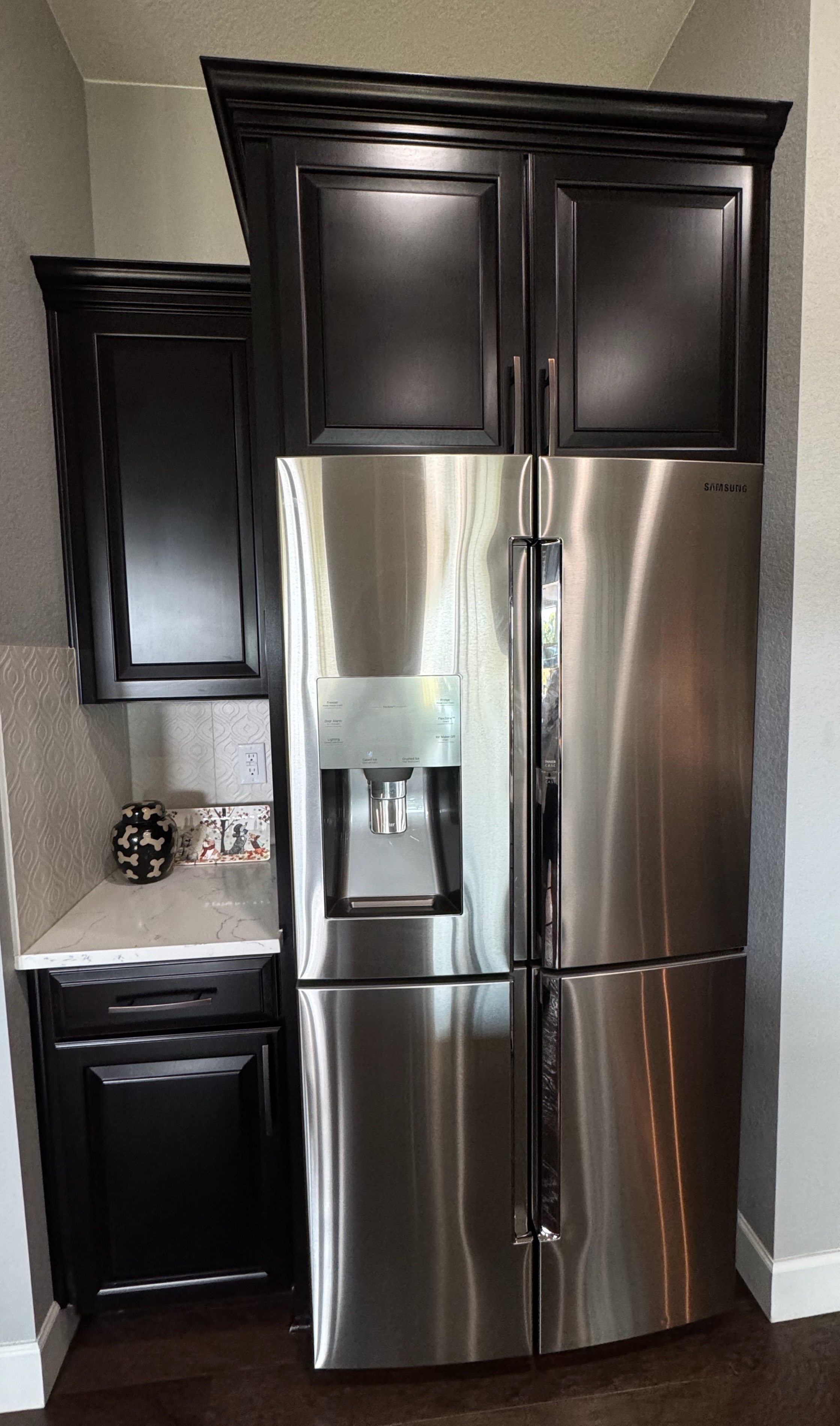 Countertop to the left of the refrigerator 20” w x 25 ½” d