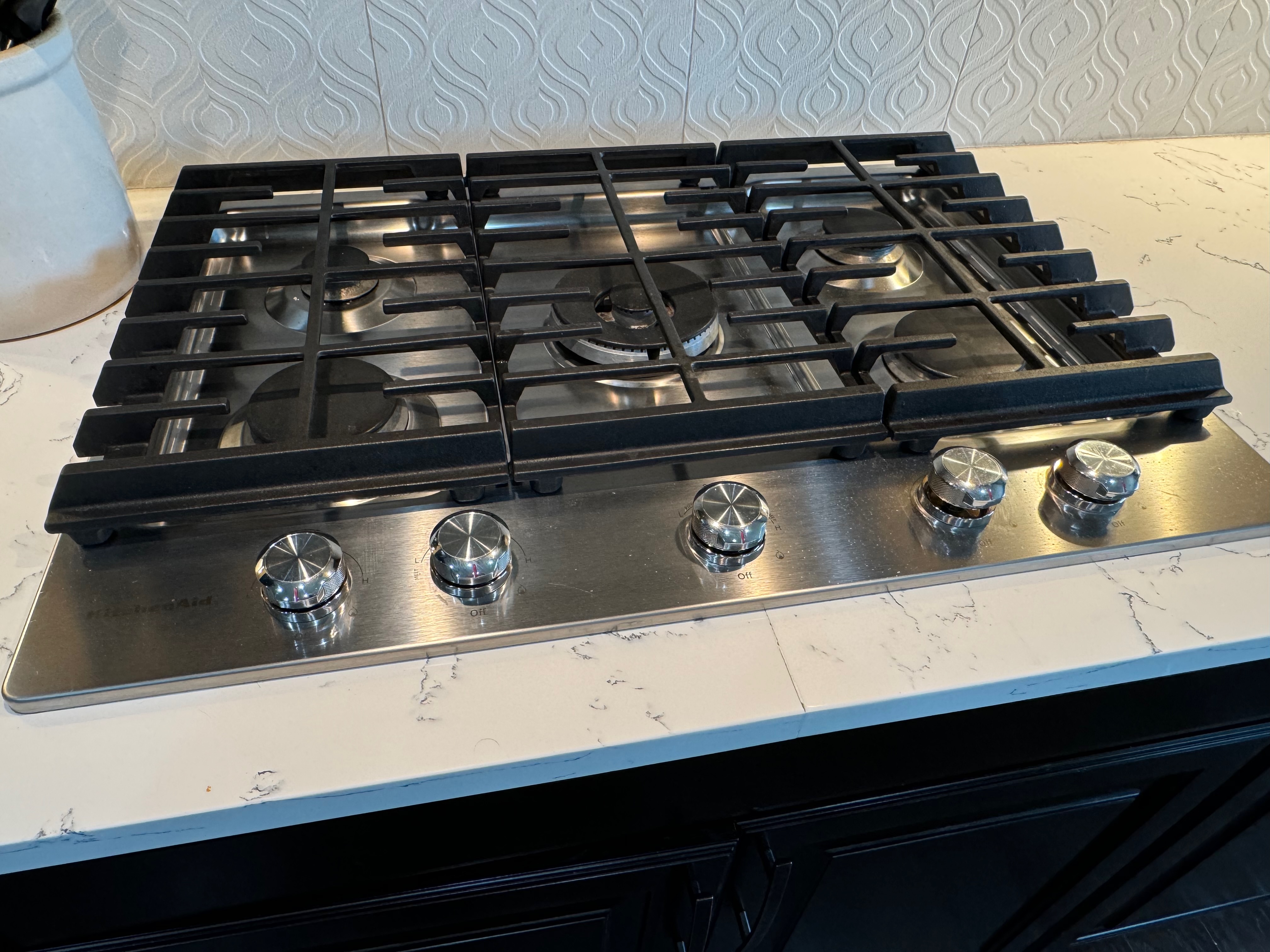30” KitchenAid 5 burner gas cooktop Model #KCGS550ESS01,Listing price new $1,148