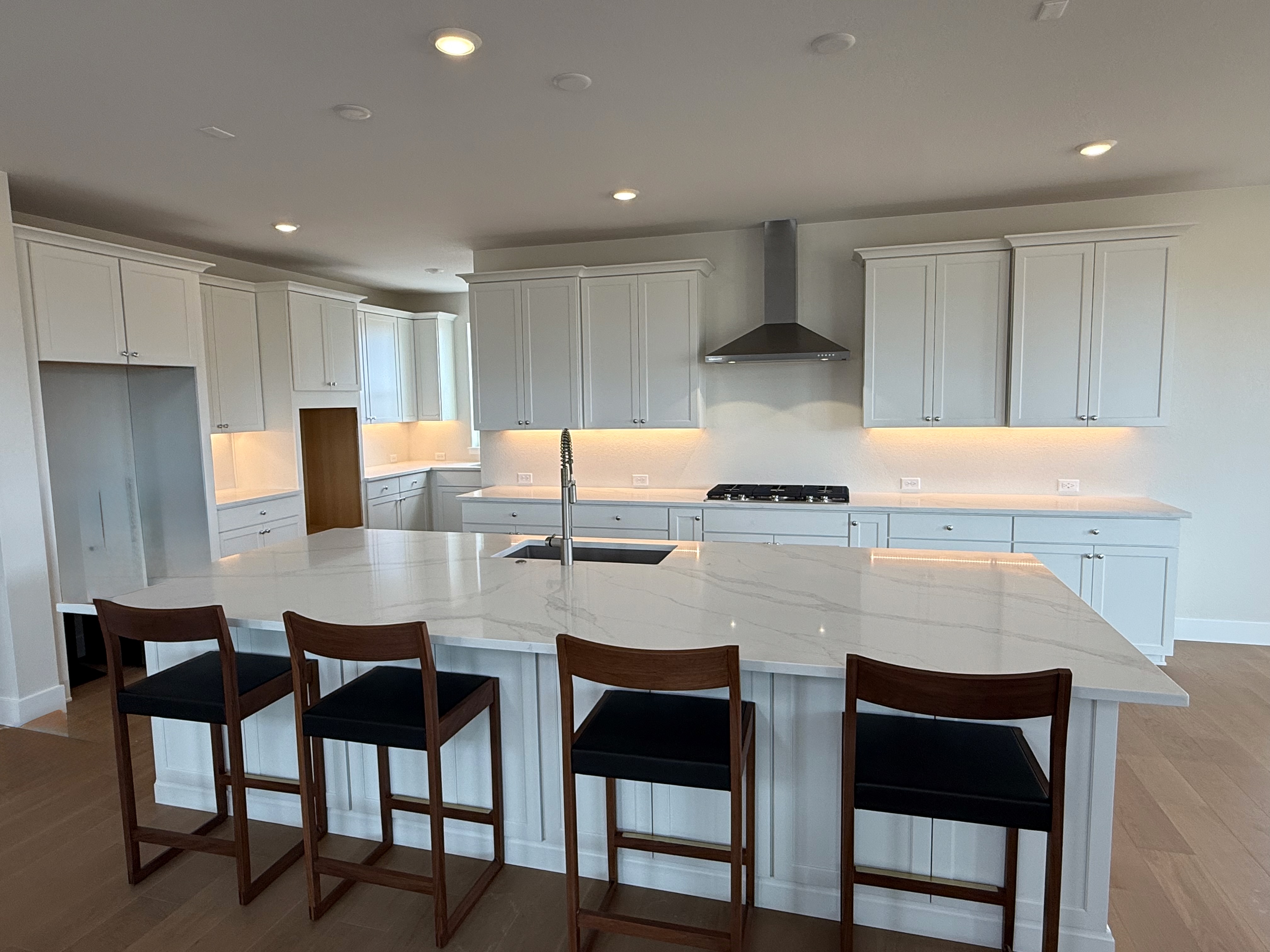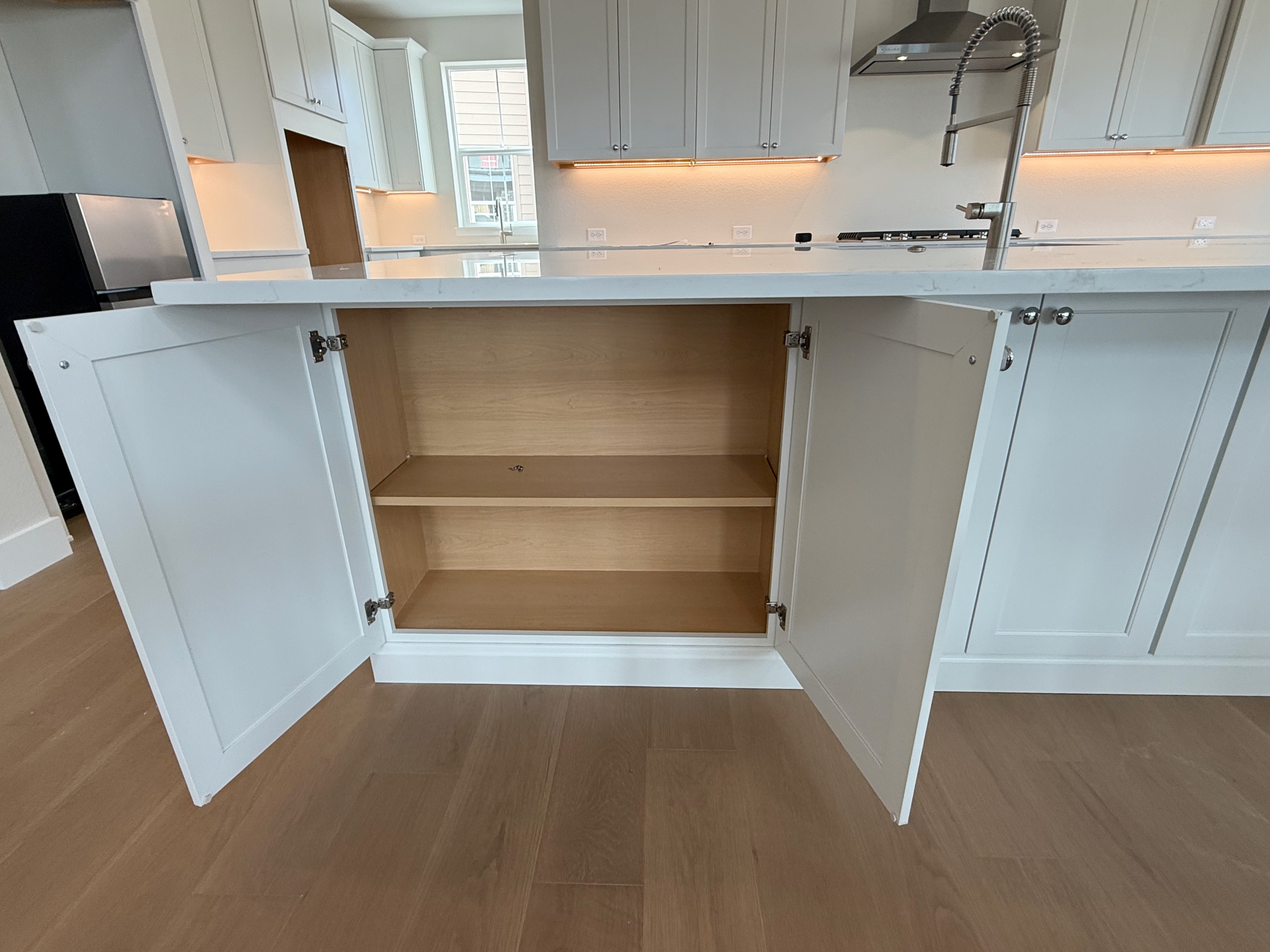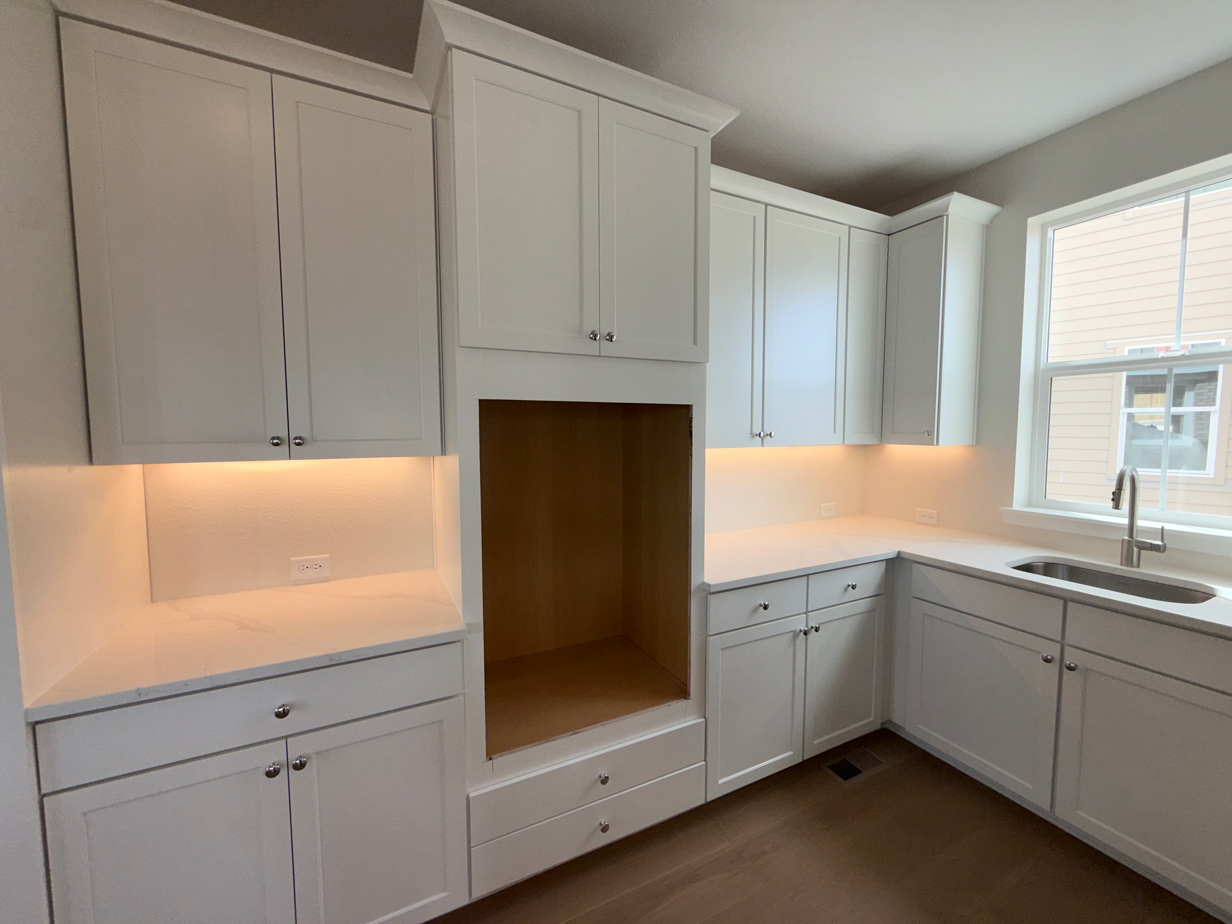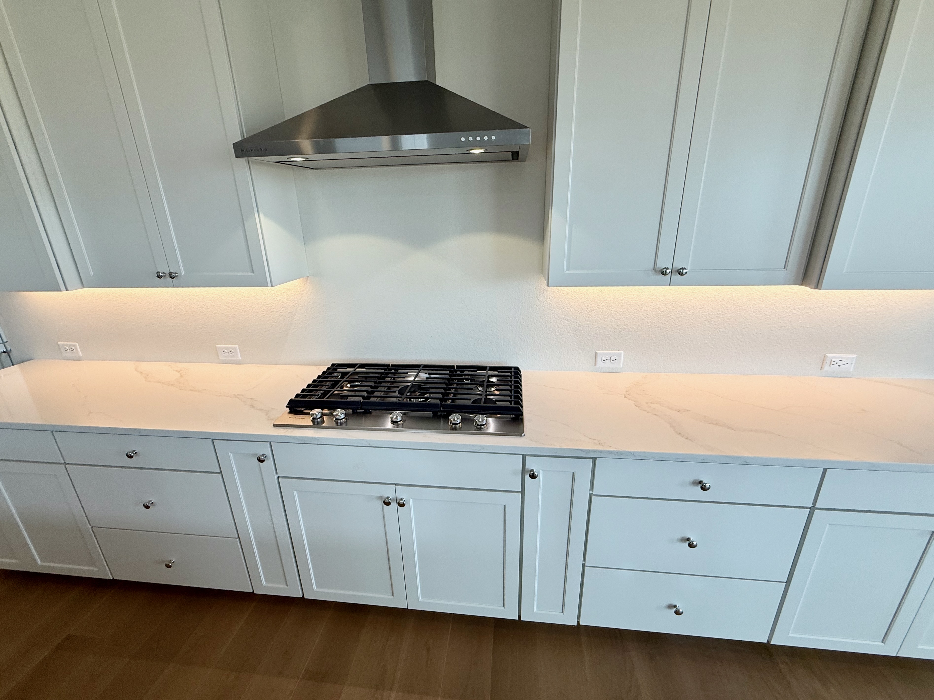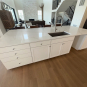 New Aristakraft kitchen cabinets in the Decatur PureStyle Slab Drawer front in White with beautiful Serene Quartz Countertops. The cabinetry has the soft close feature, dove-tail drawers, full extension and lots of roll-out drawer inserts. Included in the Kitchen package is a KitchenAid Stainless Steel gas cooktop, wall hood and Dishwasher, under cbainet lighting, along with 2 undermount sinks and faucet sets. Price for the package below. Drawings can be emailed. Everything will be carefully uninstalled by licensed contractors on Saturday March 14th.