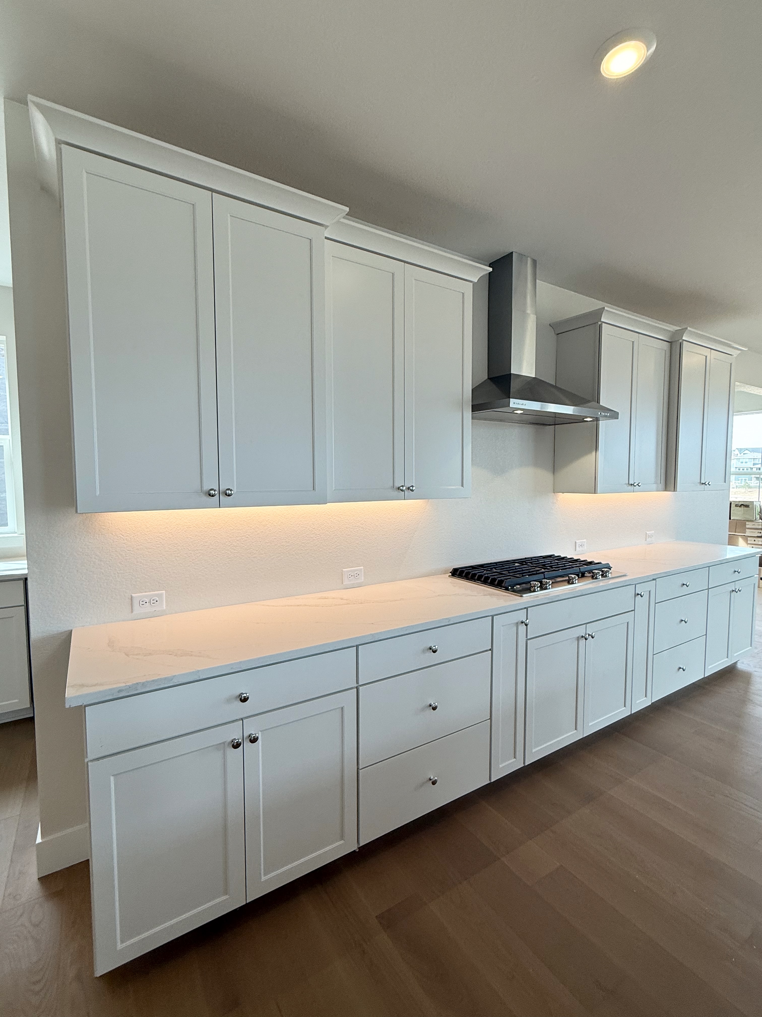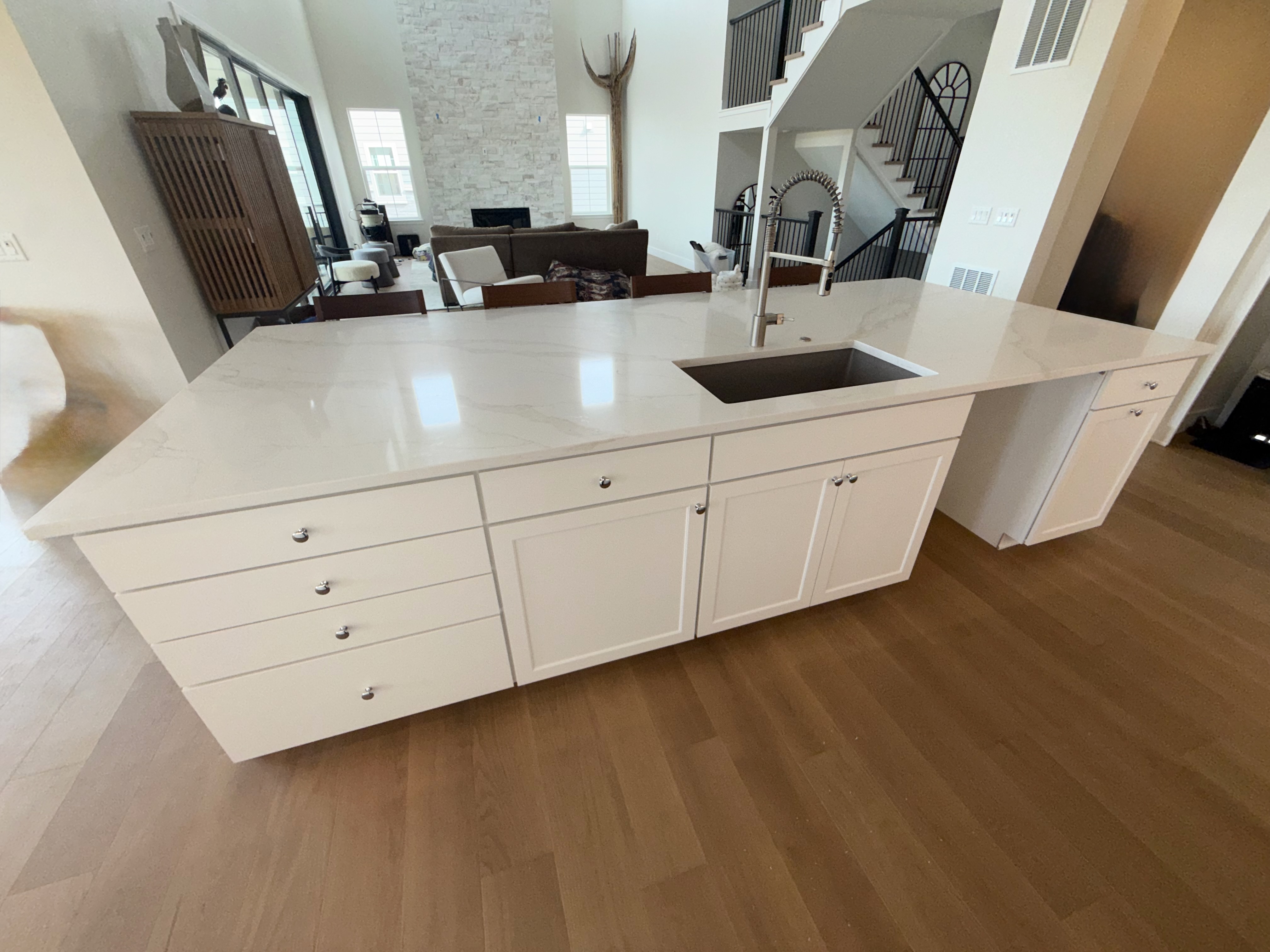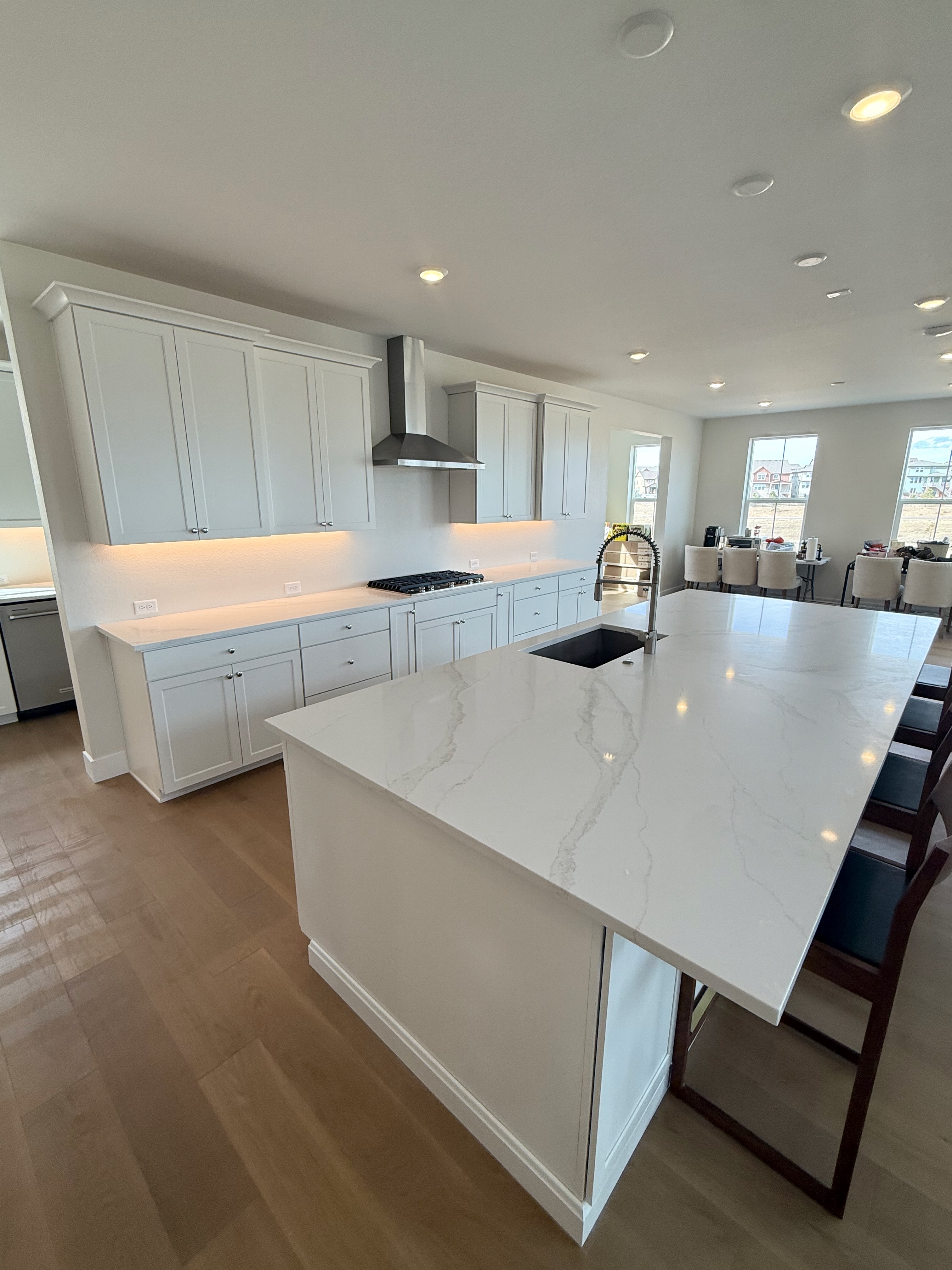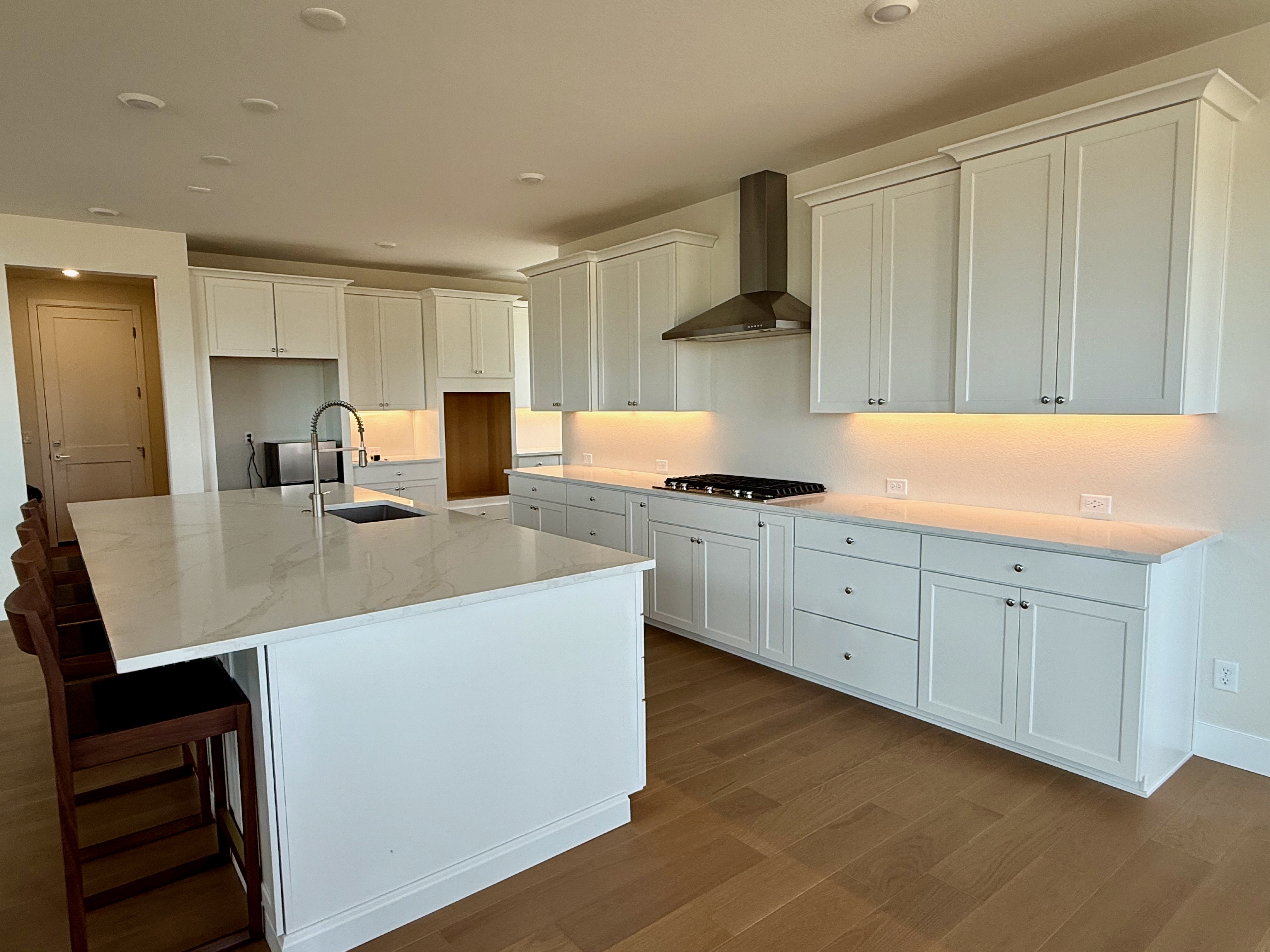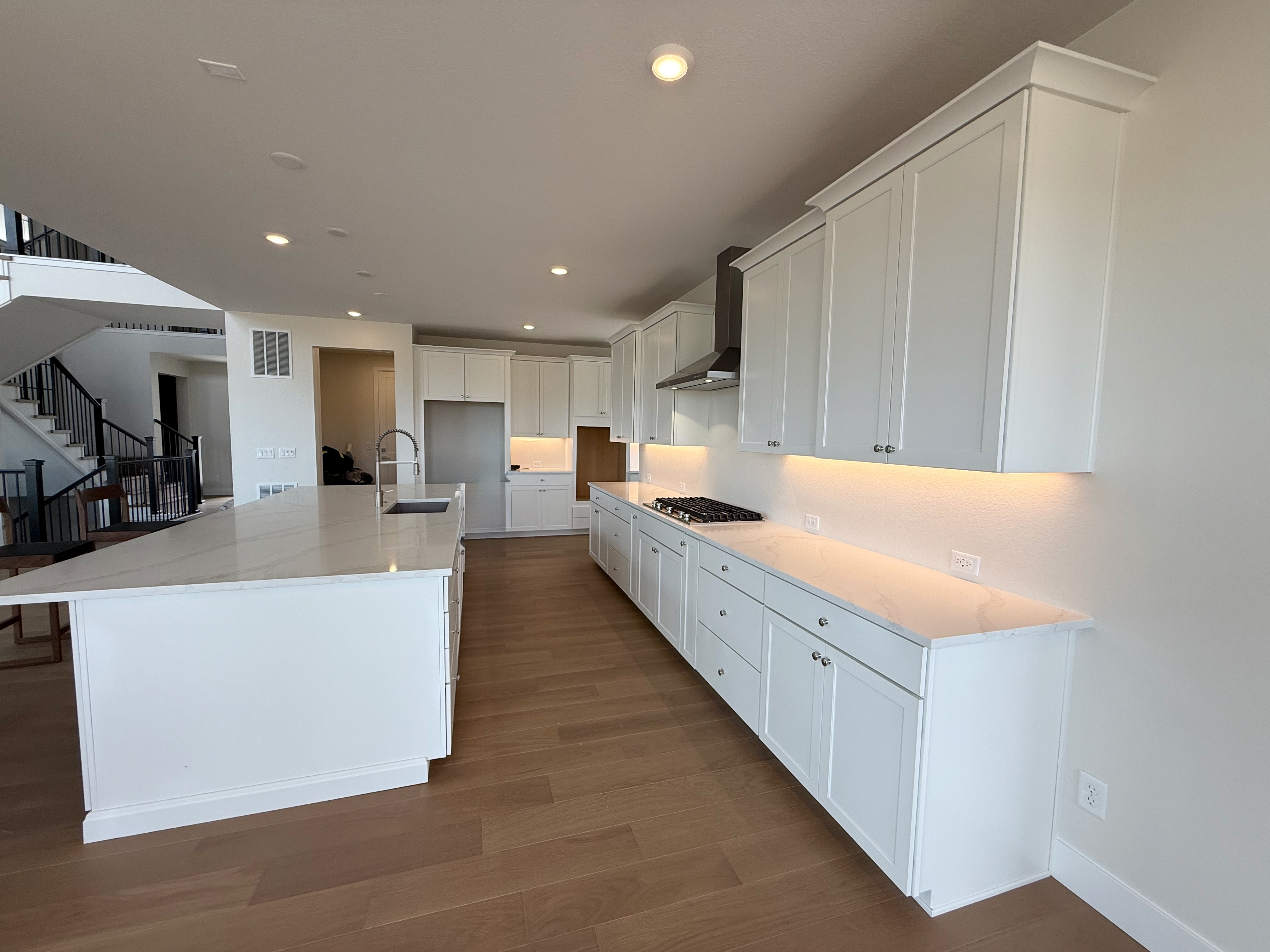 New Aristakraft kitchen cabinets in the Decatur PureStyle Slab Drawer front in White with beautiful Serene Quartz Countertops. The cabinetry has the soft close feature, dove-tail drawers, full extension and lots of roll-out drawer inserts. Included in the Kitchen package is a KitchenAid Stainless Steel gas cooktop, wall hood and Dishwasher, under cbainet lighting, along with 2 undermount sinks and faucet sets. Price for the package below. Drawings can be emailed. Everything will be carefully uninstalled by licensed contractors on Saturday March 14th.