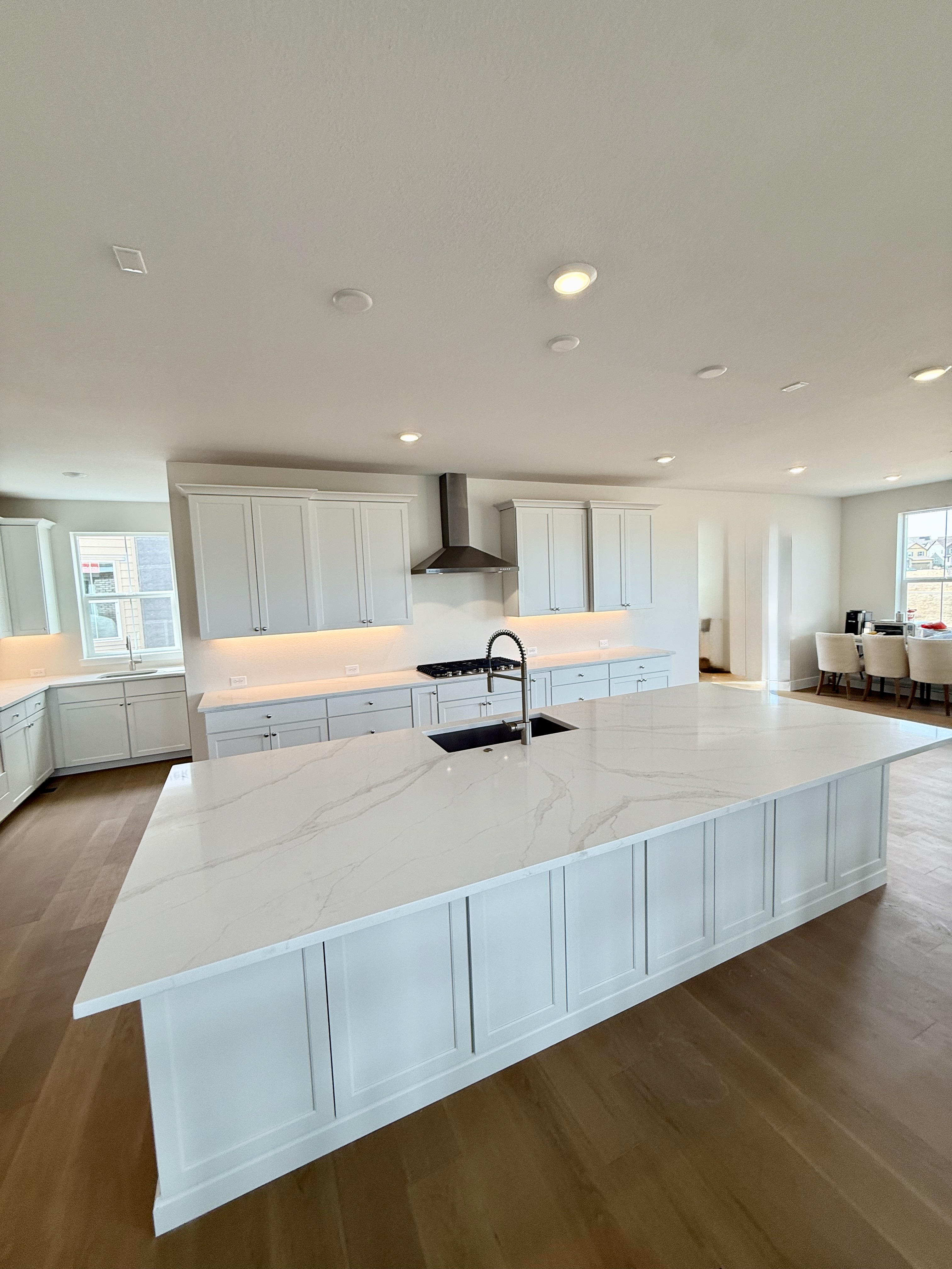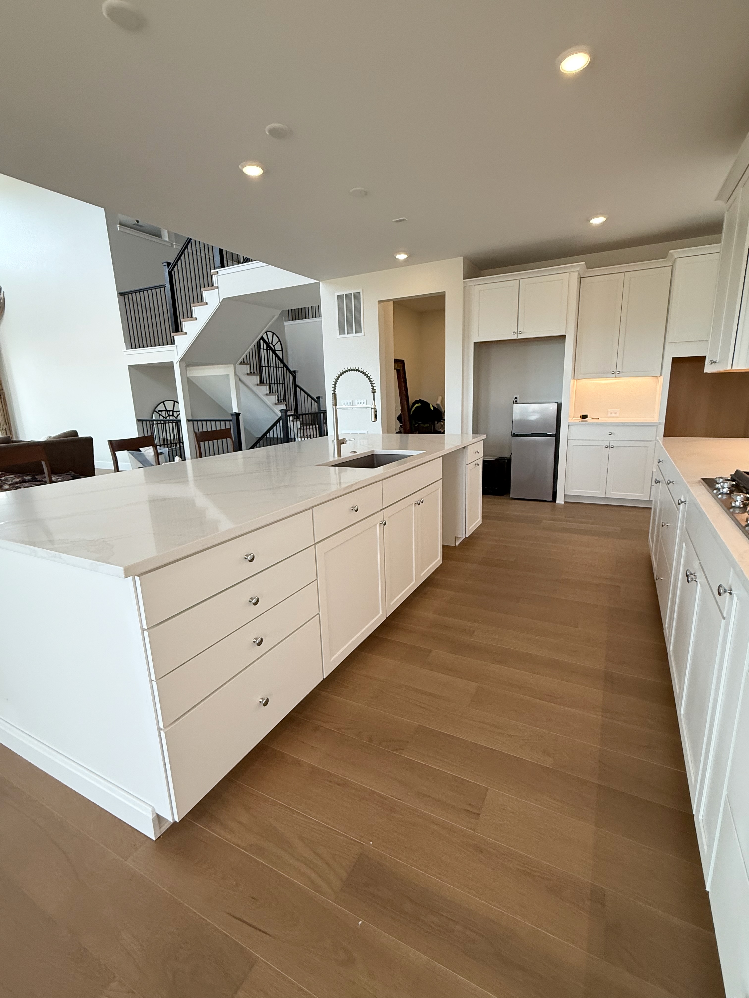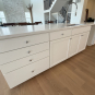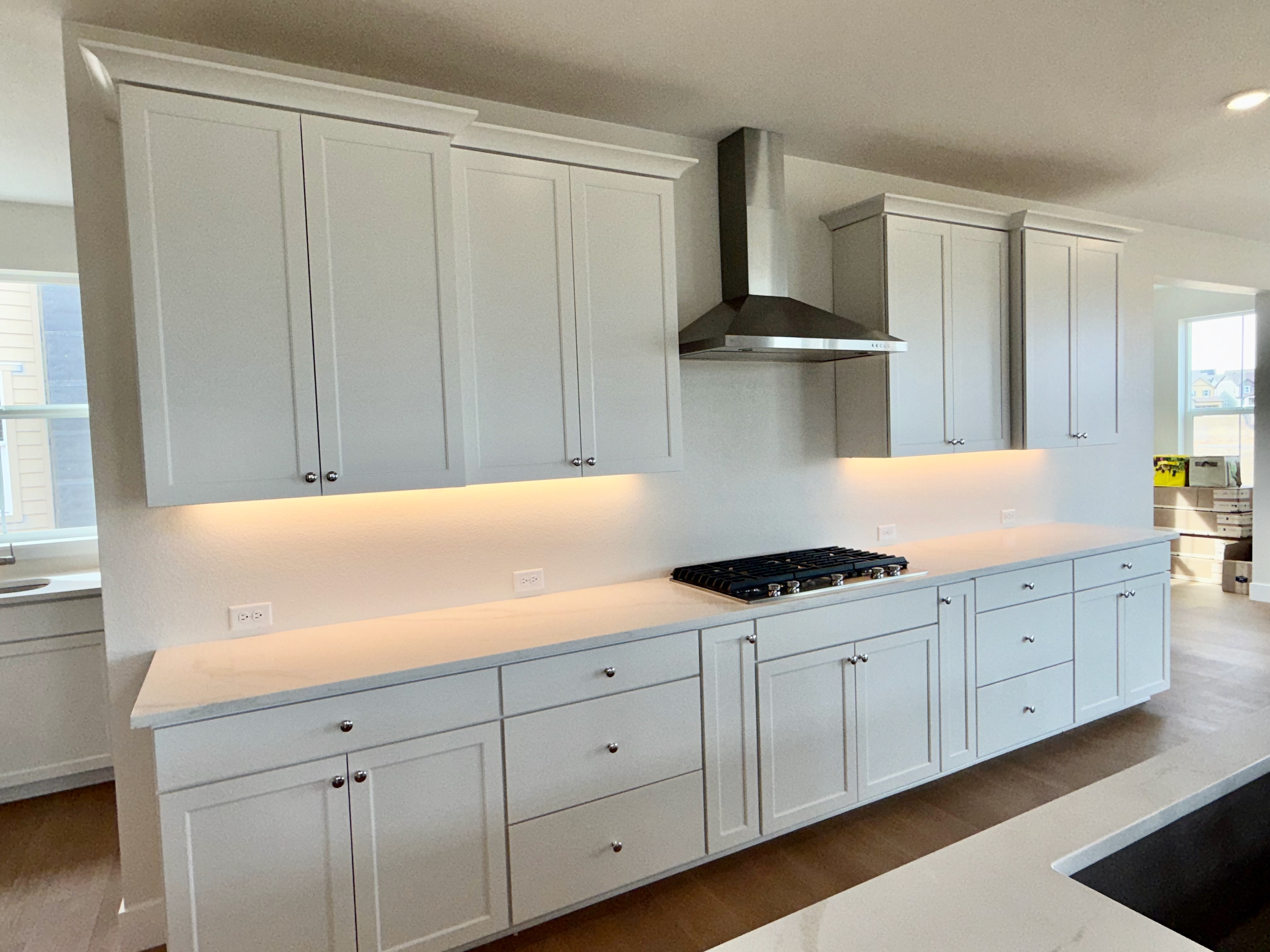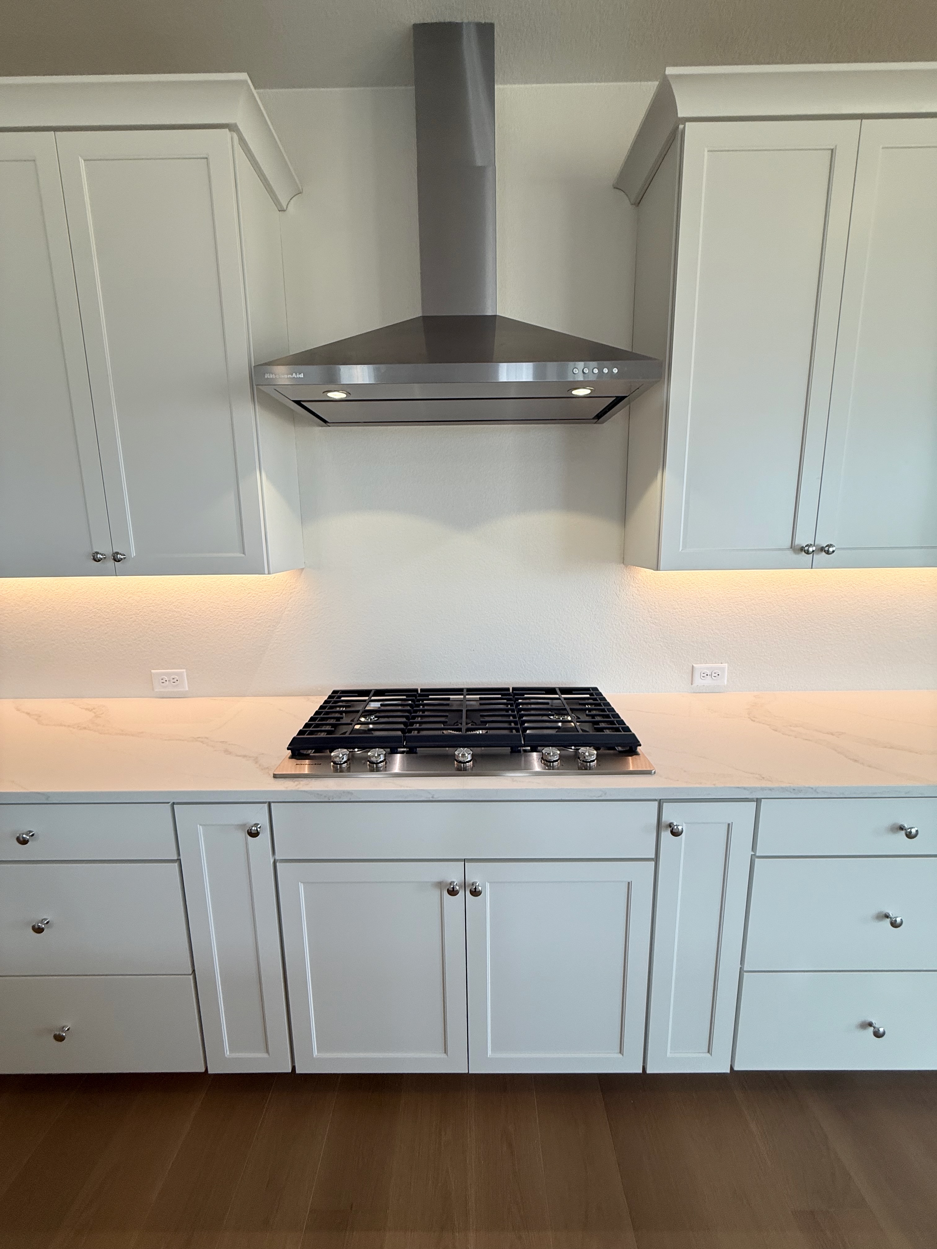 New Aristakraft kitchen cabinets in the Decatur PureStyle Slab Drawer front in White with beautiful Serene Quartz Countertops. The cabinetry has the soft close feature, dove-tail drawers, full extension and lots of roll-out drawer inserts. Included in the Kitchen package is a KitchenAid Stainless Steel gas cooktop, wall hood and Dishwasher, under cbainet lighting, along with 2 undermount sinks and faucet sets. Price for the package below. Drawings can be emailed. Everything will be carefully uninstalled by licensed contractors on Saturday March 14th.