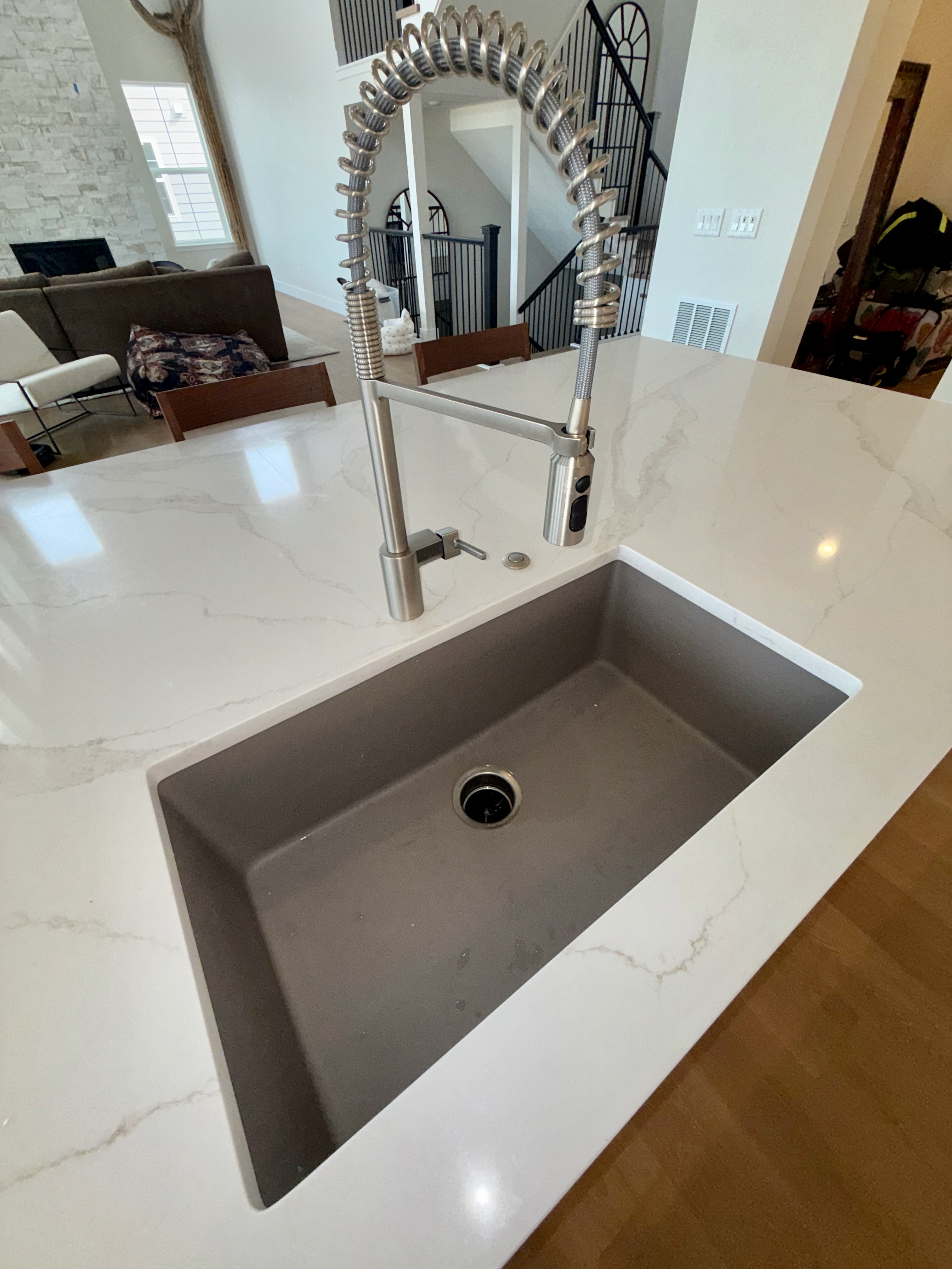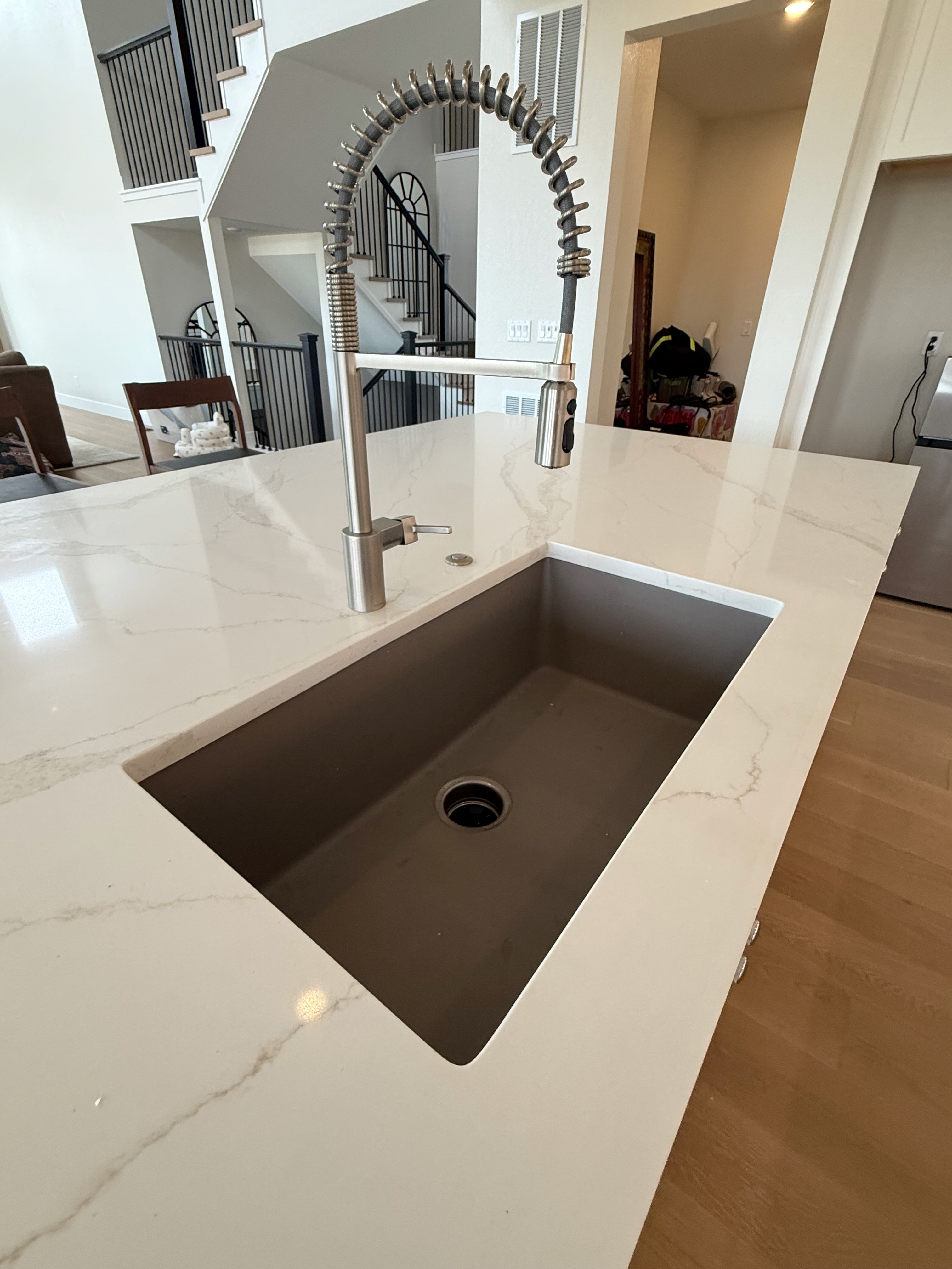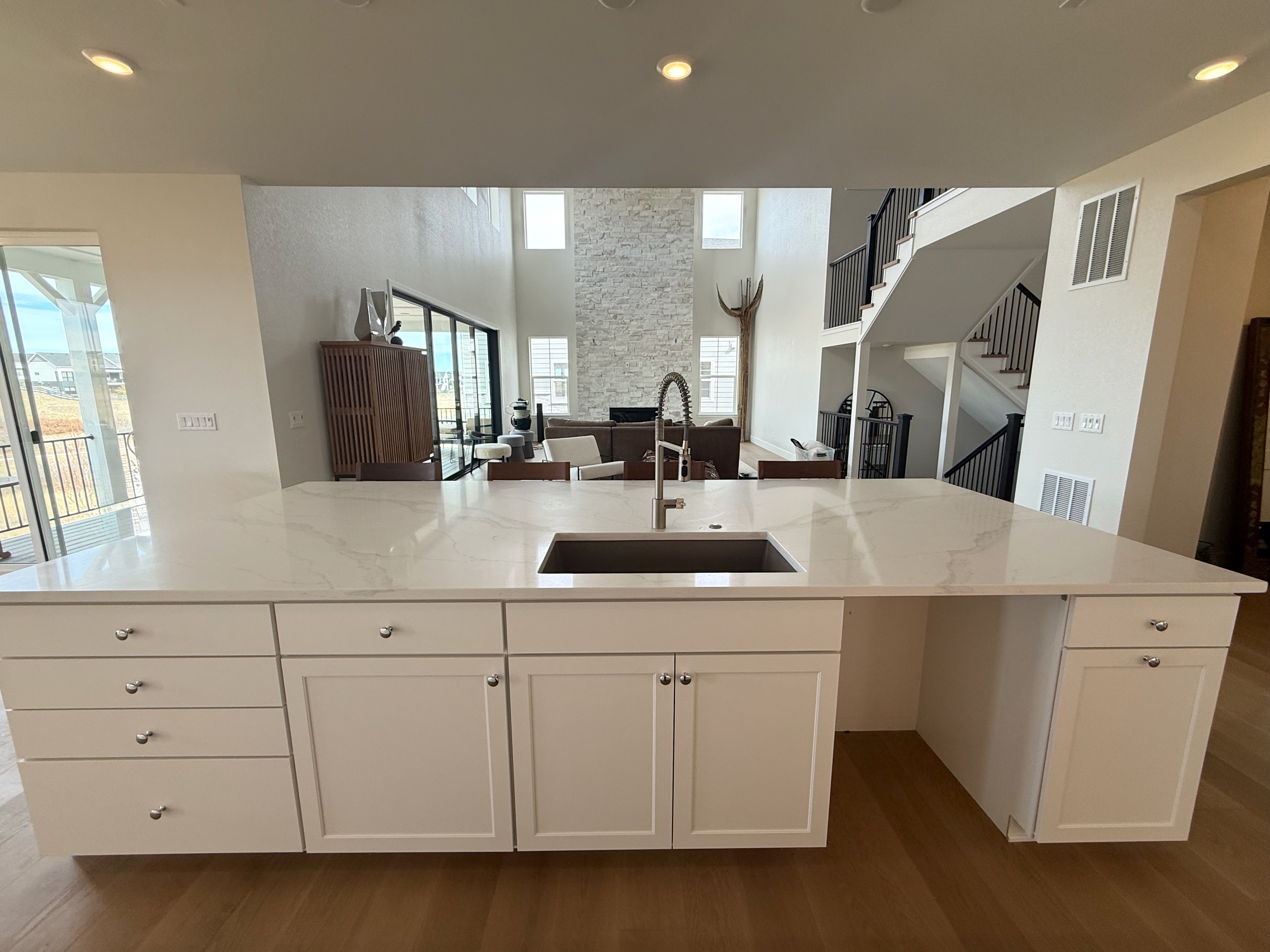Counter with prep sink from left wall to 2nd Refrigerator opening 111 x 25 ½”d