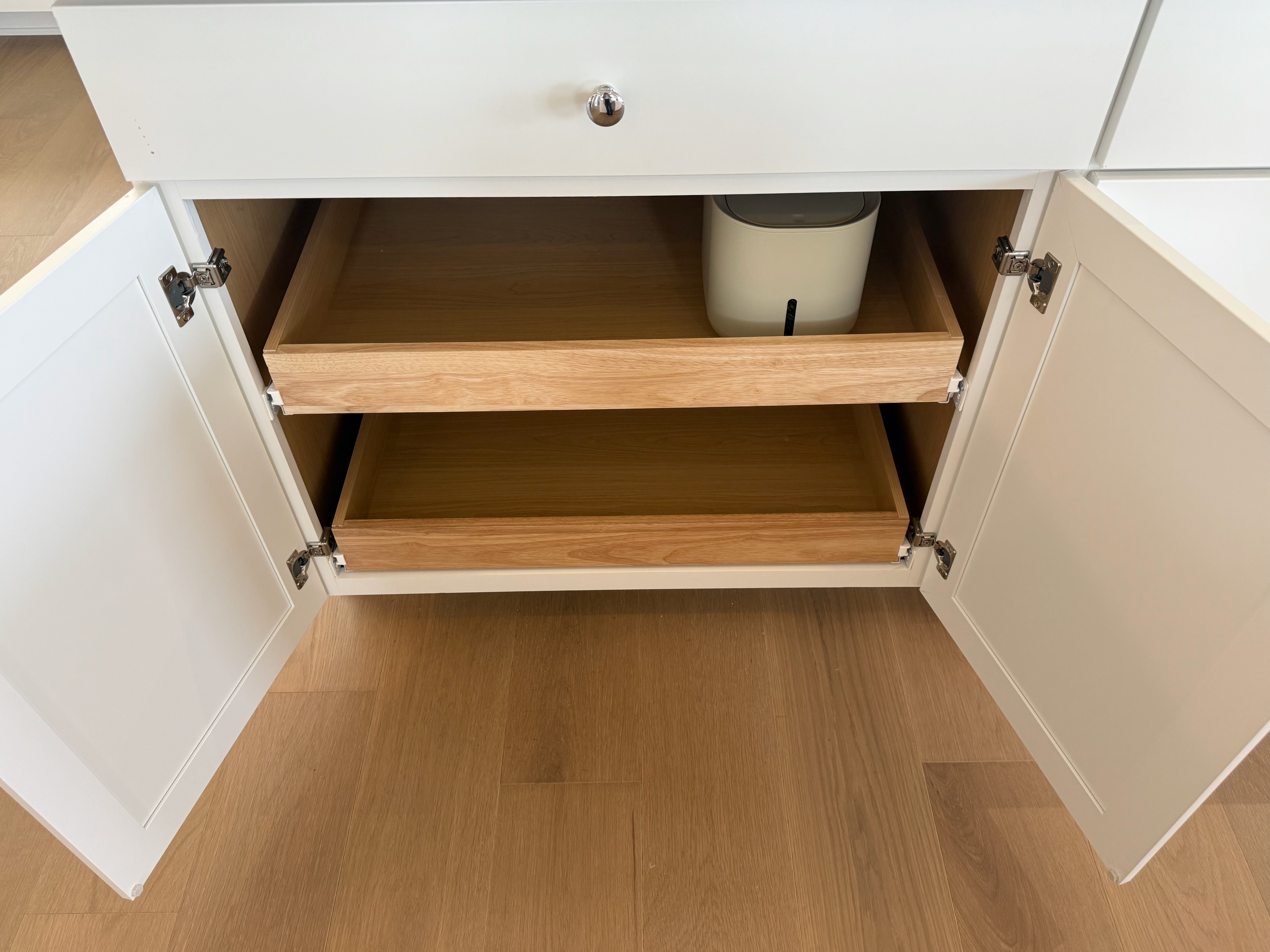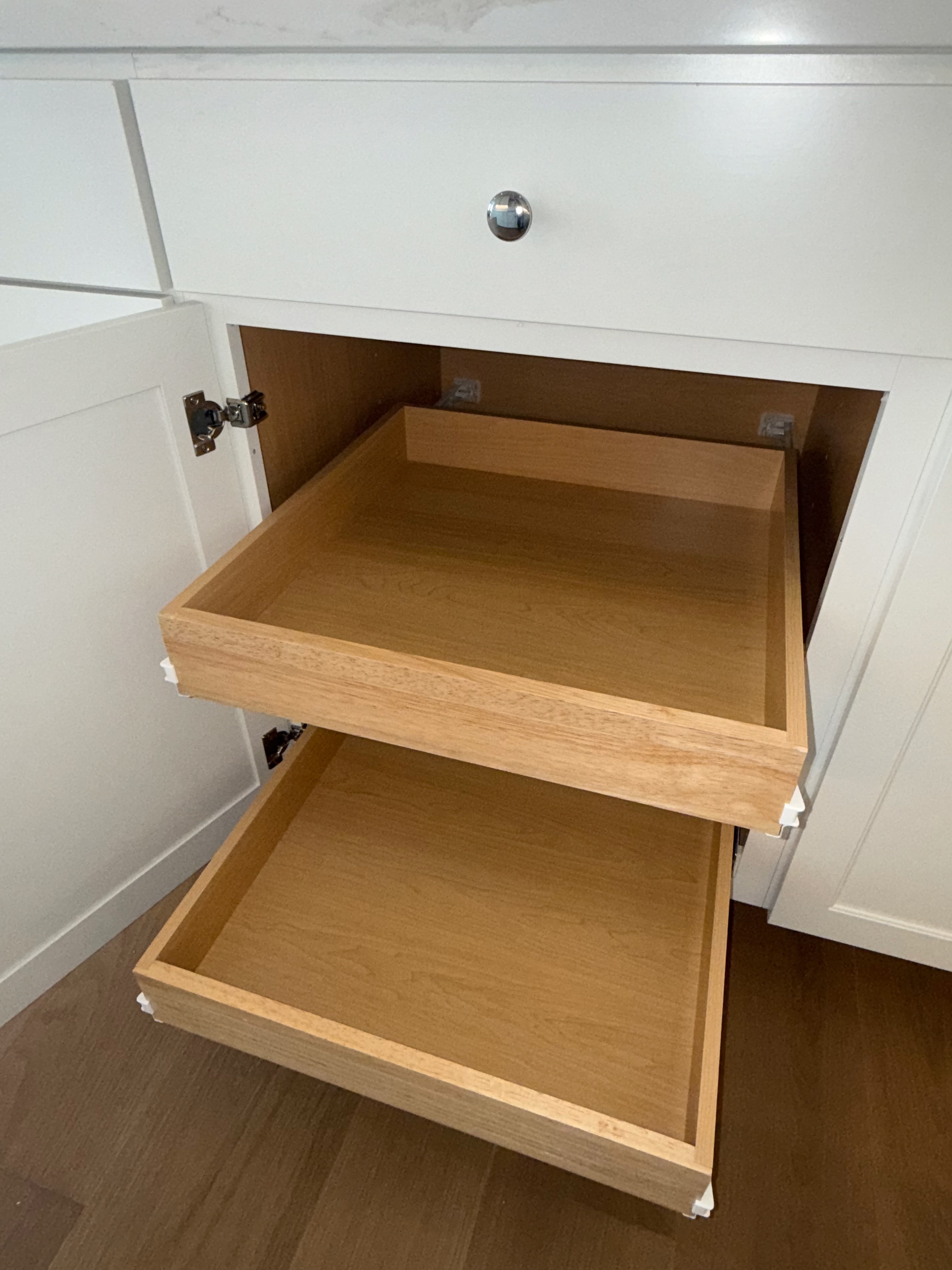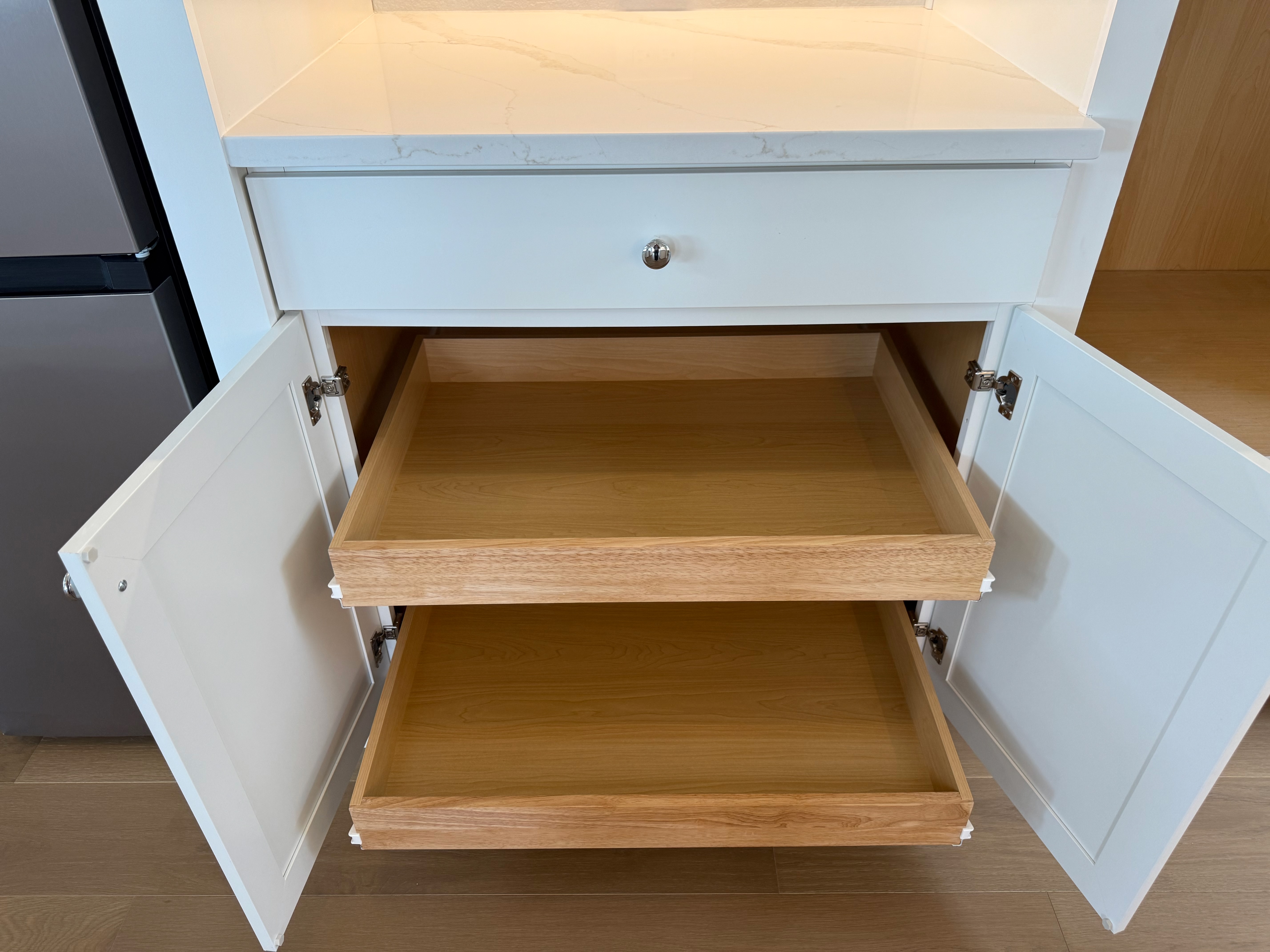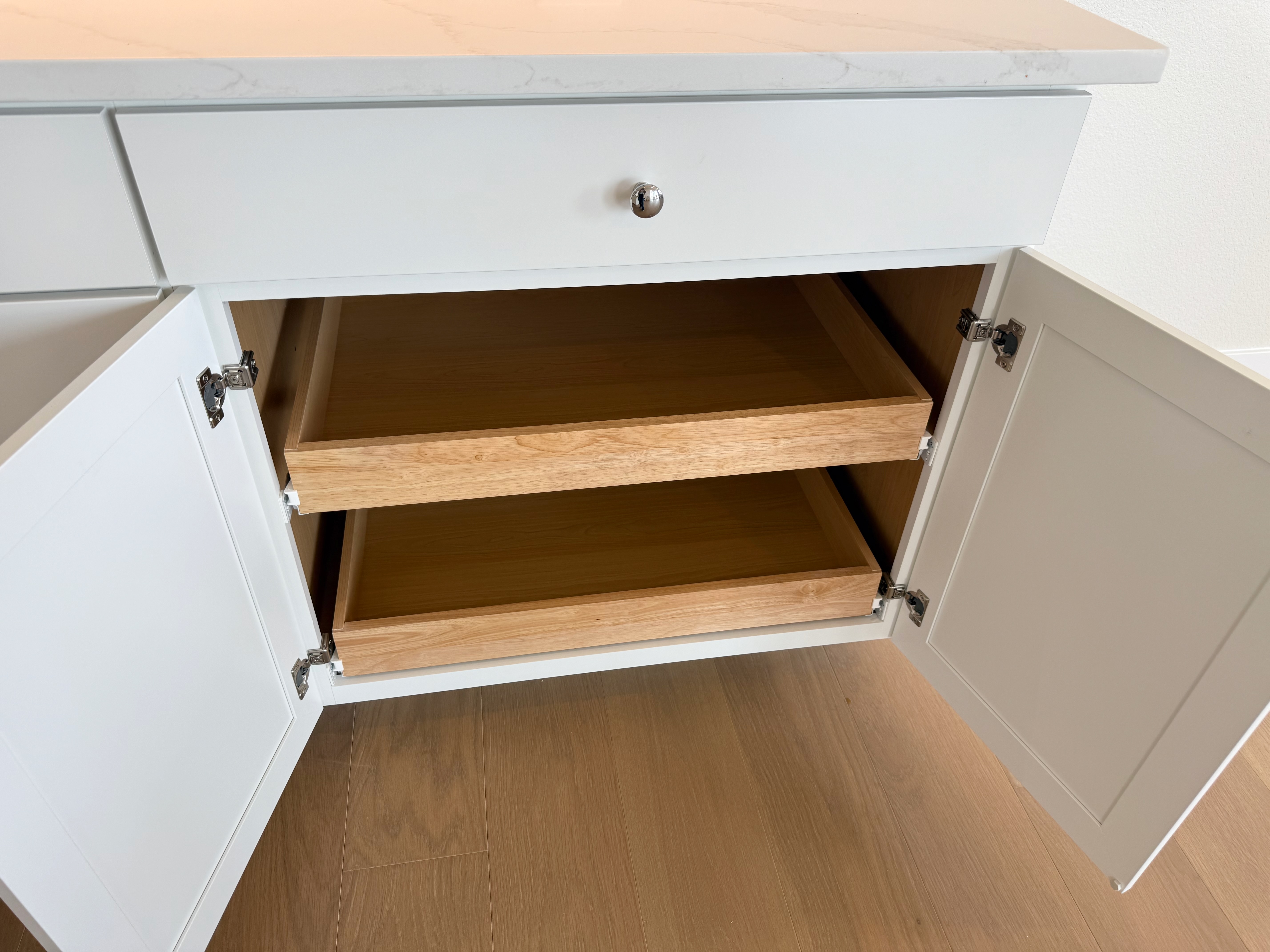 1-One drawer, one door base cabinet w/ two roll-out drawers inside Dim.:33”w x 34 ½”h/36”h x 24”d