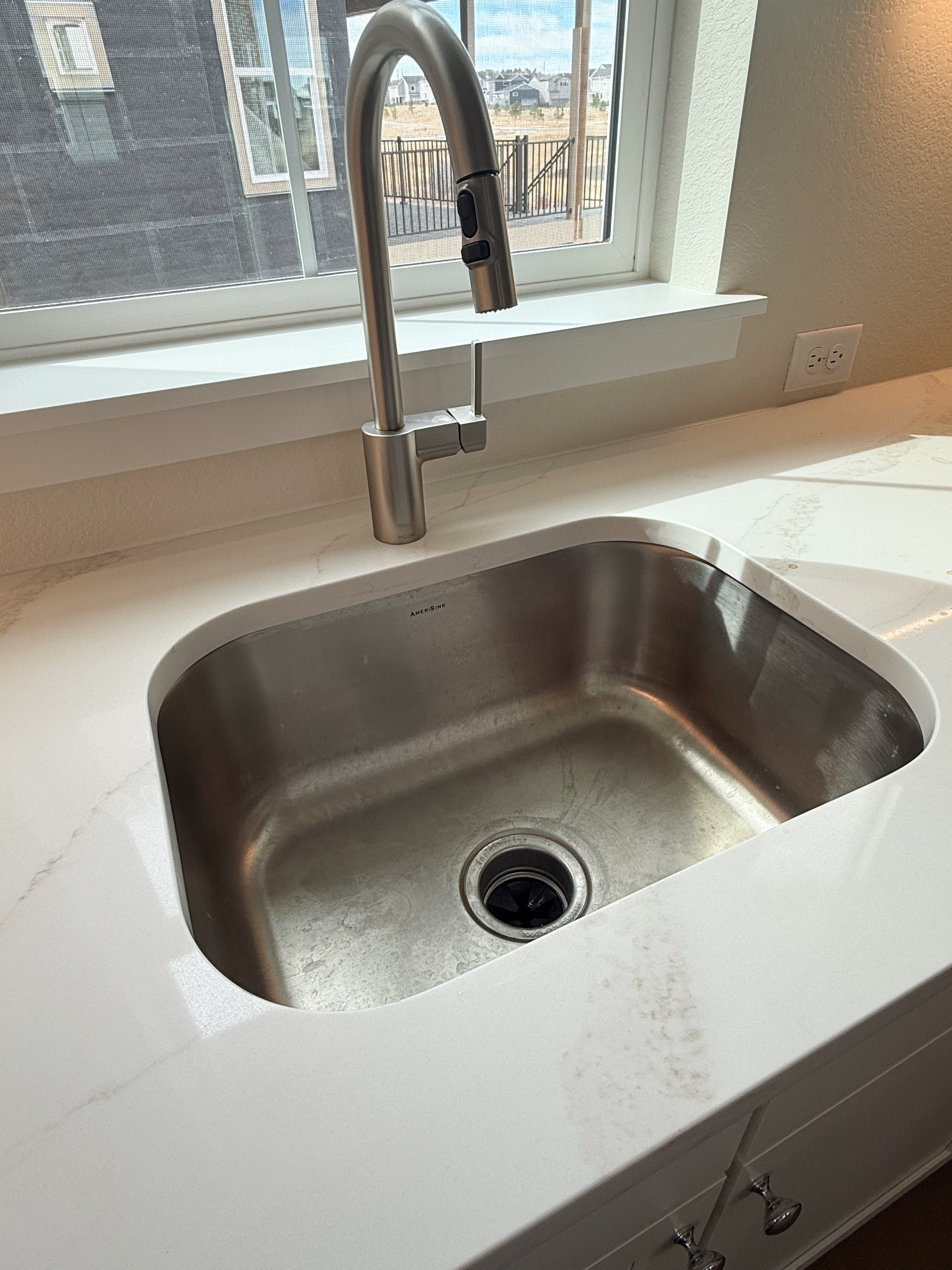 Counter right of refrigerator opening 33 ¼”w x 25 ½”d