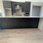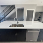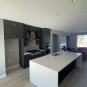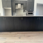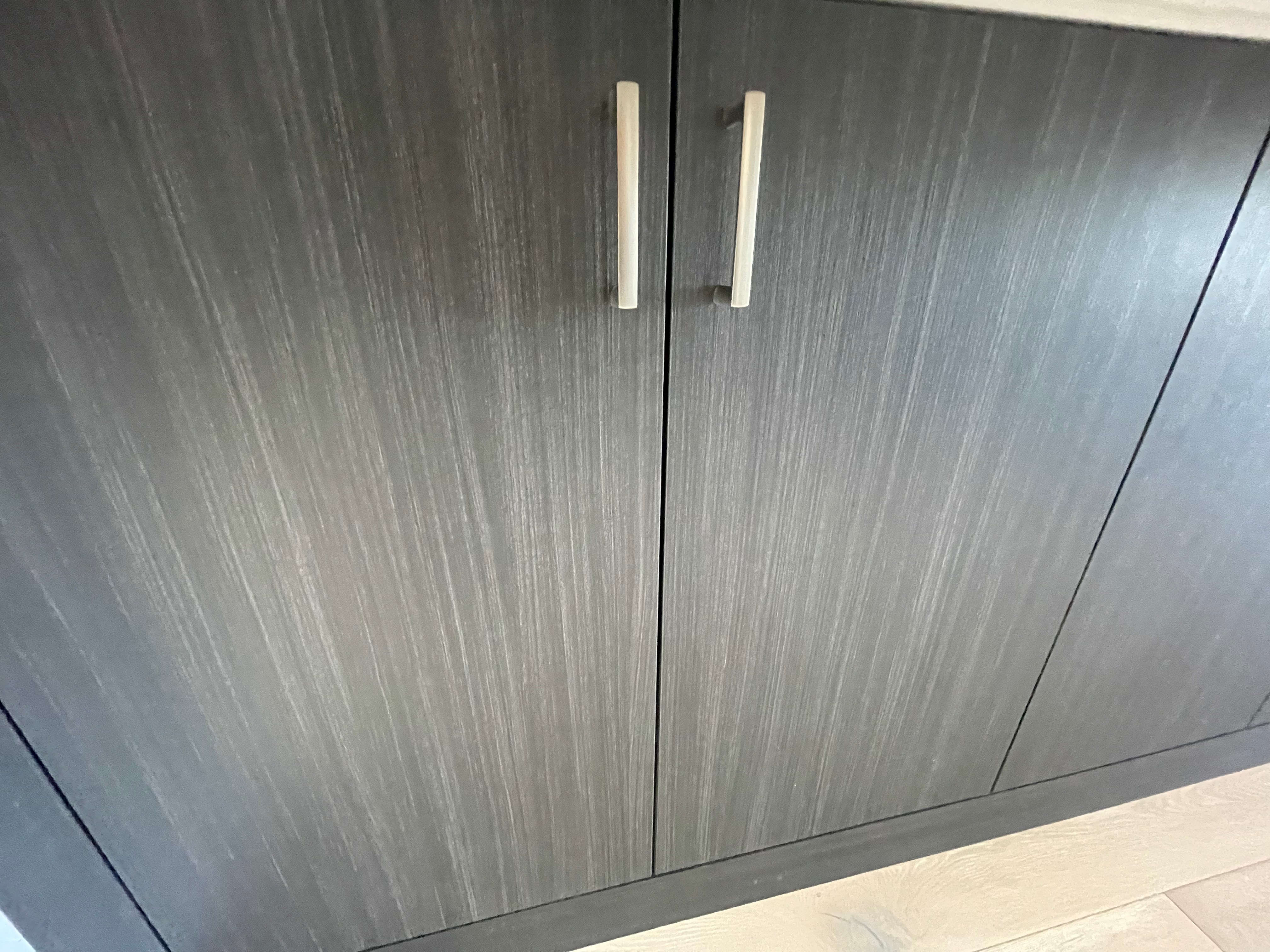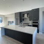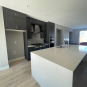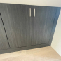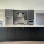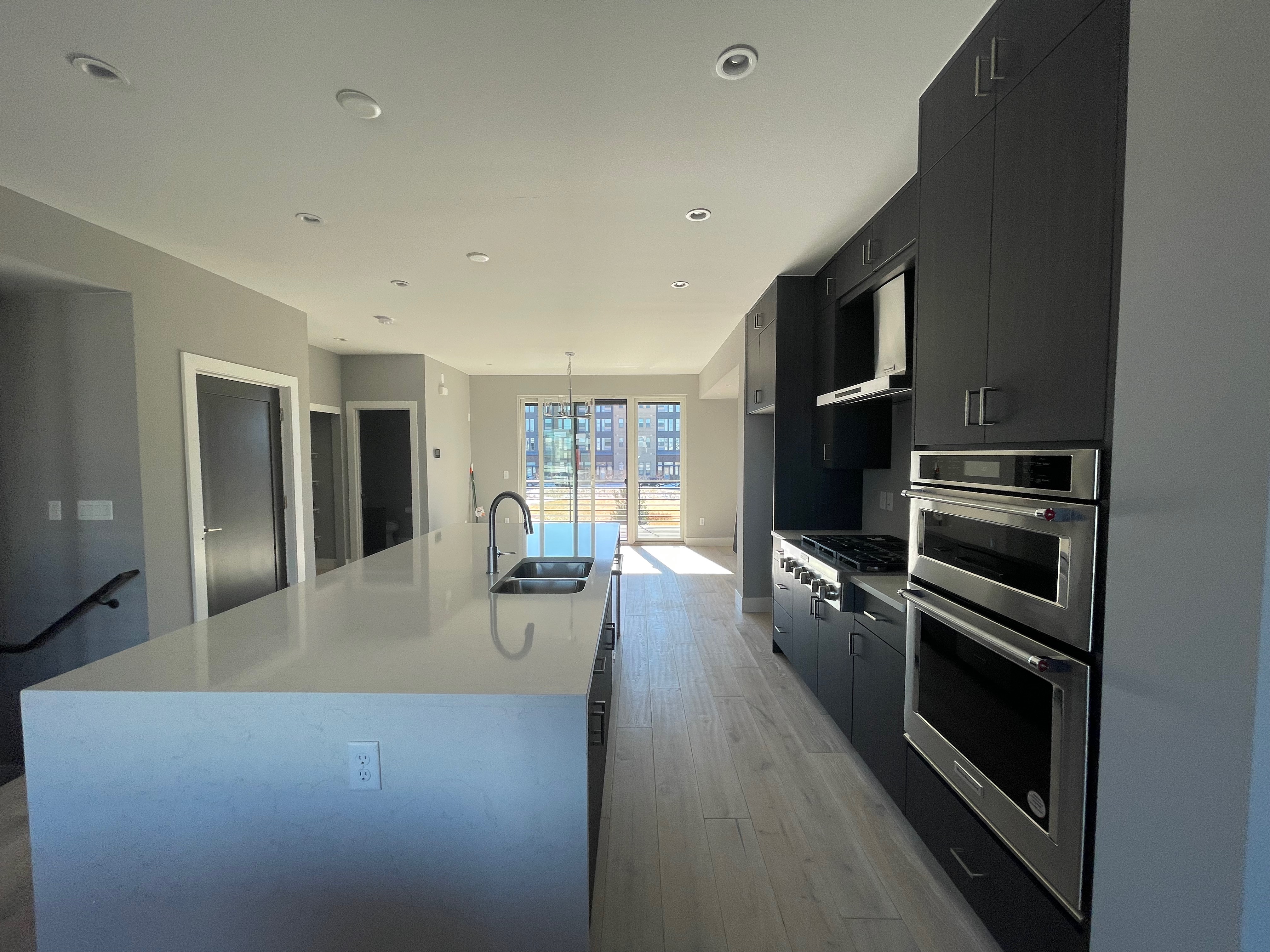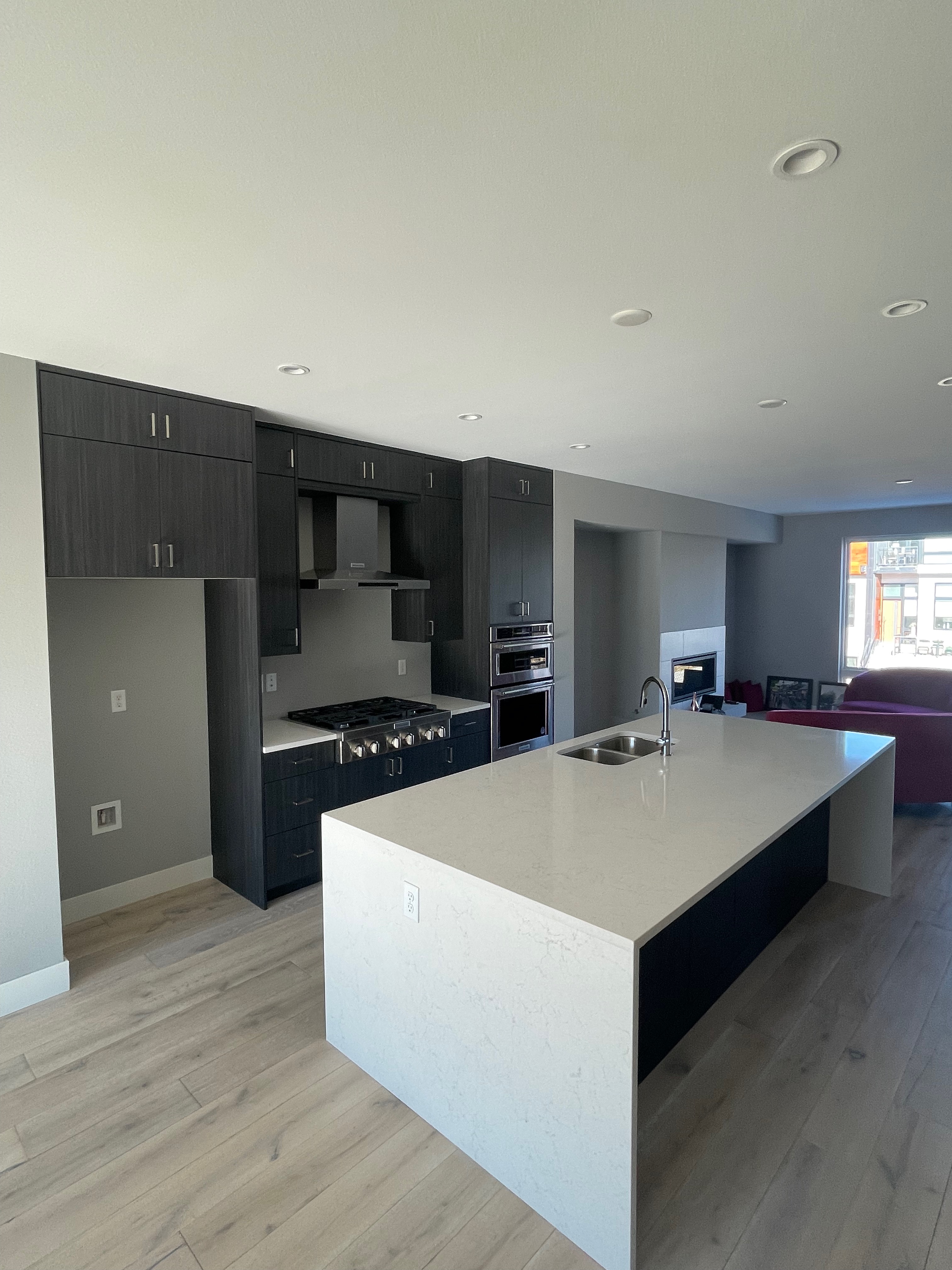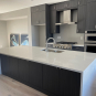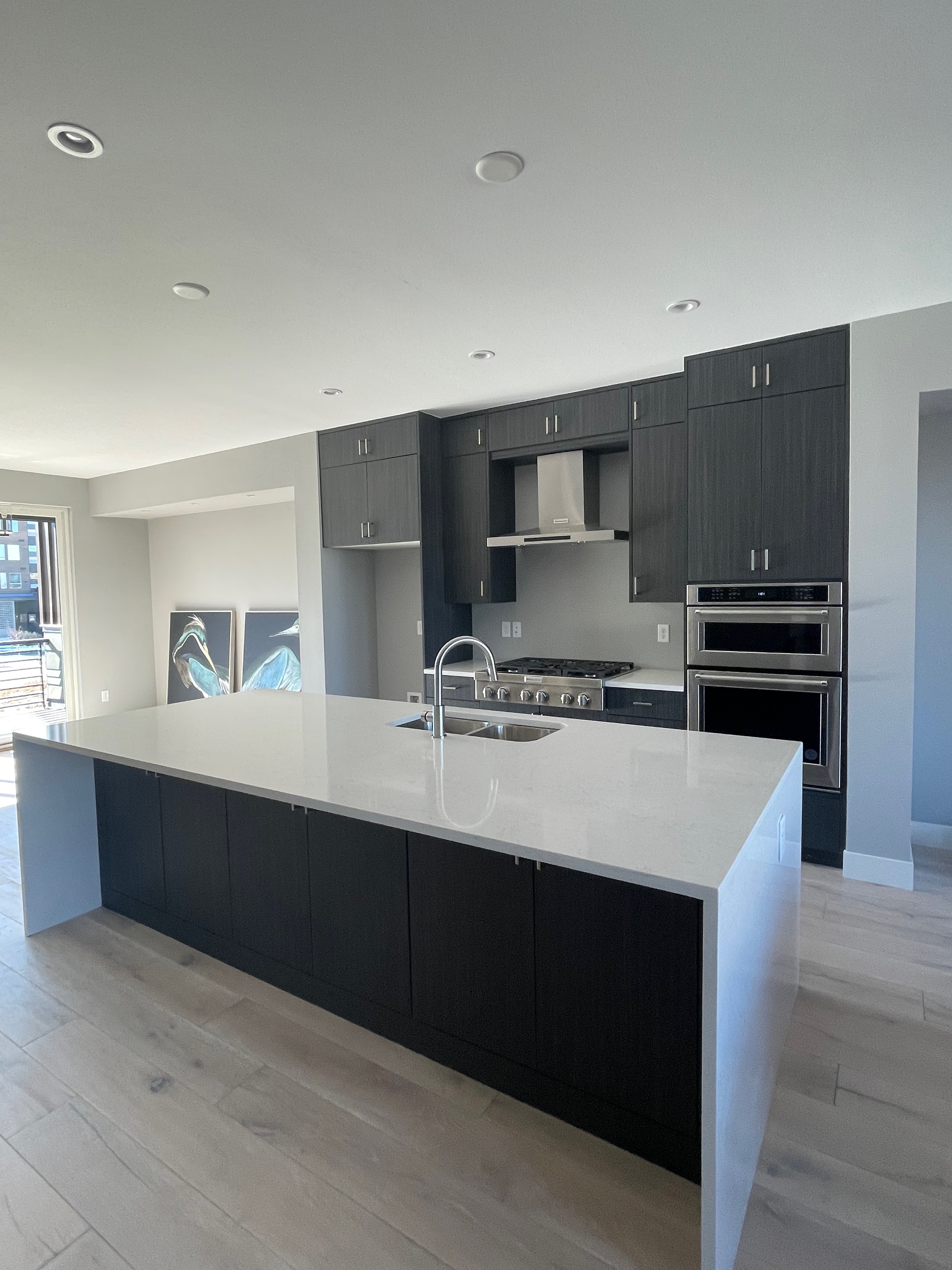 New, never used "Tharpe" Kitchen Cabinets in a gray textured melamine with Quartz Counter tops and brand new KitchenAid stainless steel appliances in a new build! The kitchen has been carefully removed by contractors and is ready to pick up anytime. Price for the package below.