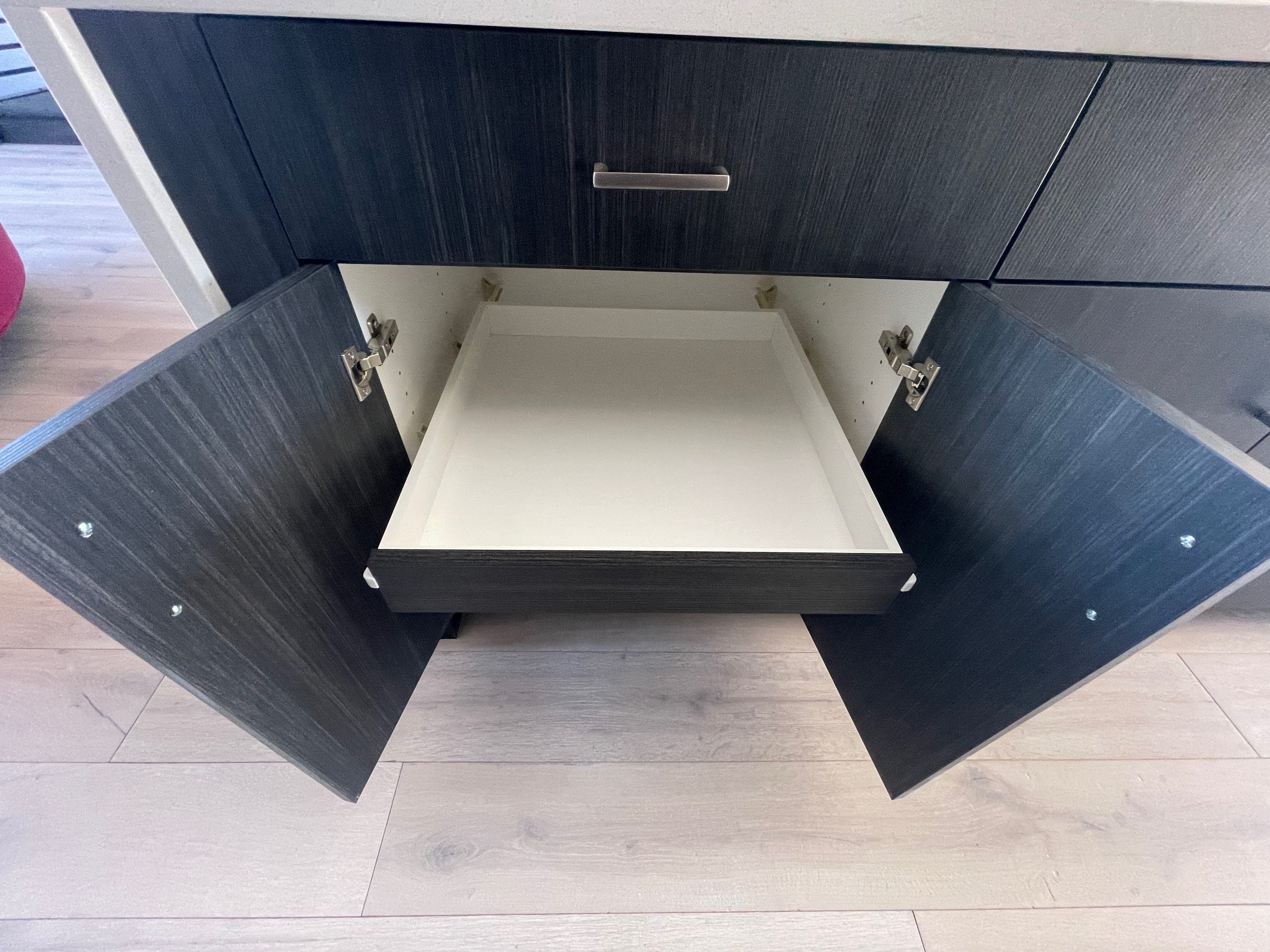 1-One drawer, Two door base cabinet, one pull out drawer inside Dim.: 25 ¾” w x 36”h x 24”