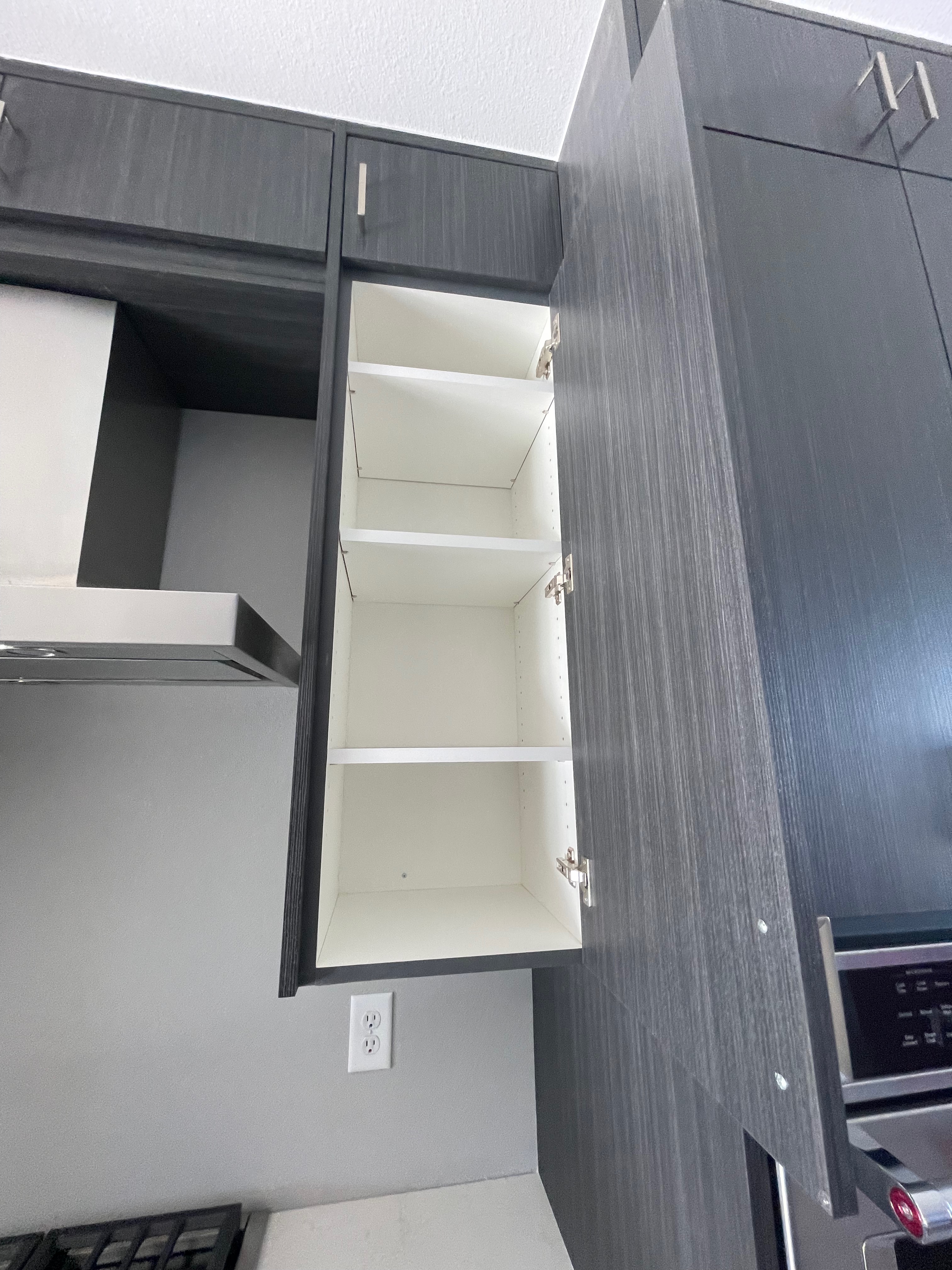1-Two door cabinet over the hood Dim.:40” w x 10”h and 10”h/14 3/8”h w/crown/base trim x 12”d