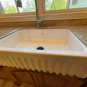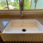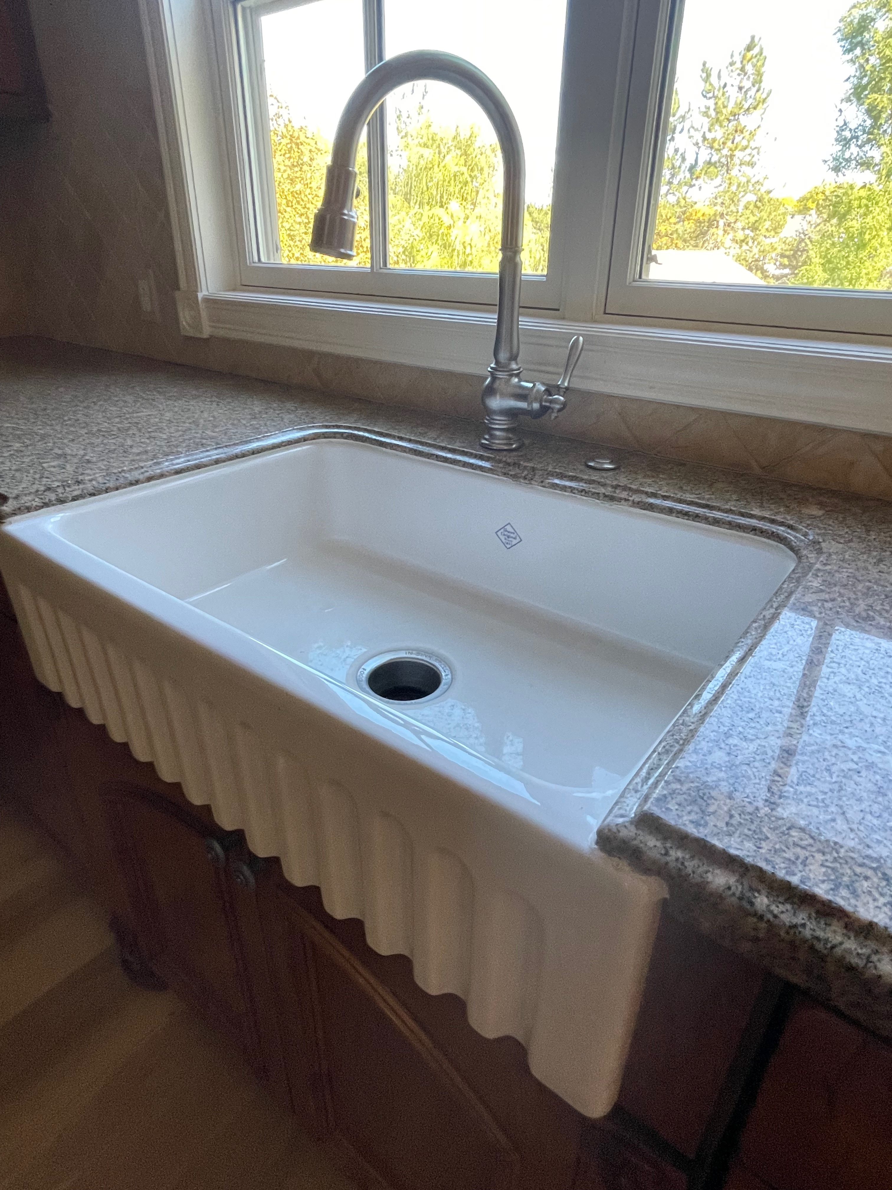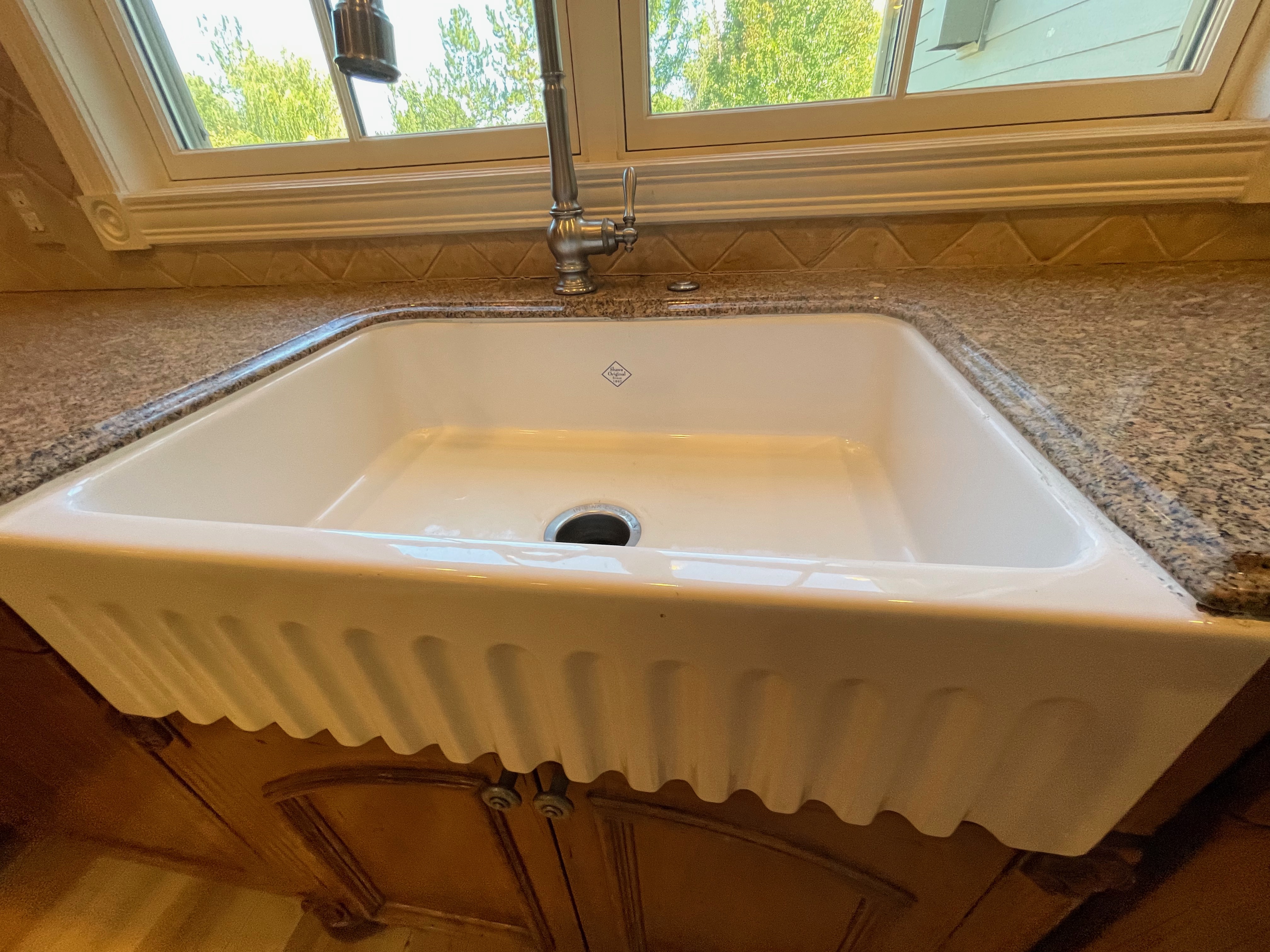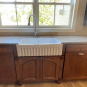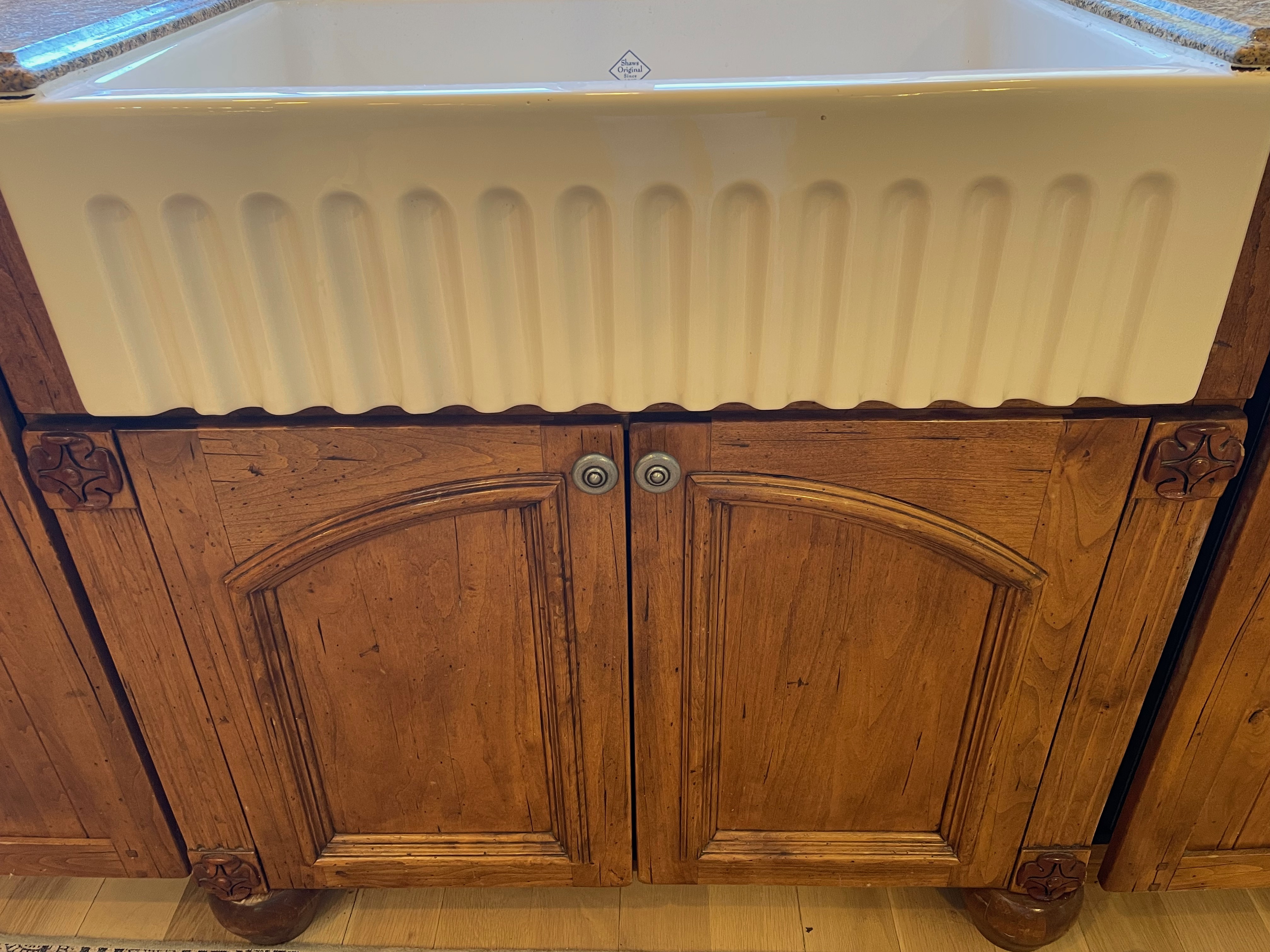 1-Two door farmhouse sink base Dim.: 30”w cab. only /36”w x 36”h x 24”d *Rohl Shaw Bowland Apron farmhouse sinkDim.: 32”w x 9”h x 20”d
