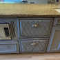 1-Two drawer base cabinet in blue in the peninsula Dim.: 24”w x 36”h x 24”d
