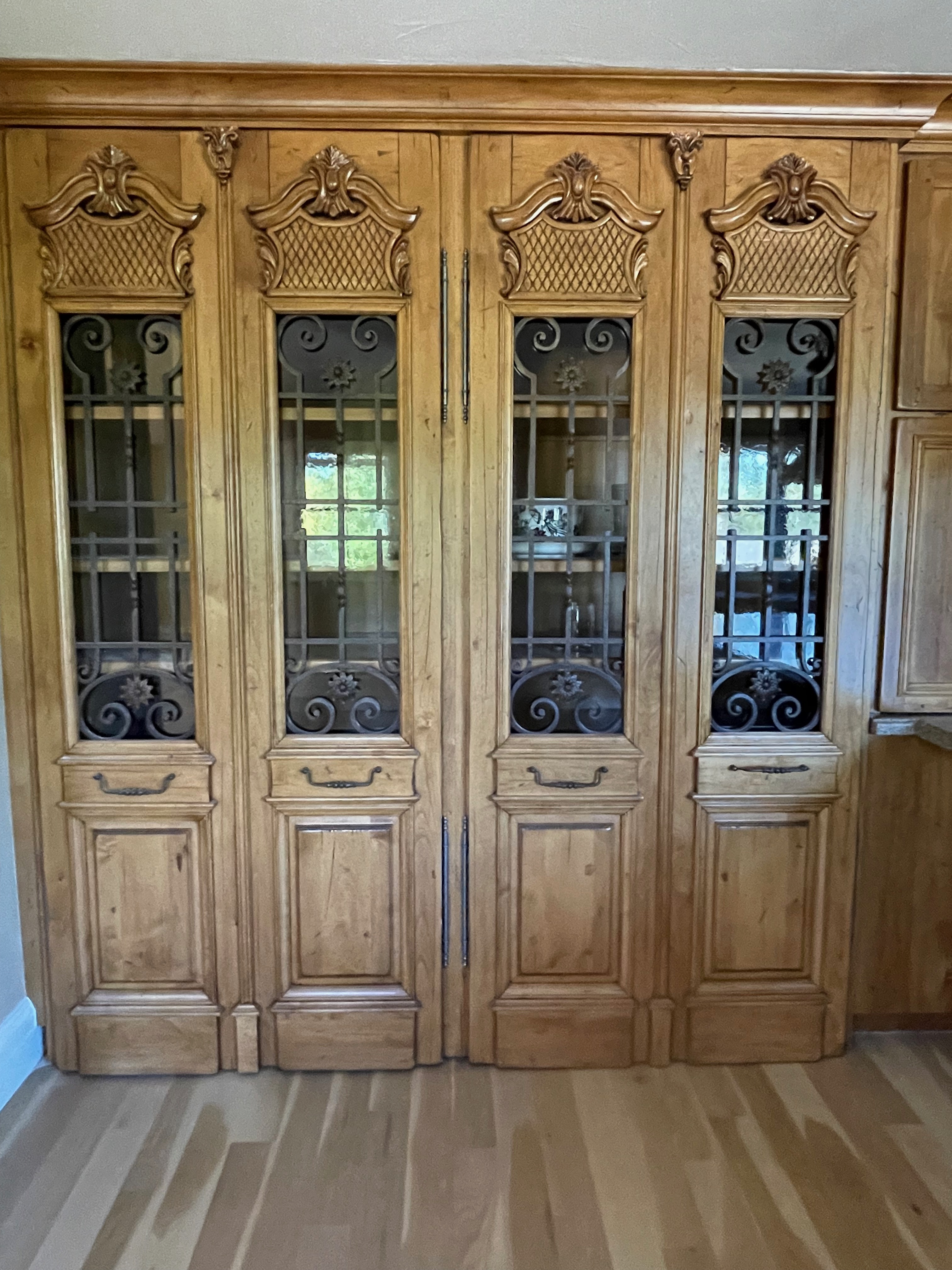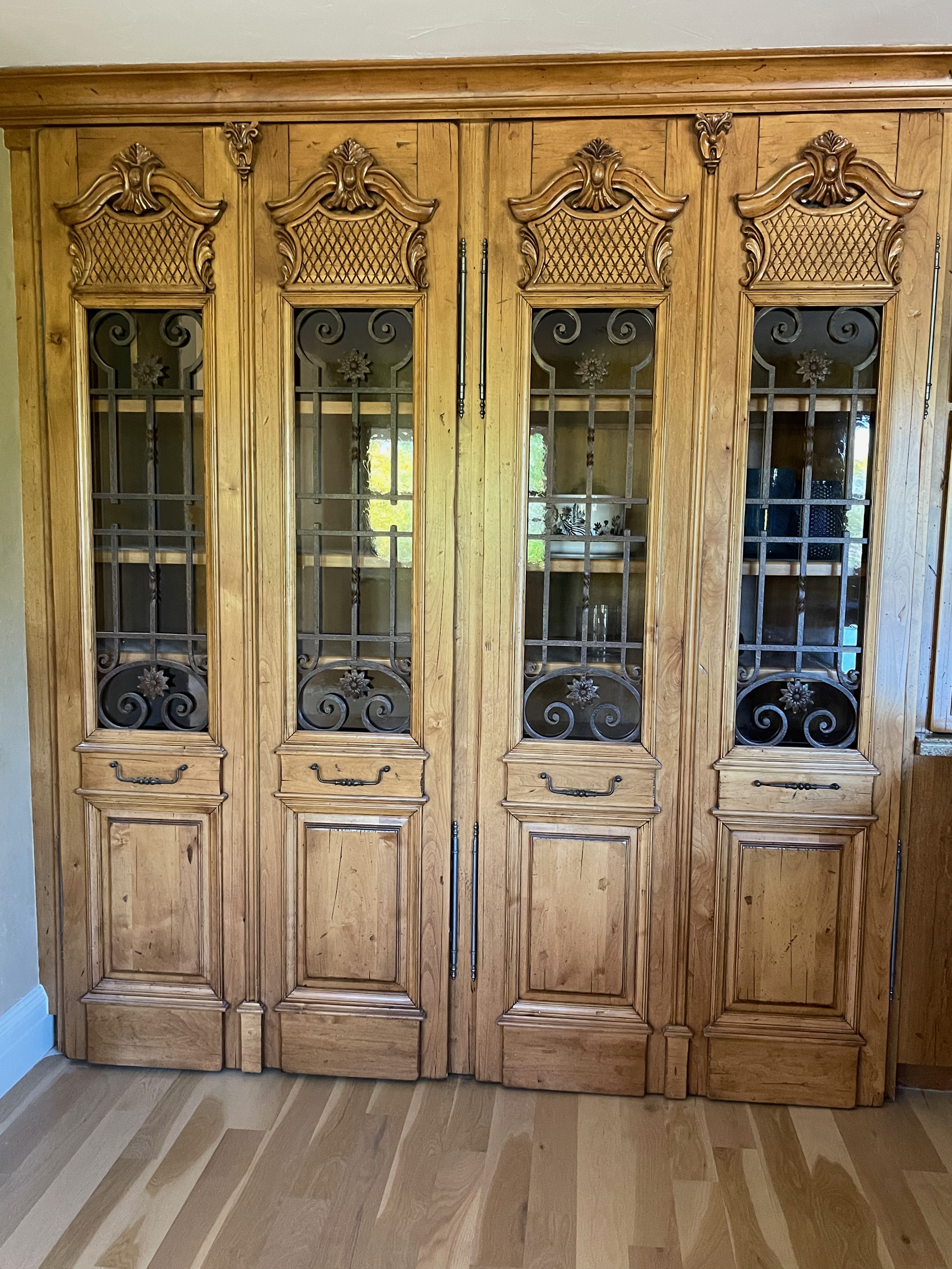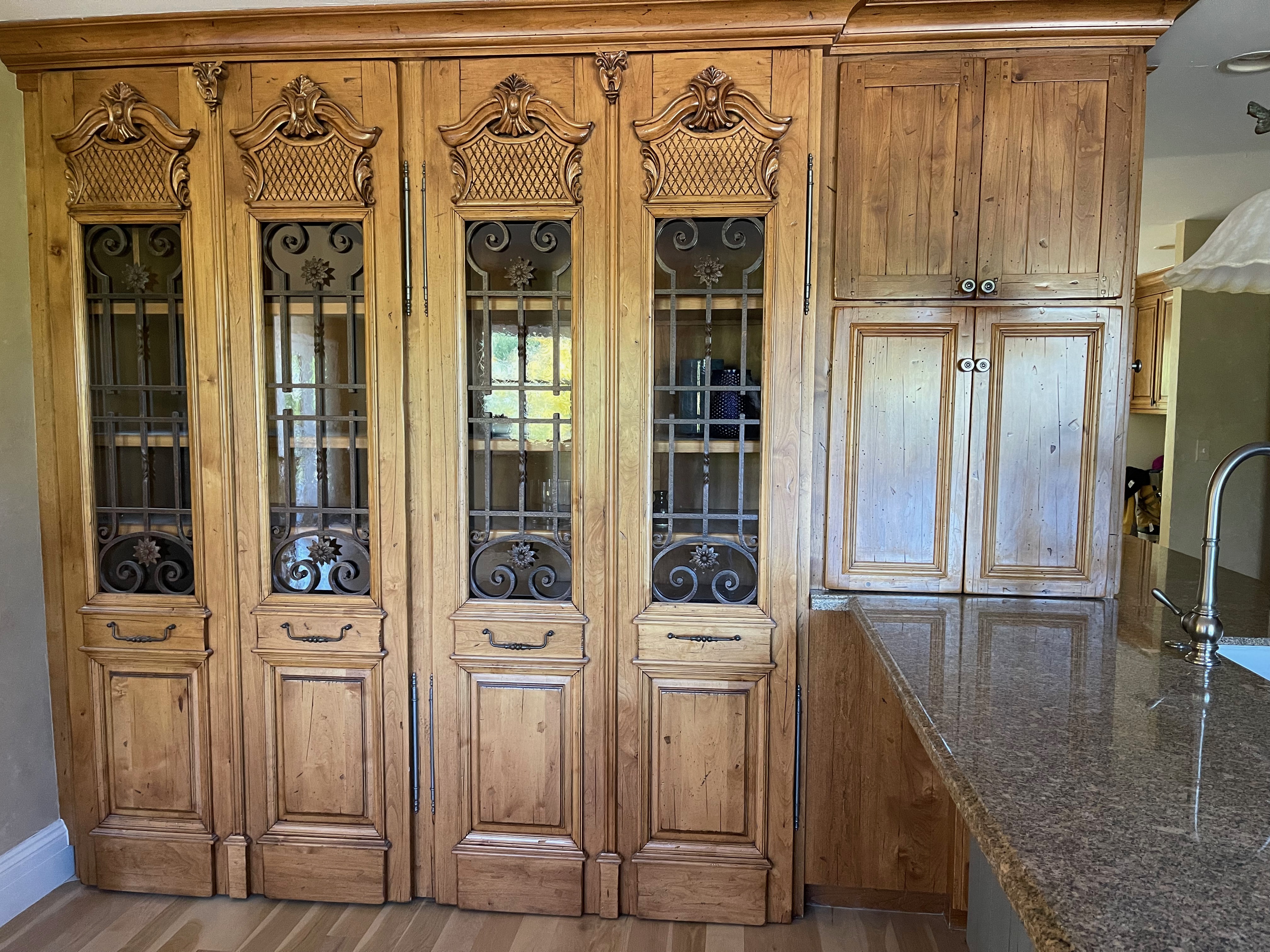 2-Two door glass front pantry cabinets Dim.:42”w x 91”h cabinet only/95”h w/ crown x 24”d