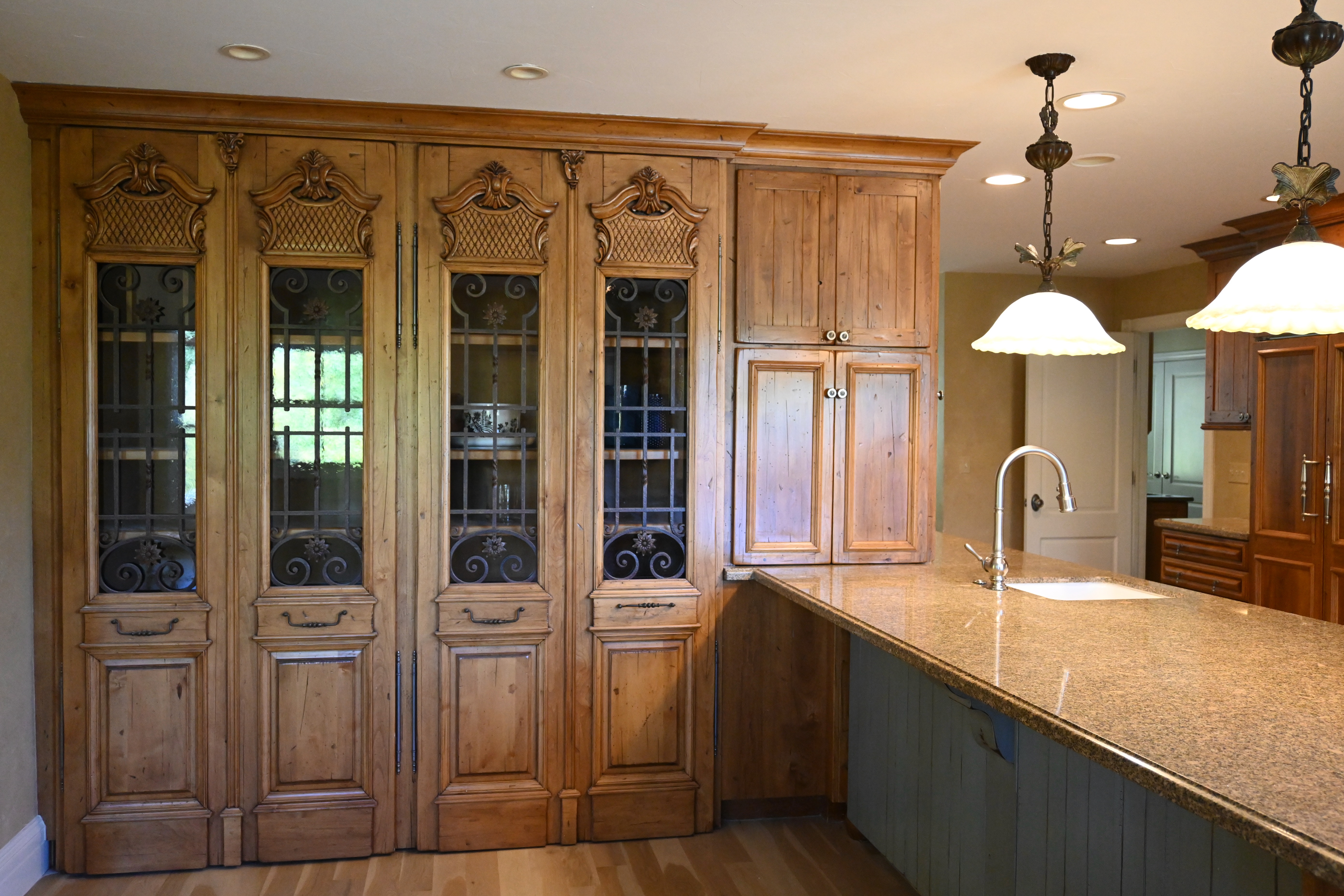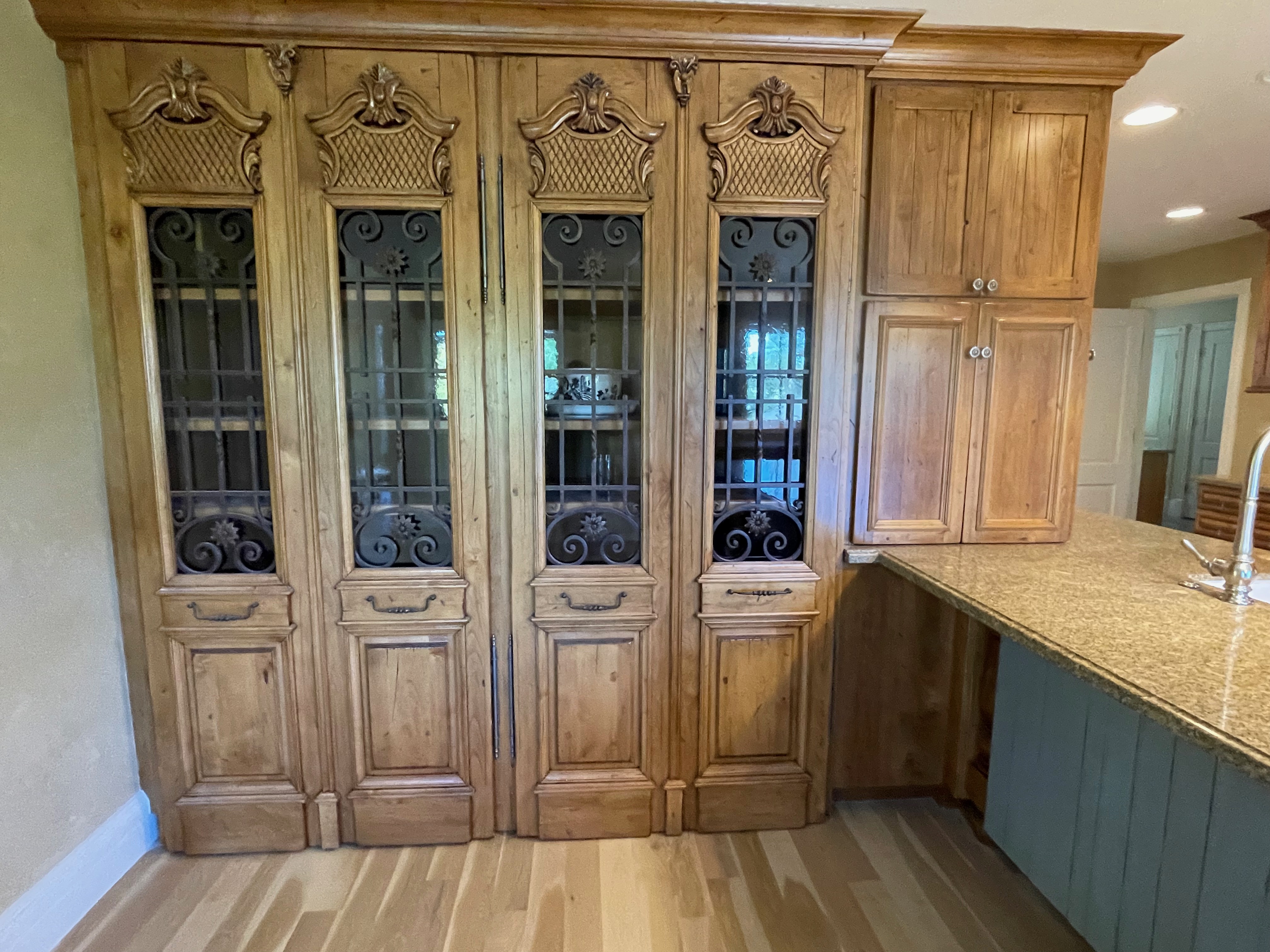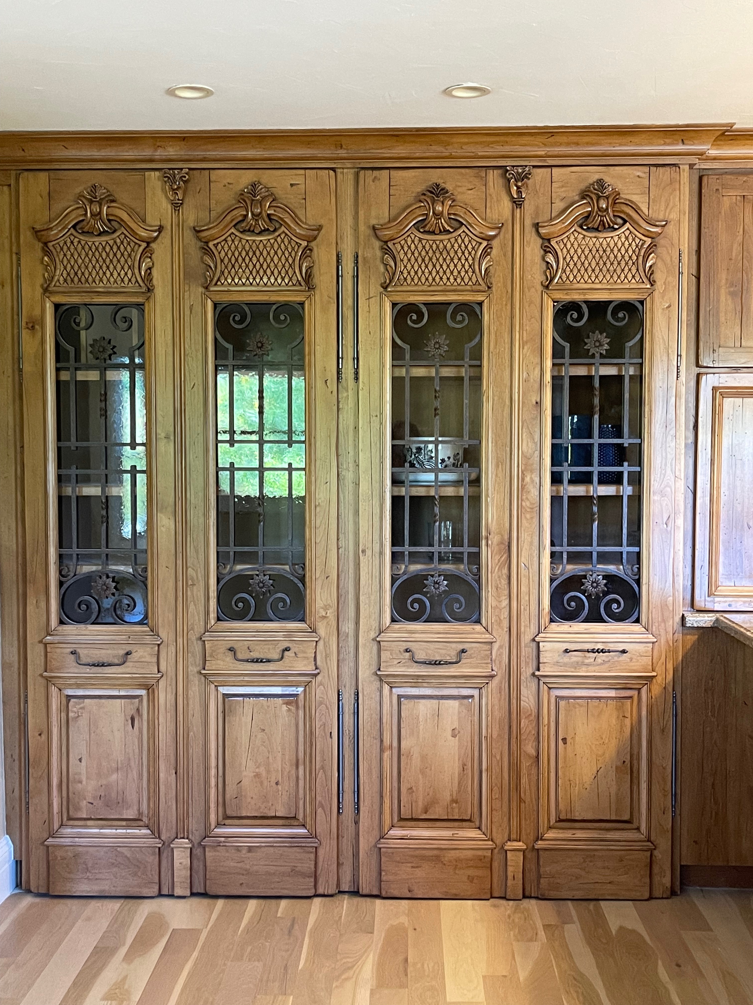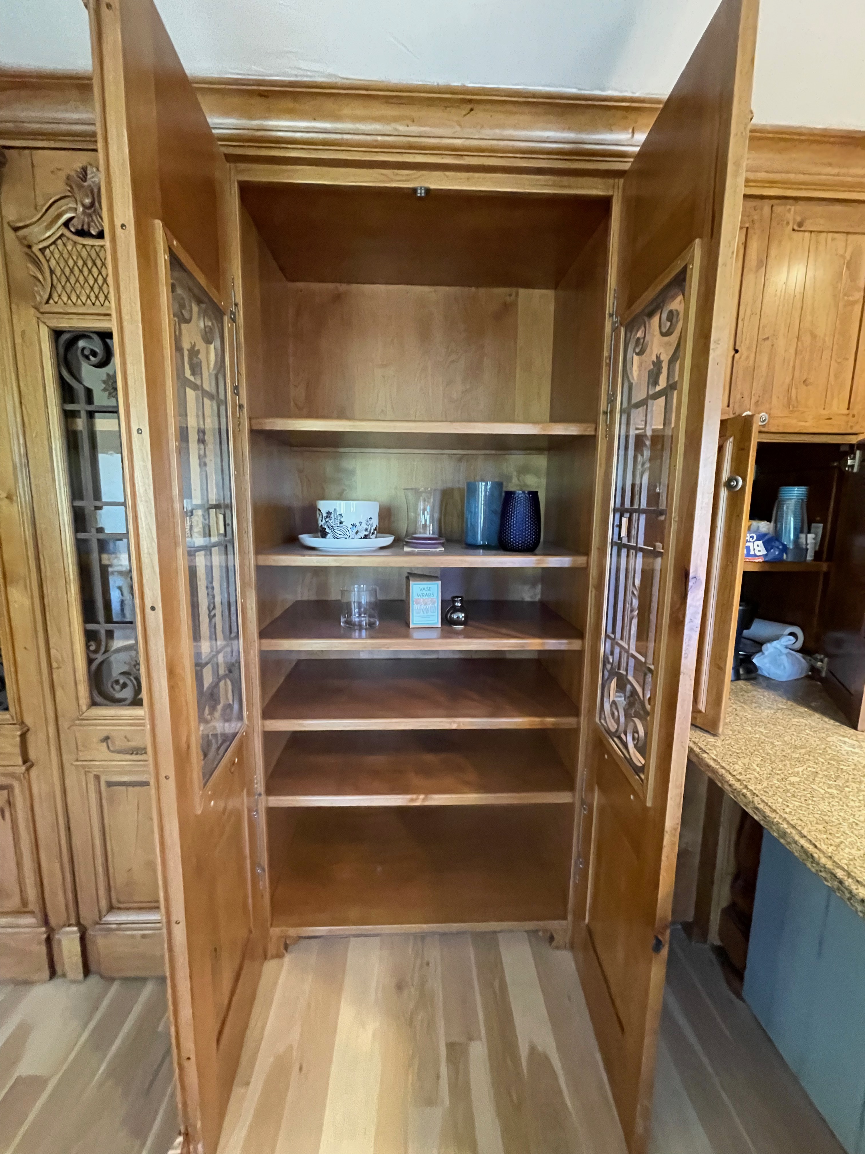 2-Two door glass front pantry cabinets Dim.:42”w x 91”h cabinet only/95”h w/ crown x 24”d
