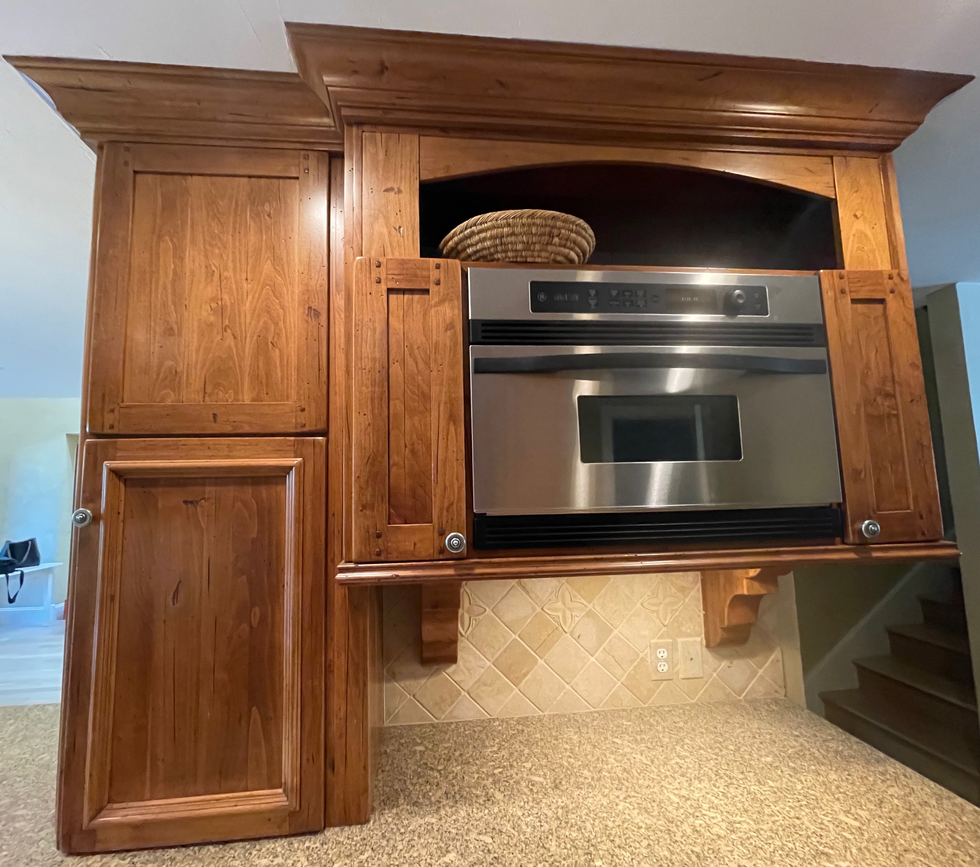 1-Five door counter cabinet w/ appliance garage Dim.:32”w x 55”h cab. only/60”h w/ crown x 24”d