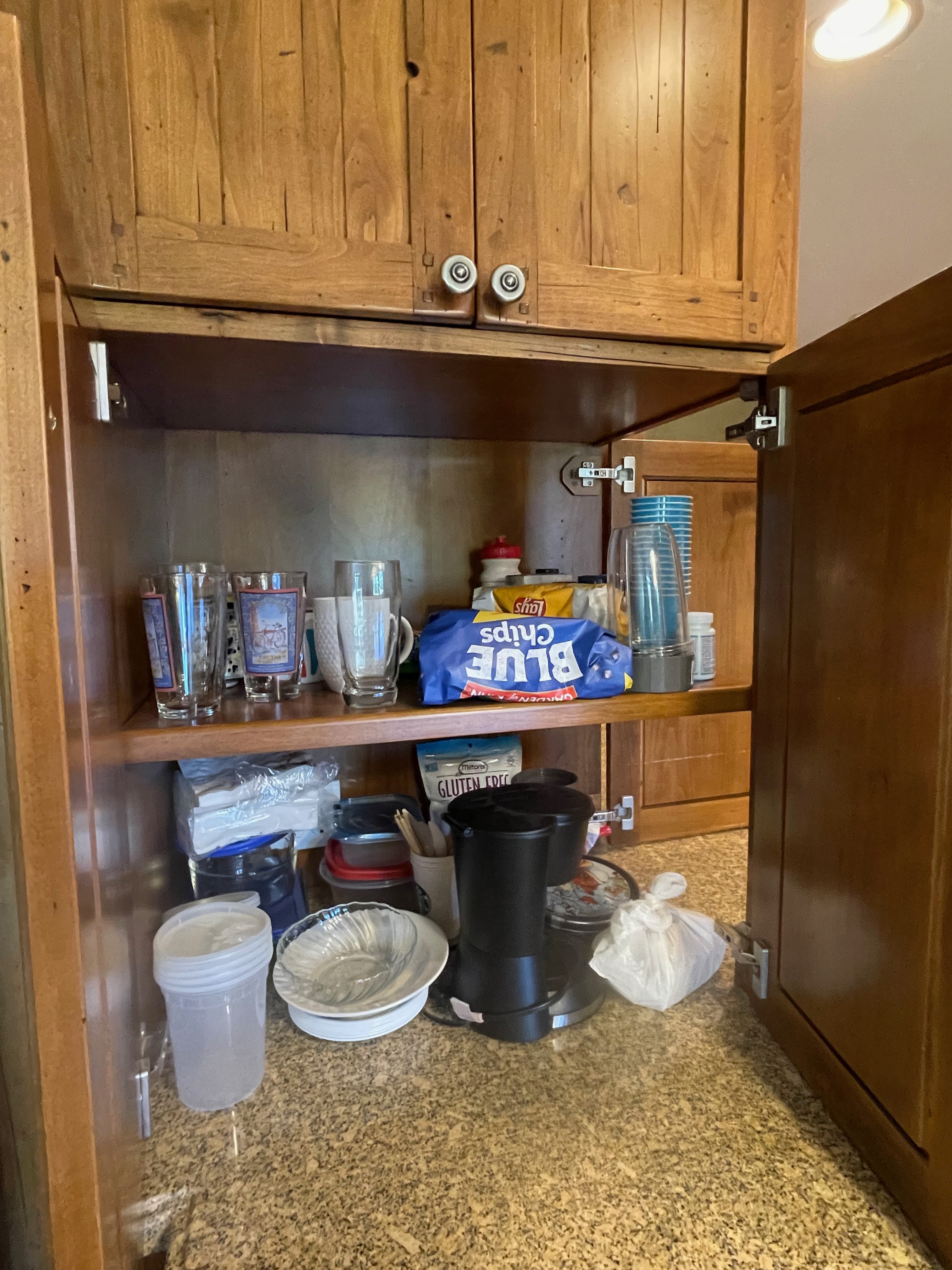 1-One drawer, two door base cabinet on the peninsula, under microwave