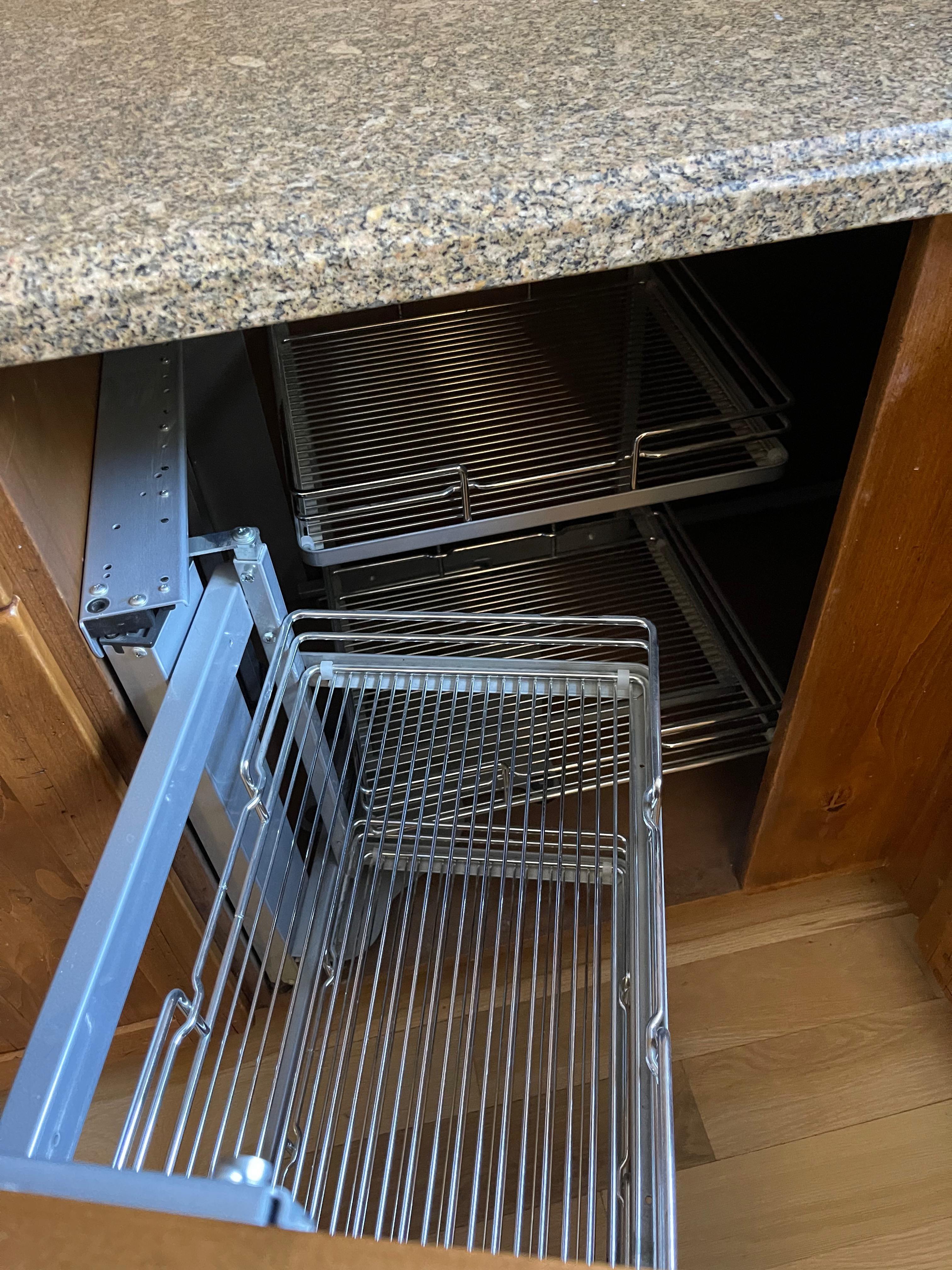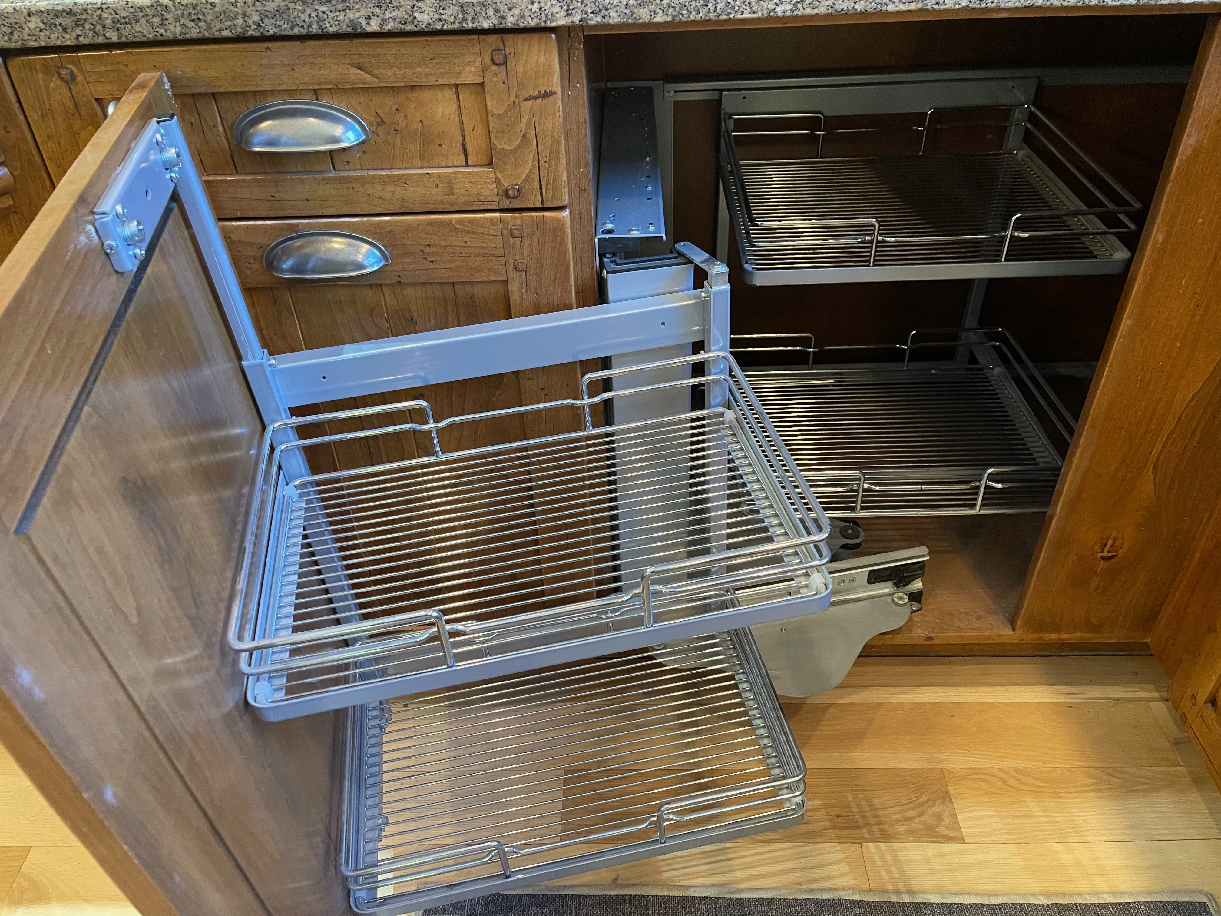 1-One door blind corner cabinet base cabinet on refrigerator wall w/ pull out Hafele shelving Dim.:46”w x 36”h x 24”d