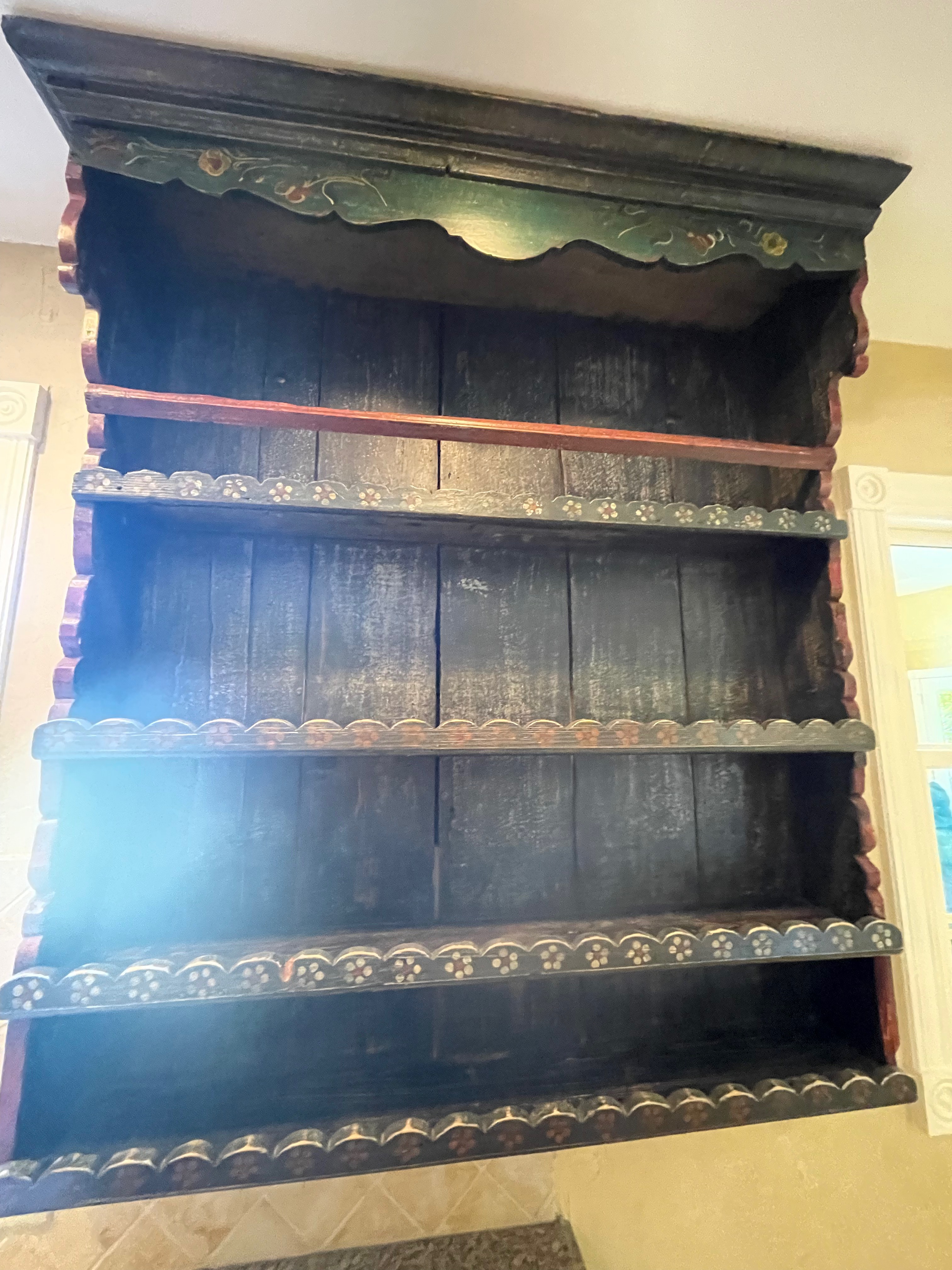 *Antique black wood plate rack (wall) 44”w x 51”h x 6”d
