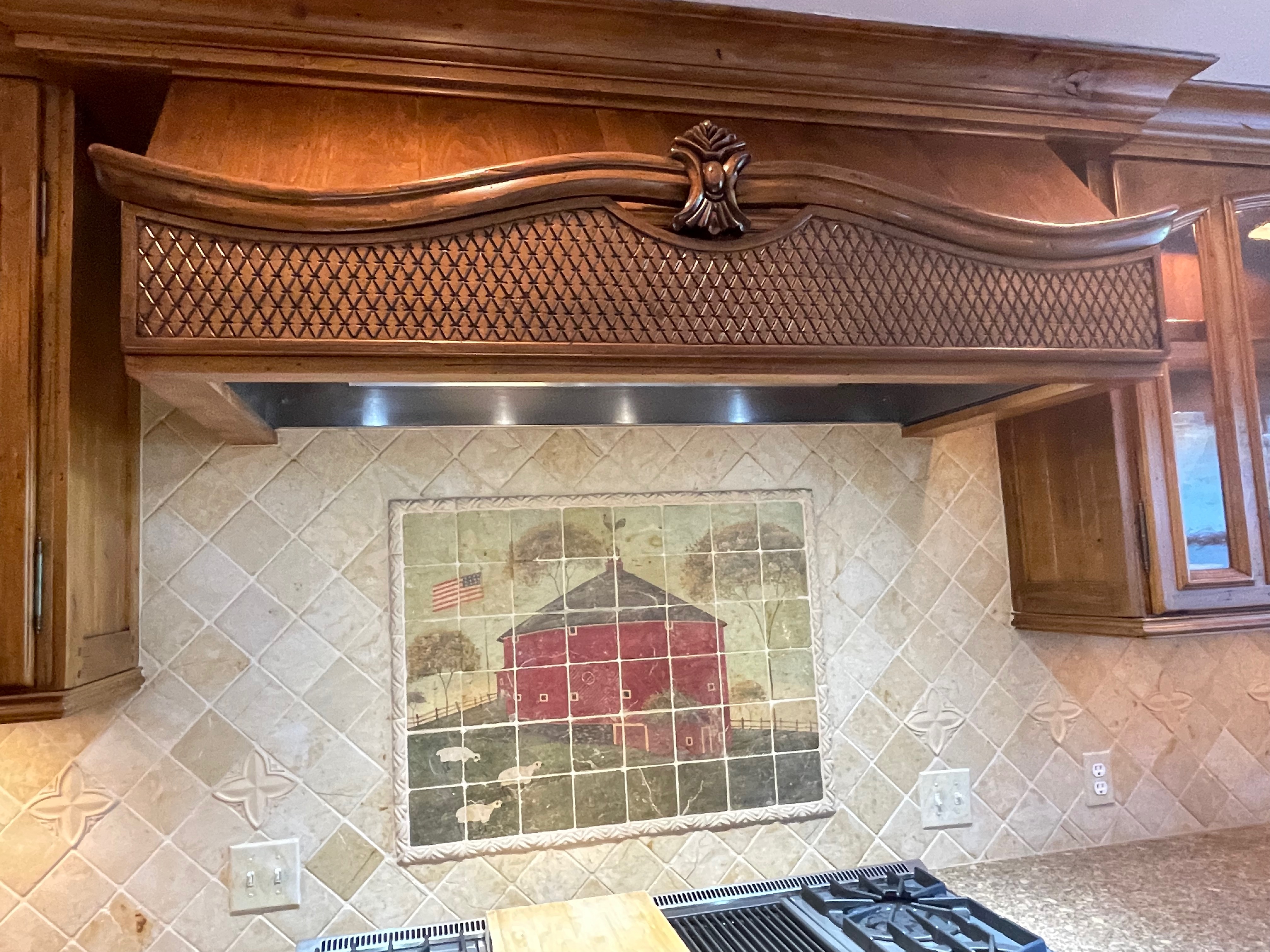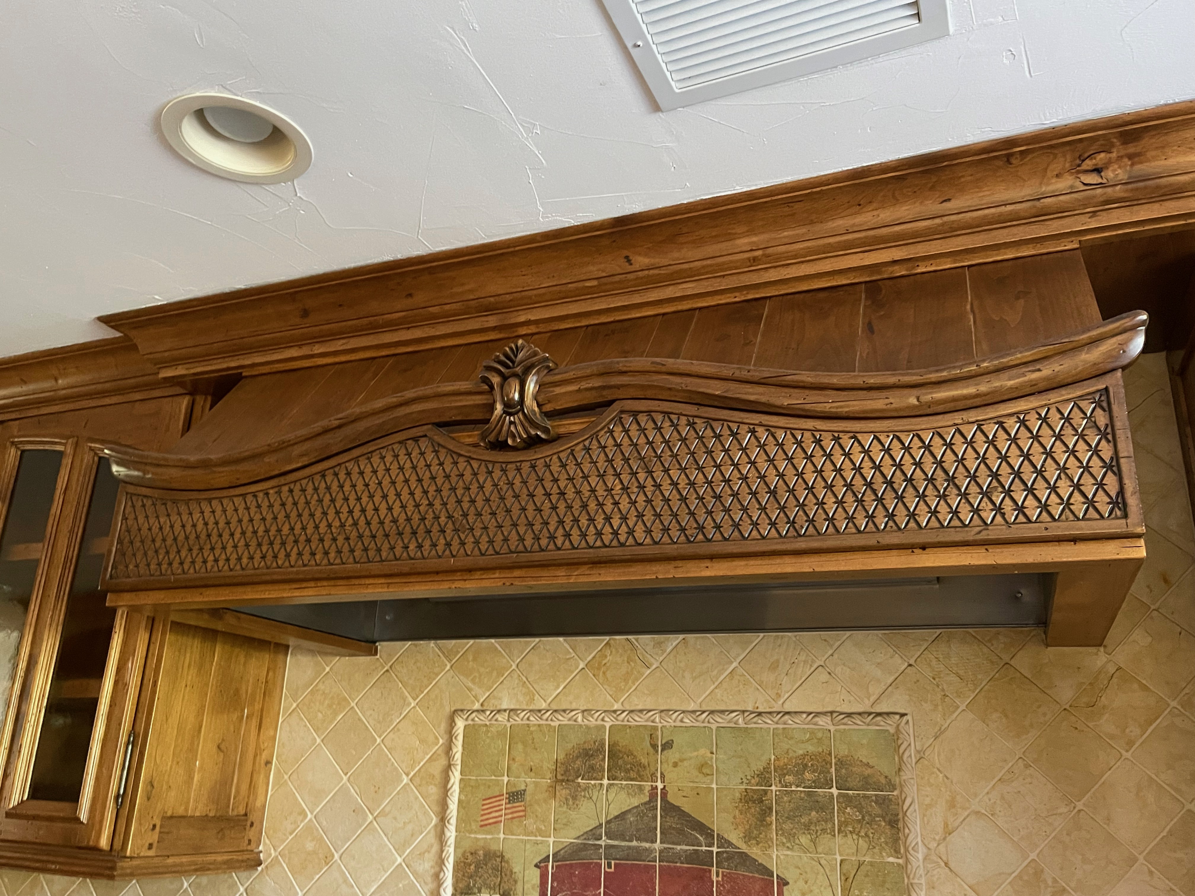 *Decorative wood hood Dim.: 57”w x 19 1/2”h/24”h with crown x 25 ½”d