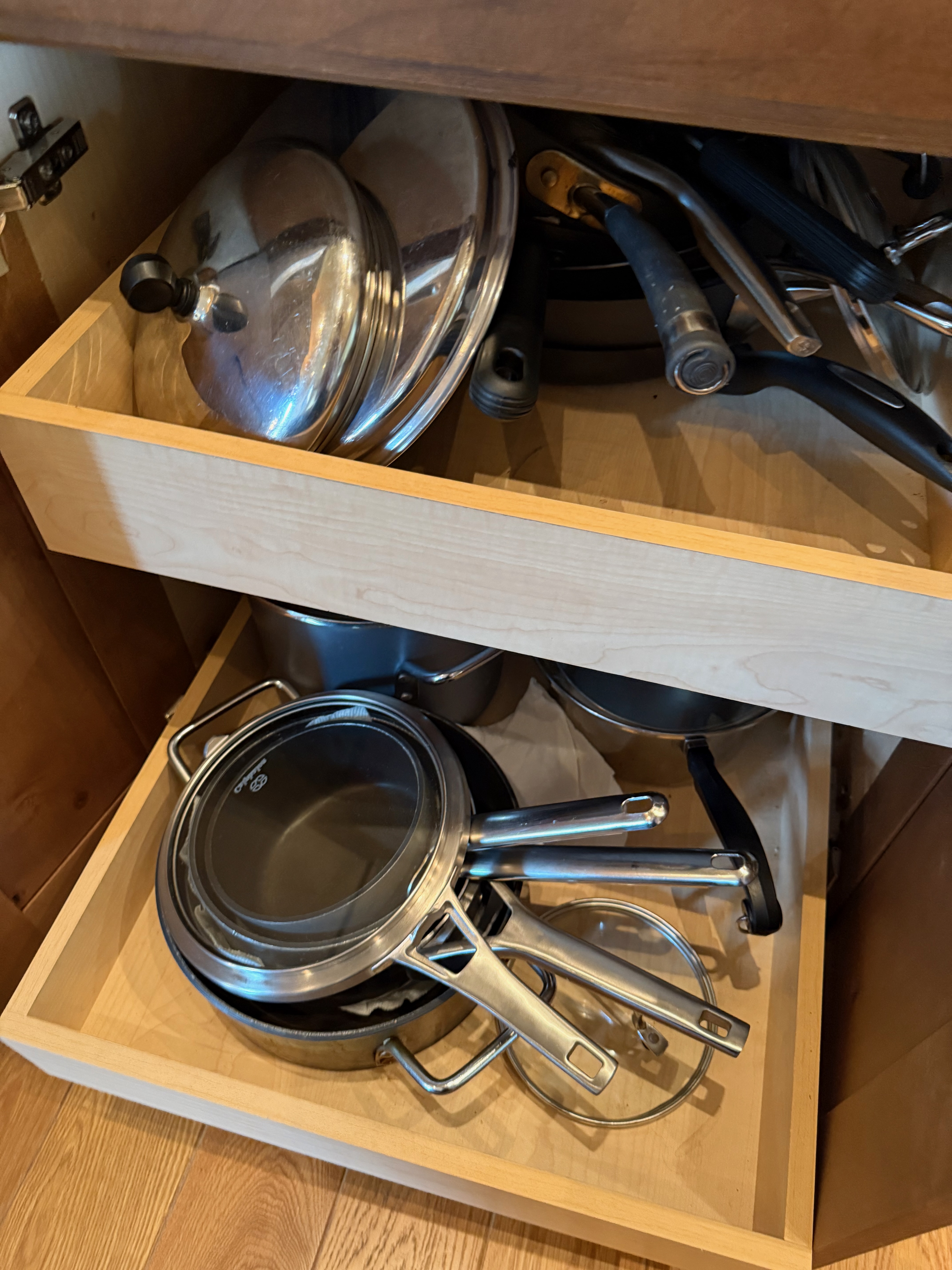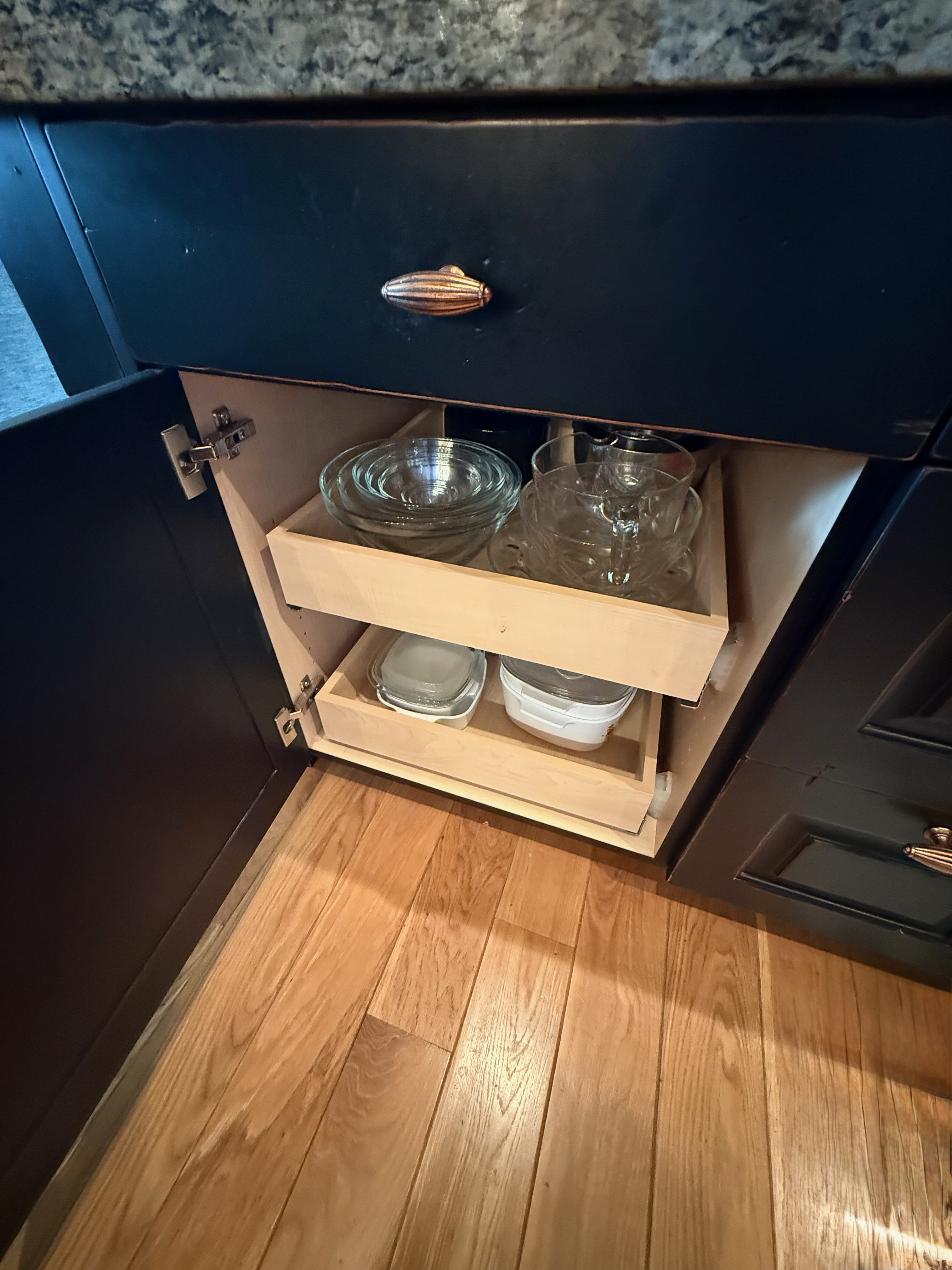 2-One drawer, Two door base cabinets,2 pull-out drawers inside Dim.: 24” w x 34 ½”h/37”h x 24” d