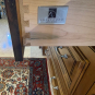 1-One door angled wall desk cabinet in Alder wood Dim.: 15“w x 36”h cabinet only/39 ½” w/crown/41 ¼”h w/base trim x 12” d