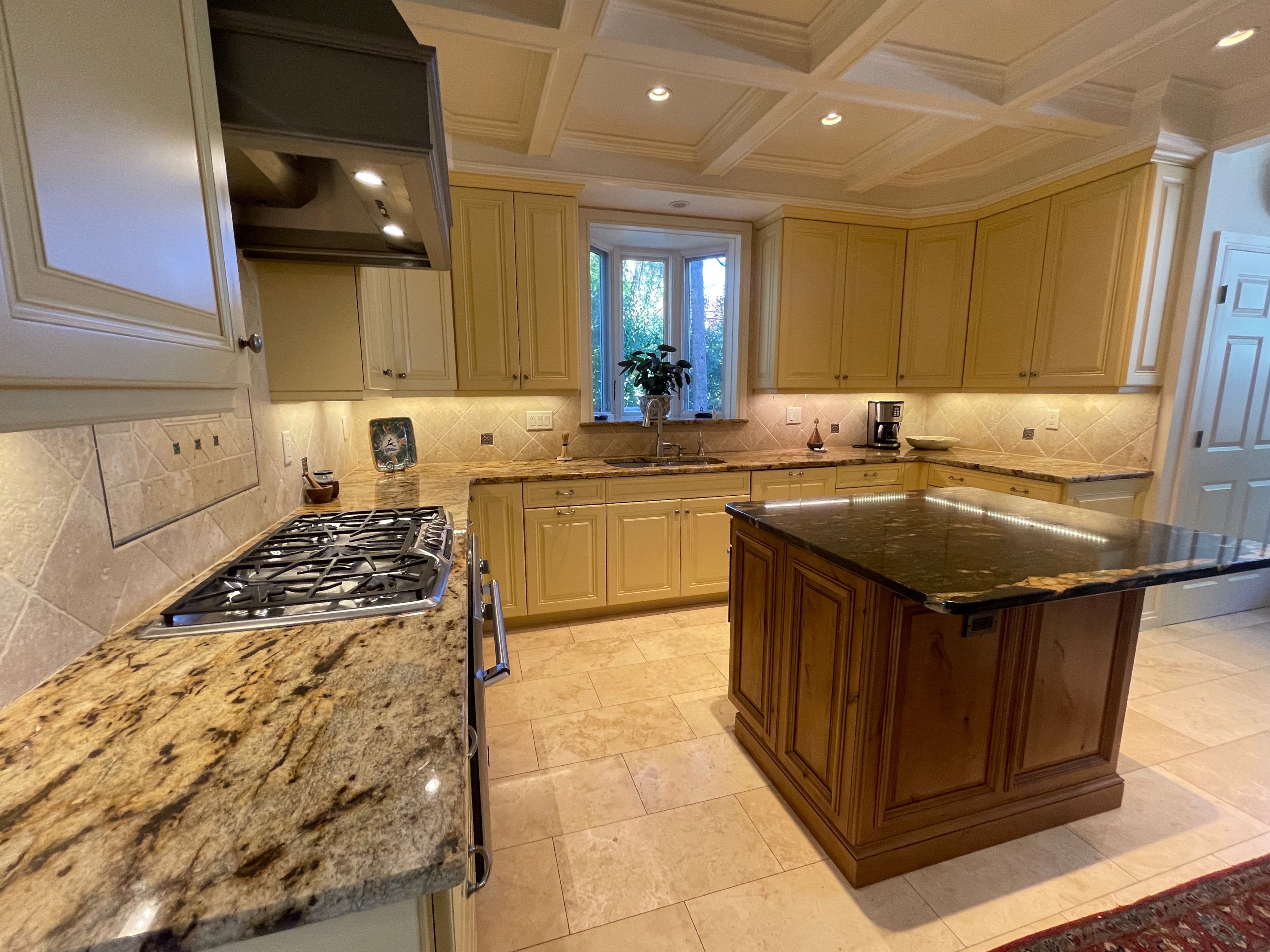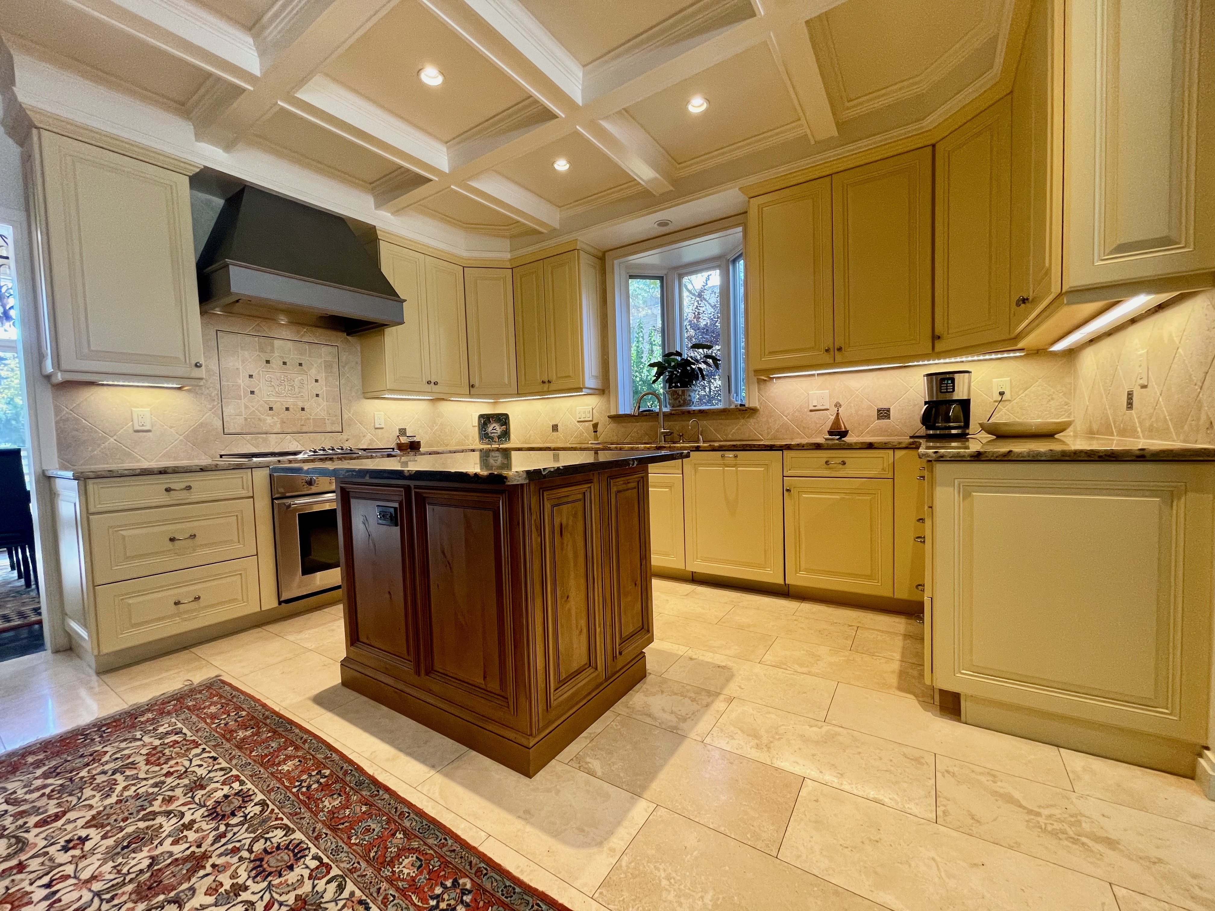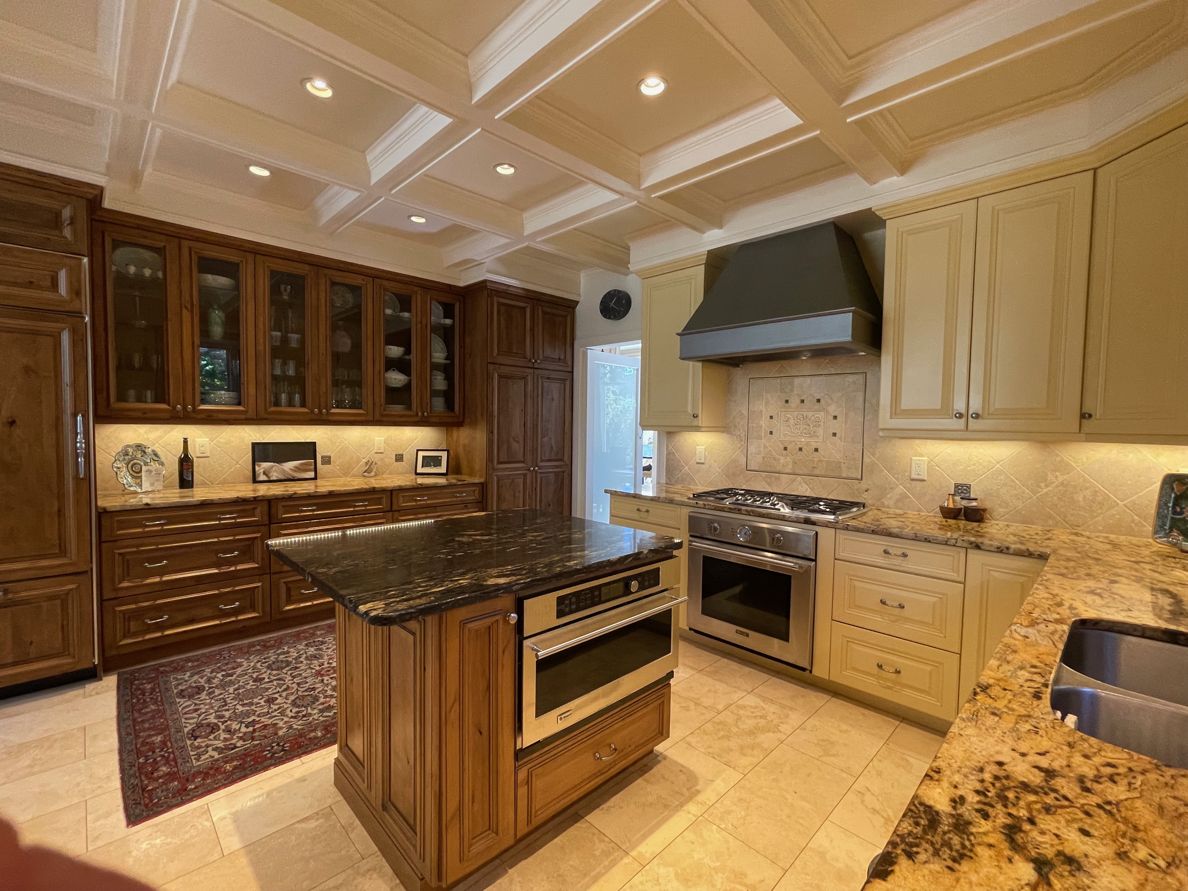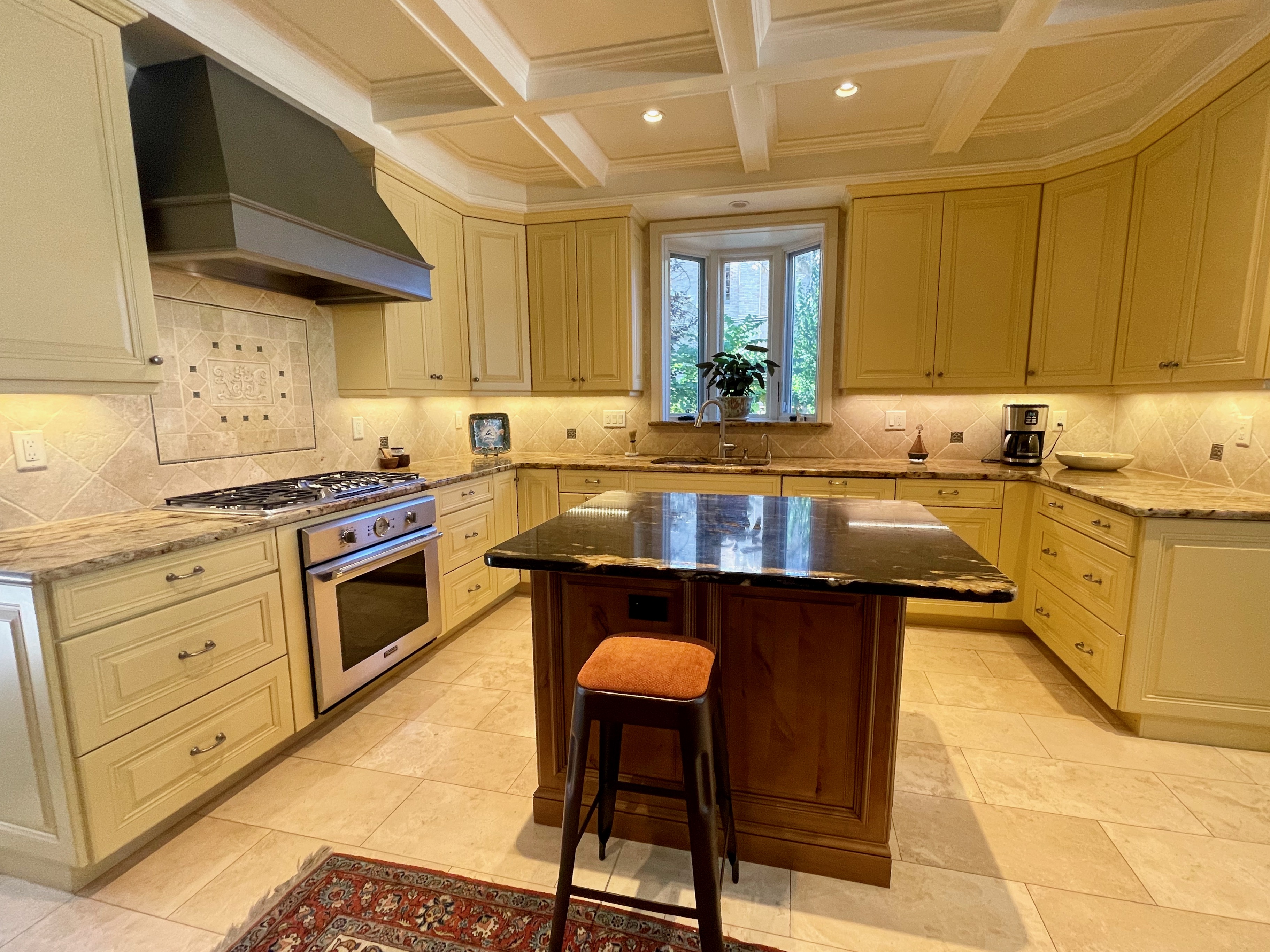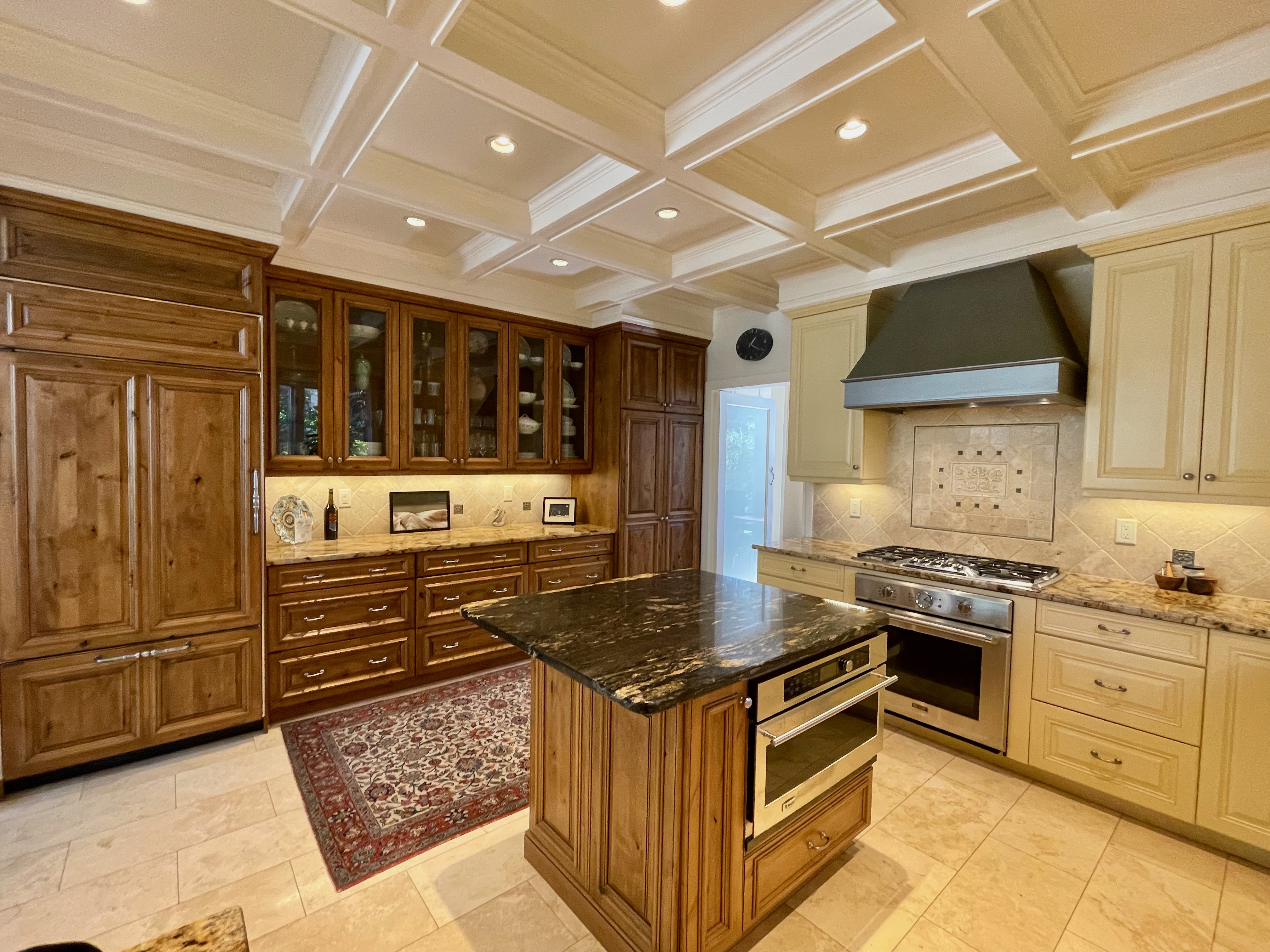 Classic Crestwood Kitchen with Knotty Alder wood and contrasting cream cabinetry. The cabinet drawers are soft-close and dovetail. The kitchen has a Sub-Zero Refrigerator and Thermador Stainless Steel appliances. The cabinets have high-end plywood boxes, soft close and dovetail drawers. This is a beautiful classic set. The lighting in the house made some of the perimeter wall cabinets look yellow but they are a nice cream color in natural light outside in the last few photos. Must see in person! The kitchen has been professionally removed to storage and is ready for pick up! Price for the package below.