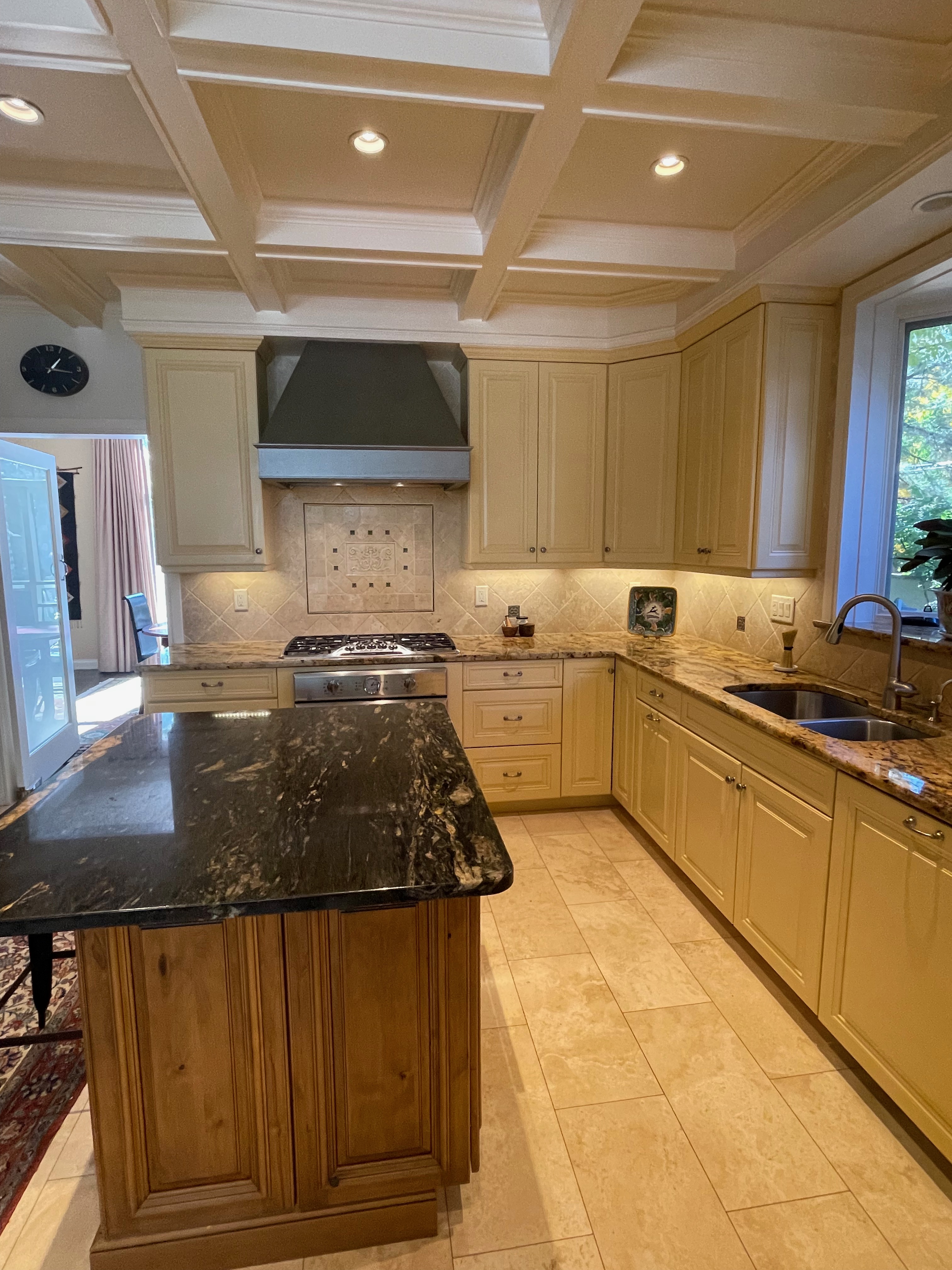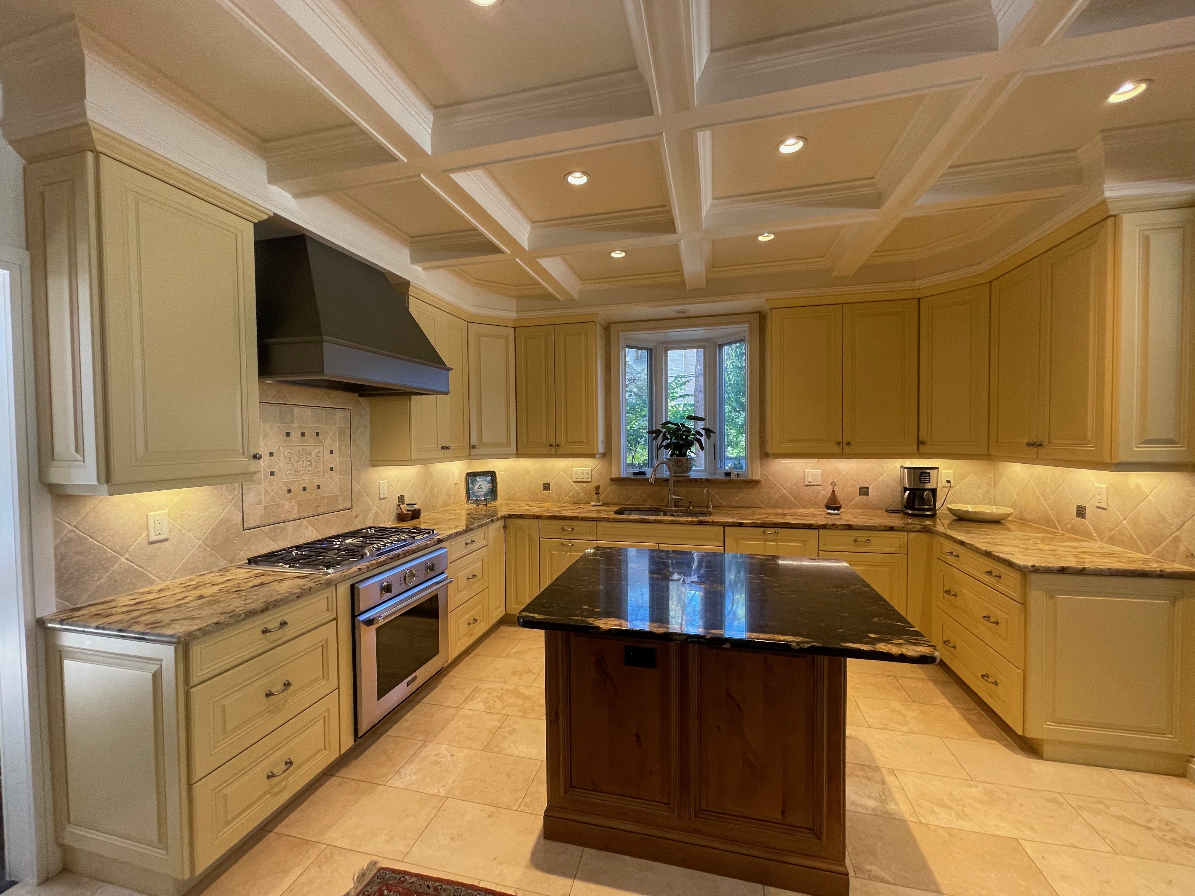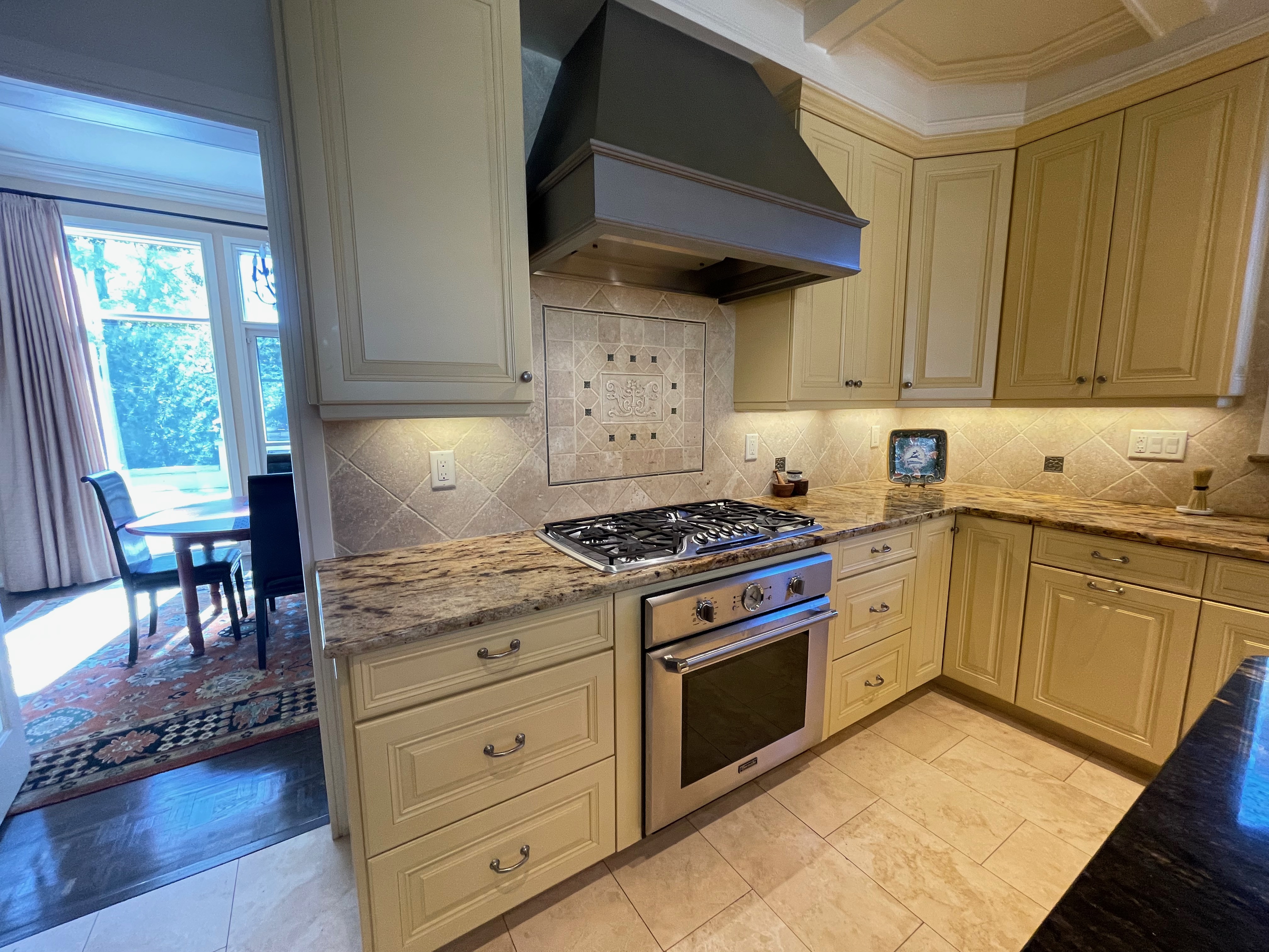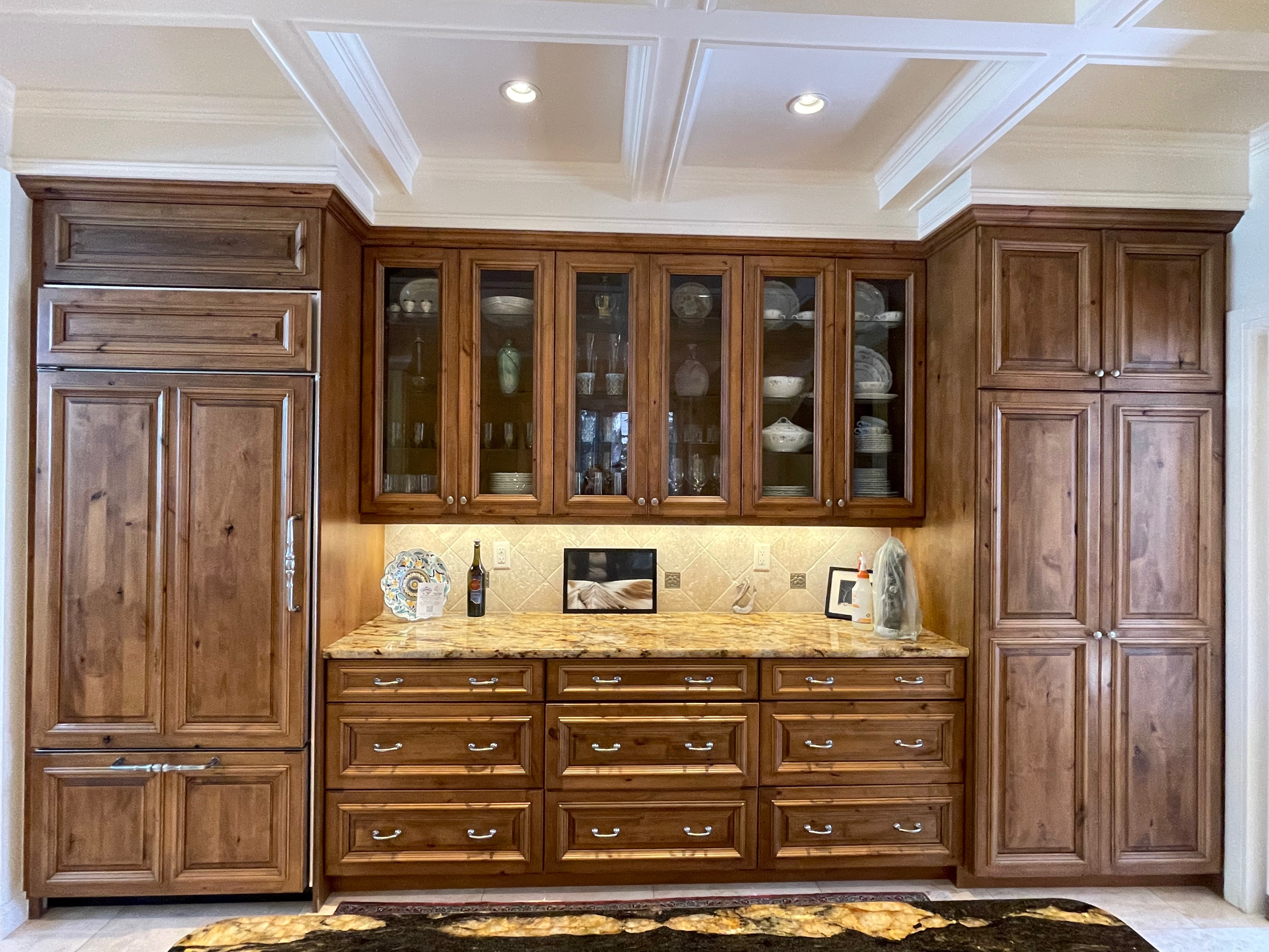 Classic Crestwood Kitchen with Knotty Alder wood and contrasting cream cabinetry. The cabinet drawers are soft-close and dovetail. The kitchen has a Sub-Zero Refrigerator and Thermador Stainless Steel appliances. The cabinets have high-end plywood boxes, soft close and dovetail drawers. This is a beautiful classic set. The lighting in the house made some of the perimeter wall cabinets look yellow but they are a nice cream color in natural light outside in the last few photos. Must see in person! The kitchen has been professionally removed to storage and is ready for pick up! Price for the package below.
