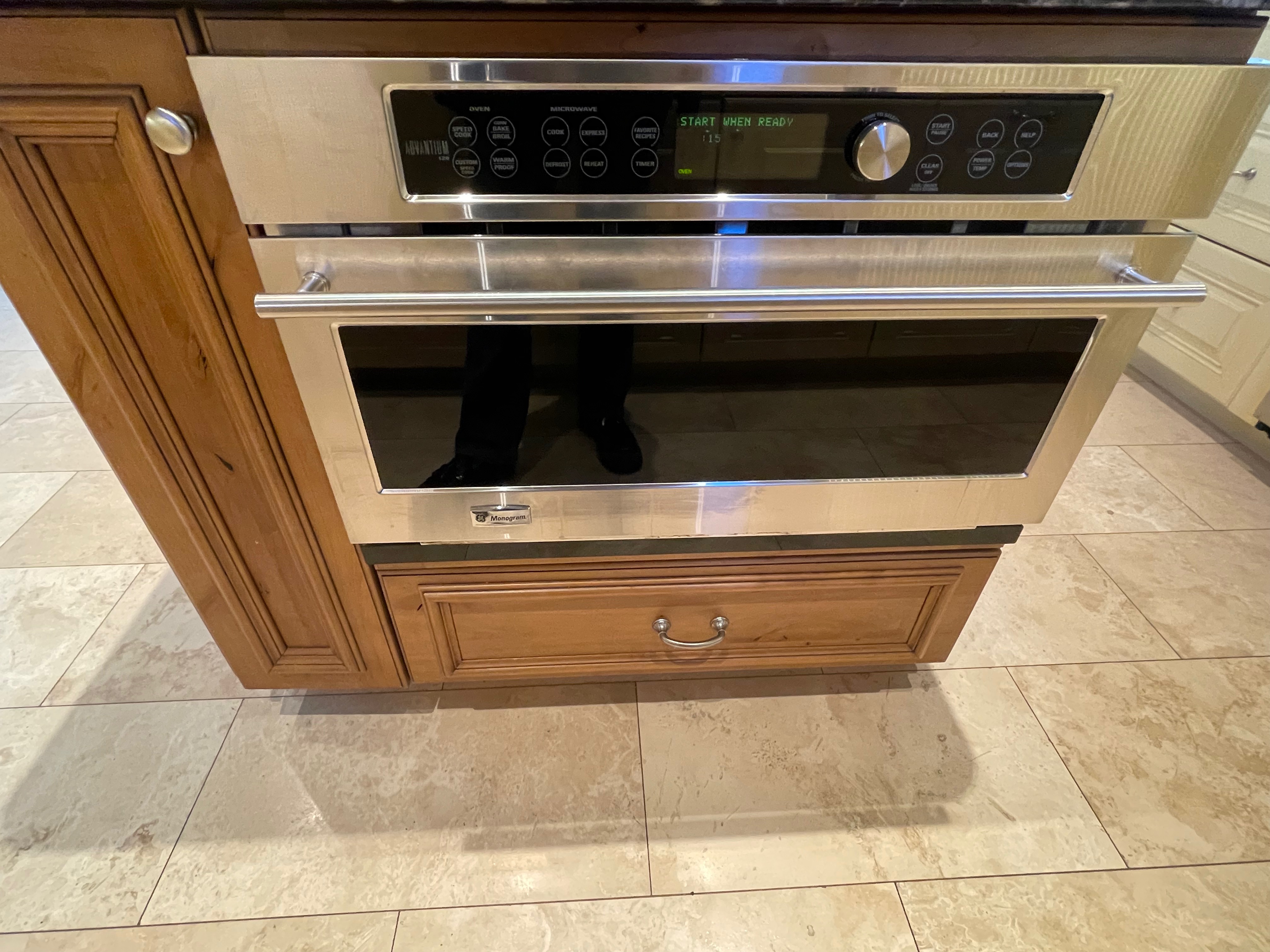 1-One drawer holds the Advantium oven base cabinets in Alder wood Dim.; 30”w x 36”h x 24’d
