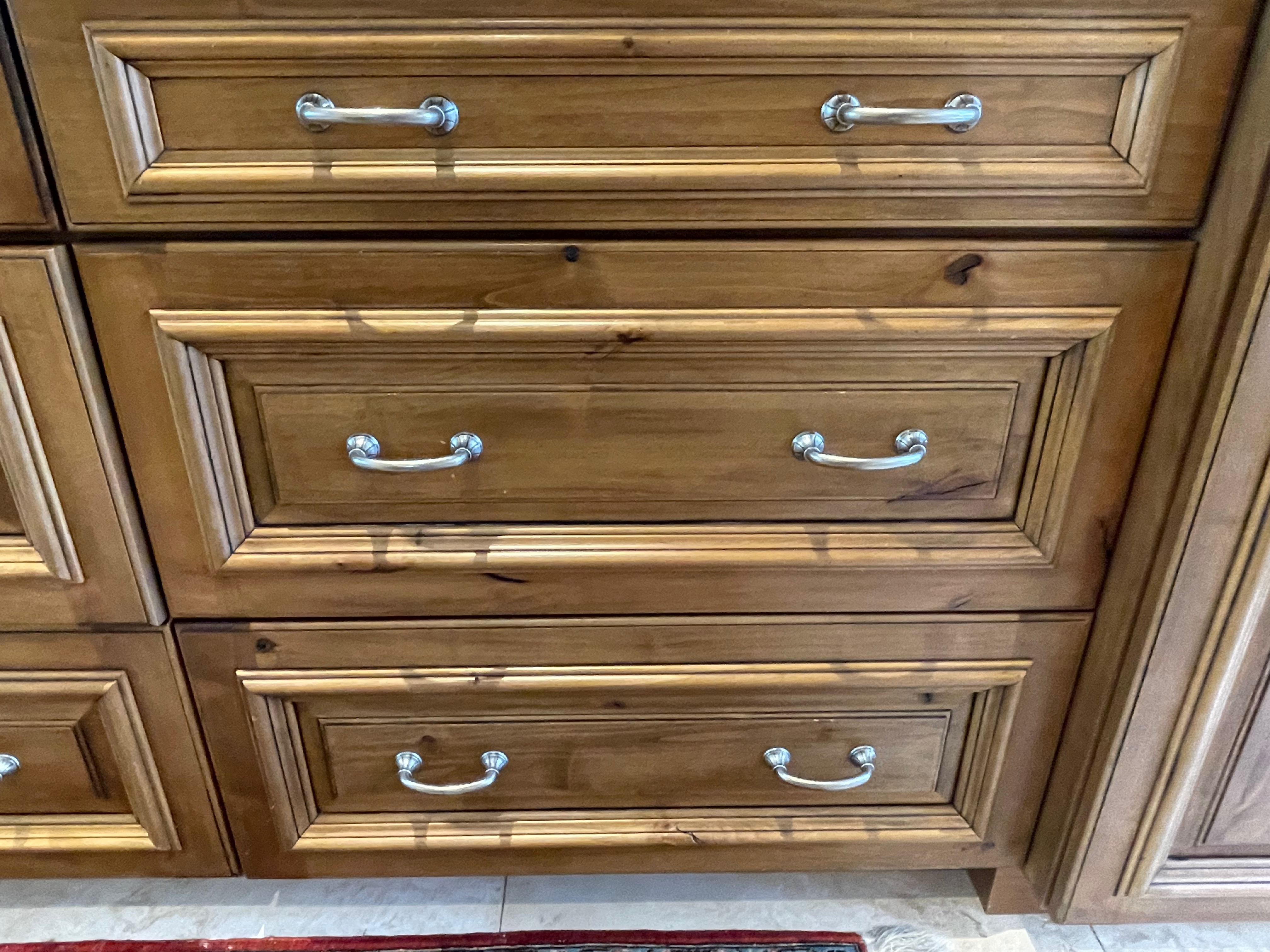 3-Three drawer base cabinet in Alder wood Dim.: 30“w x 36”h x24“d