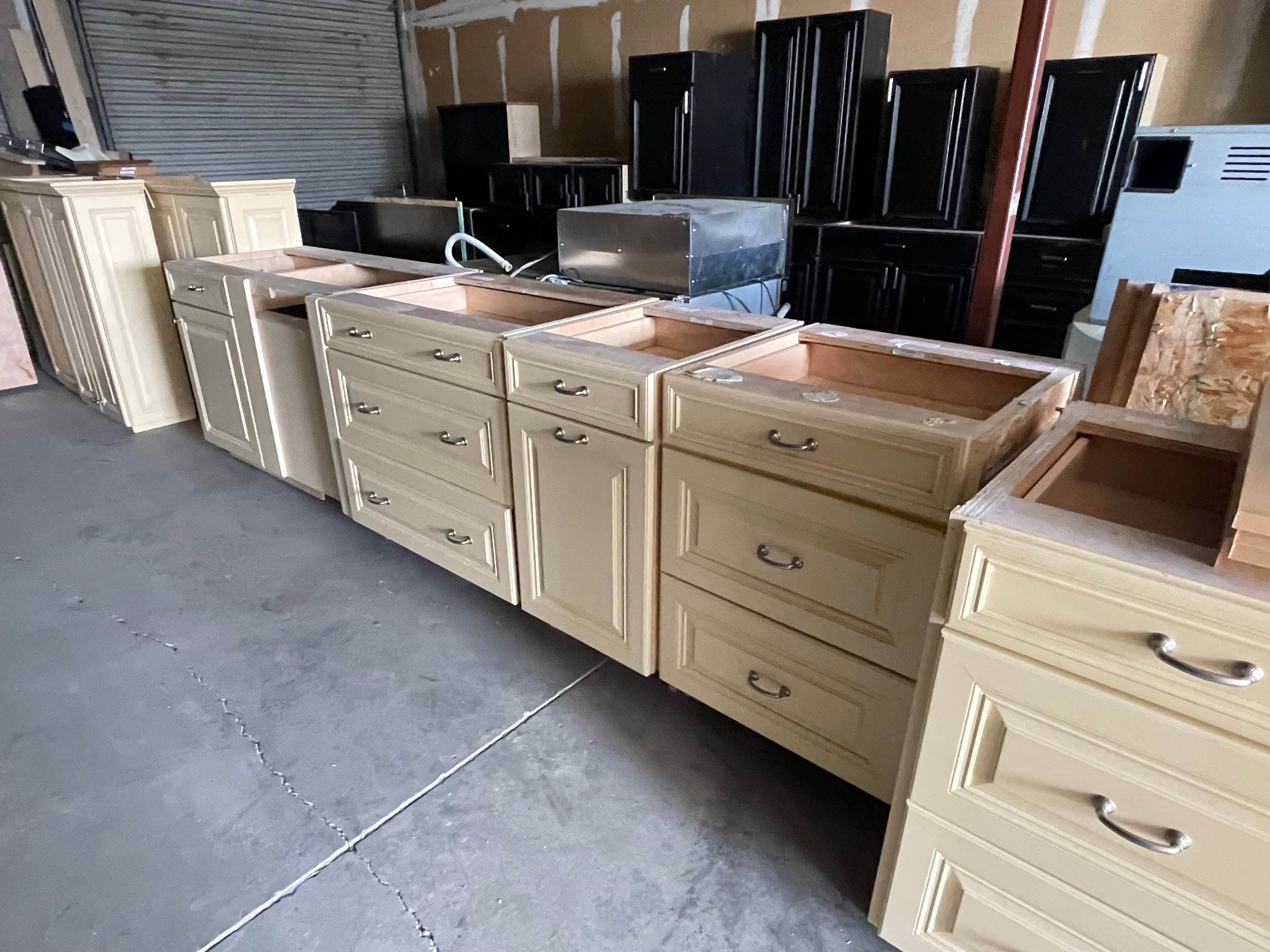 1-Two door sink base cabinet in cream Dim.: 36” w x 36”h x 24“d, 12”, under mount sink 30”w x 16”/18” *Faucet sets, disposal and Insta-hot included