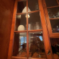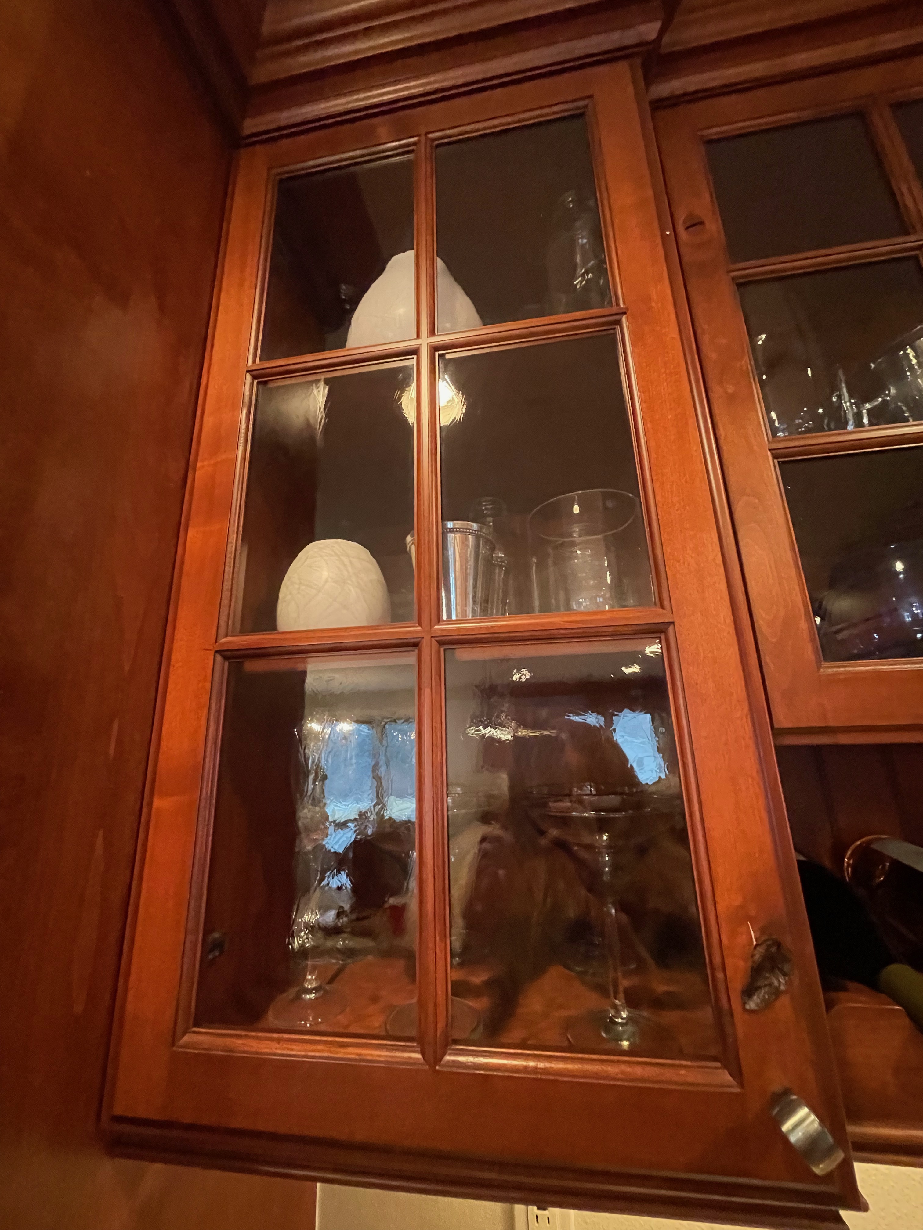 2-One door glass front wall cabinets Dim.: 18”w x 36”cab. only/ 42 ¾”h w/ crown x 13 ½”d