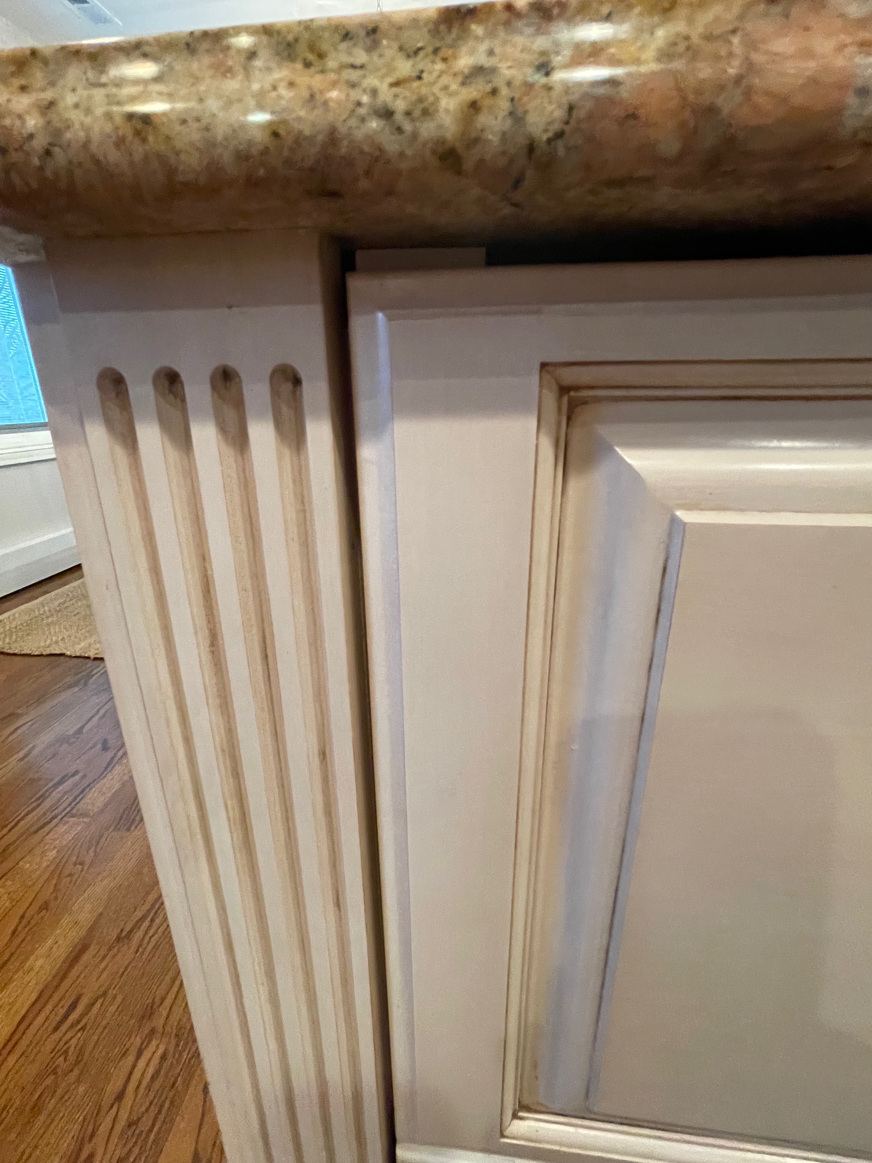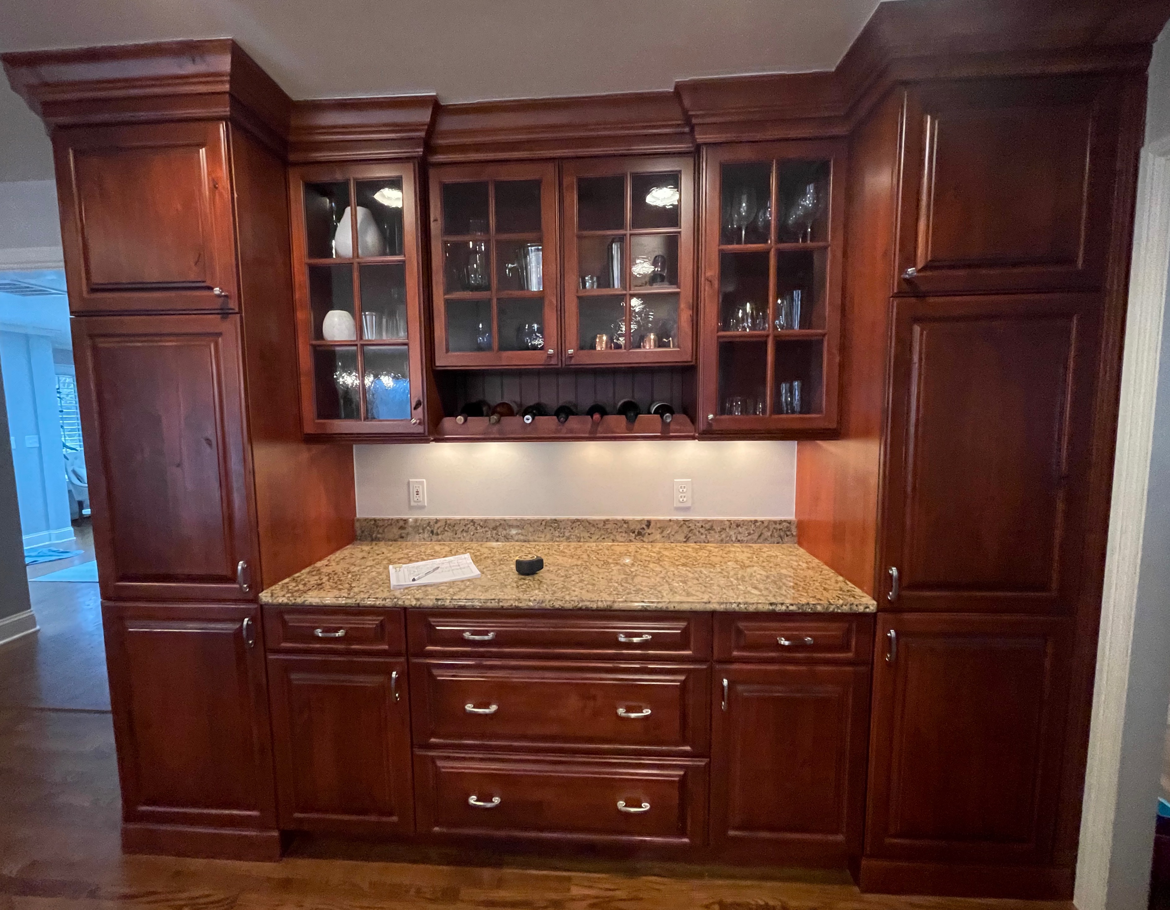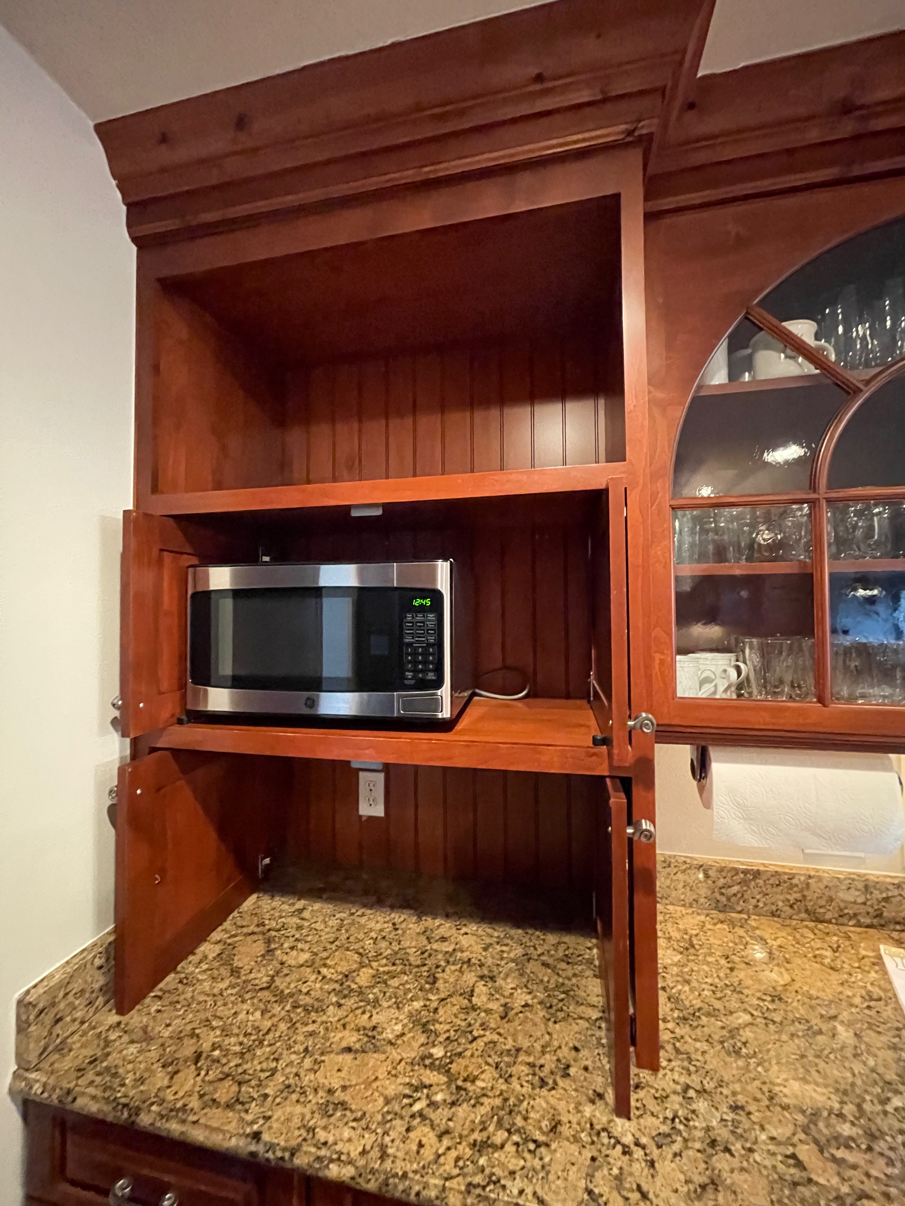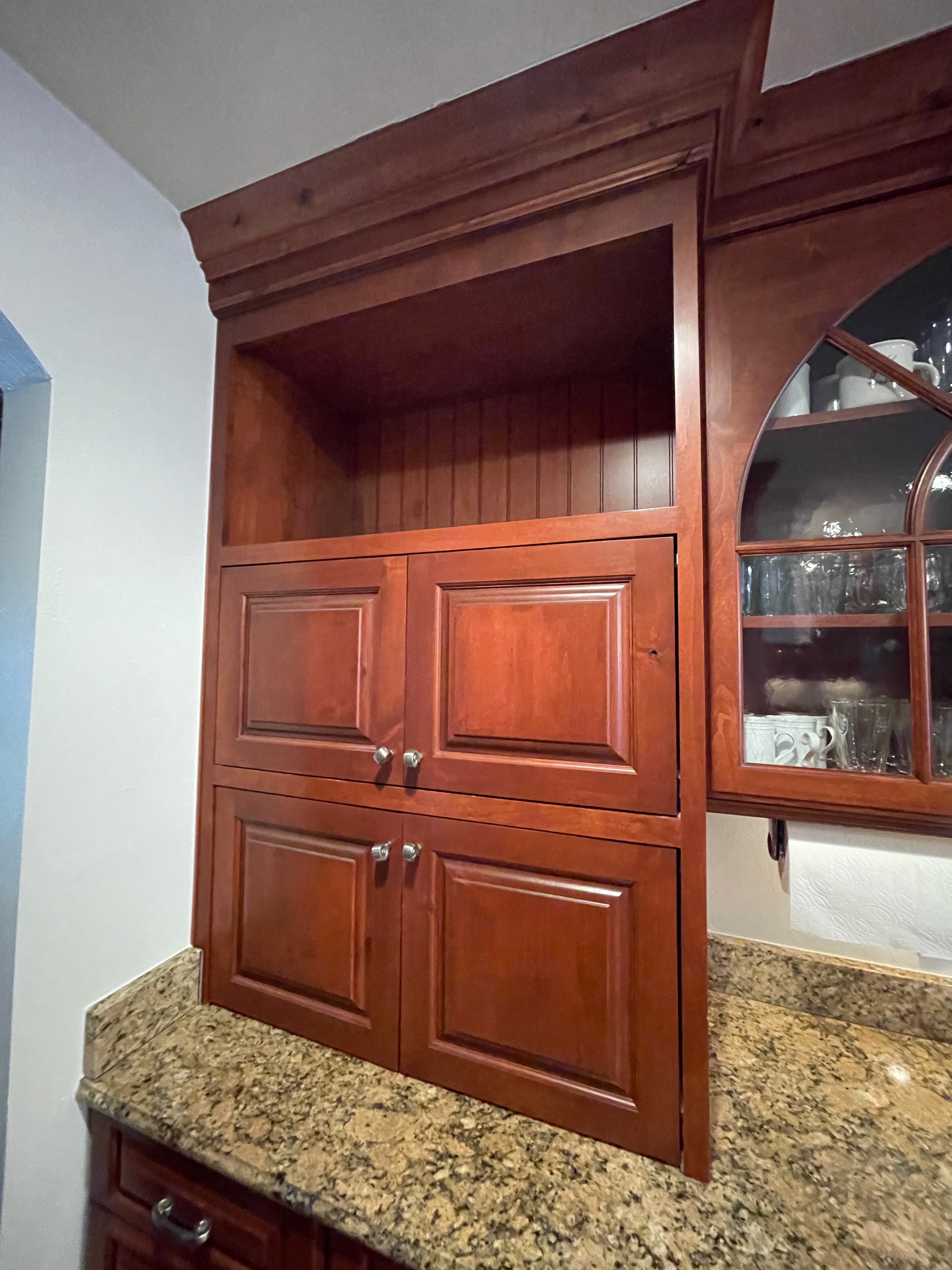1-Four door counter cabinet w/ appliance garage below Dim.:36”w x 54”h/60”h w/ crown x 18”d