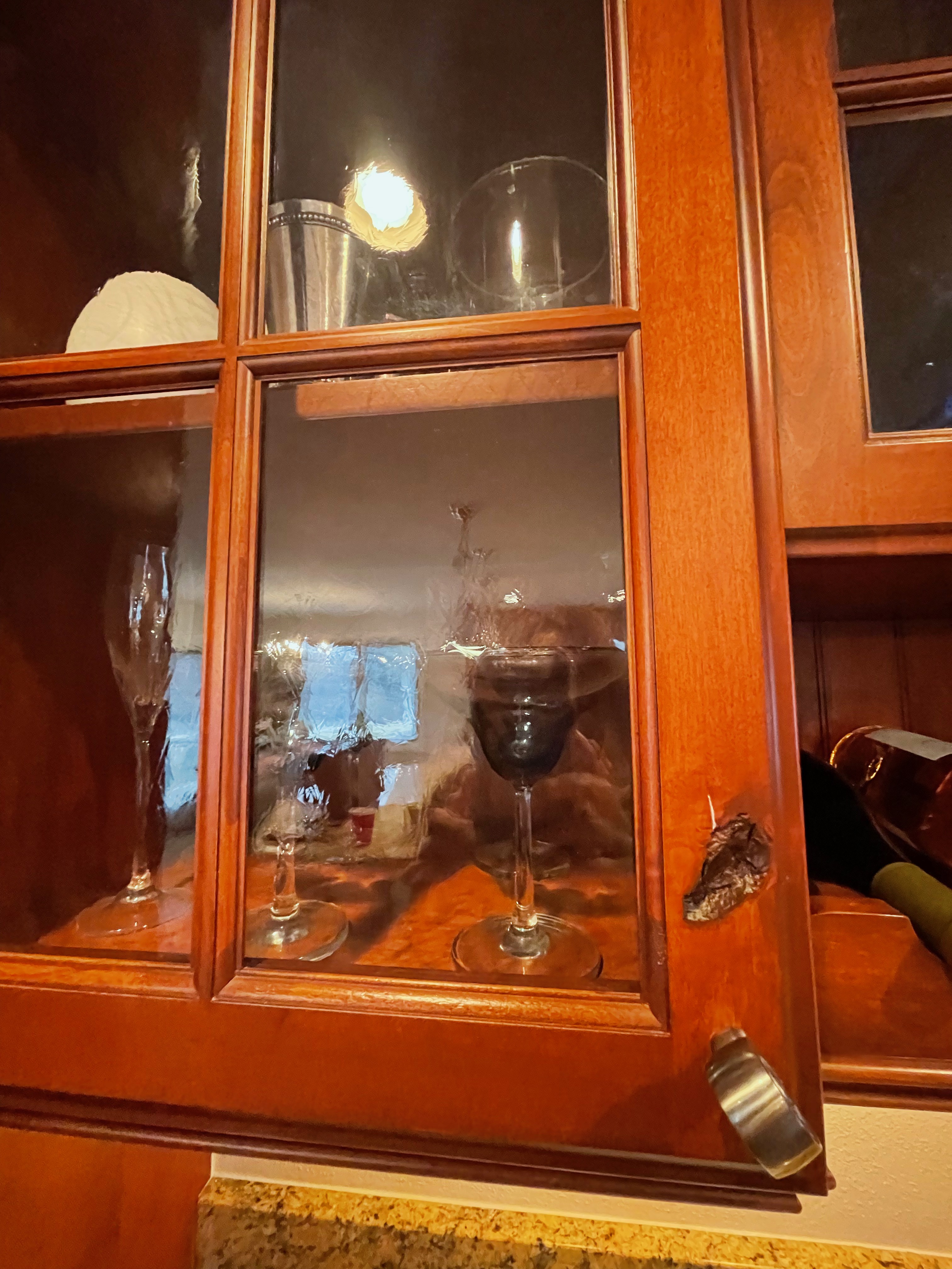2-One door glass front wall cabinets Dim.: 22 ½”w x 36”h/ 42 ¾”h x 12”d