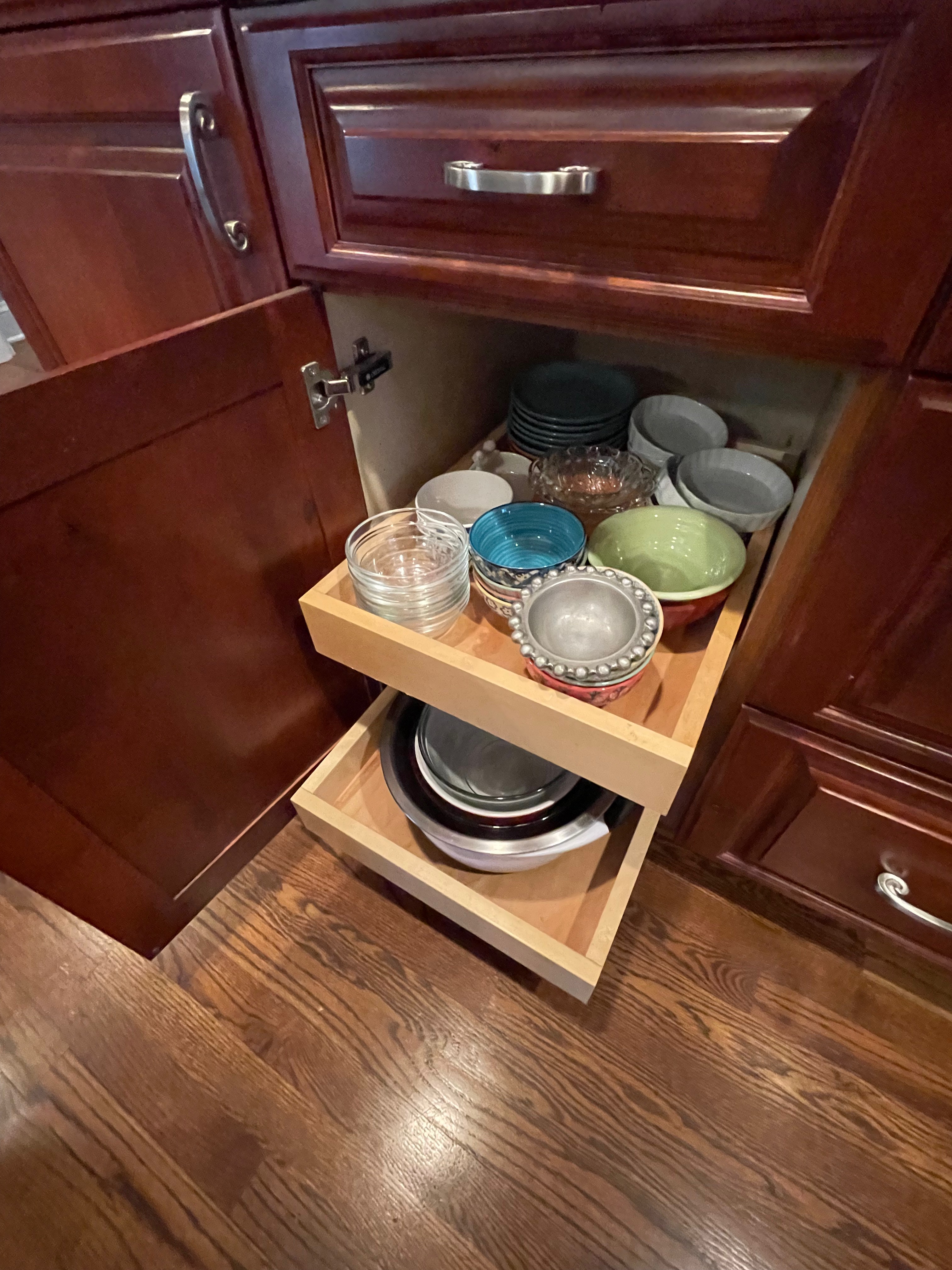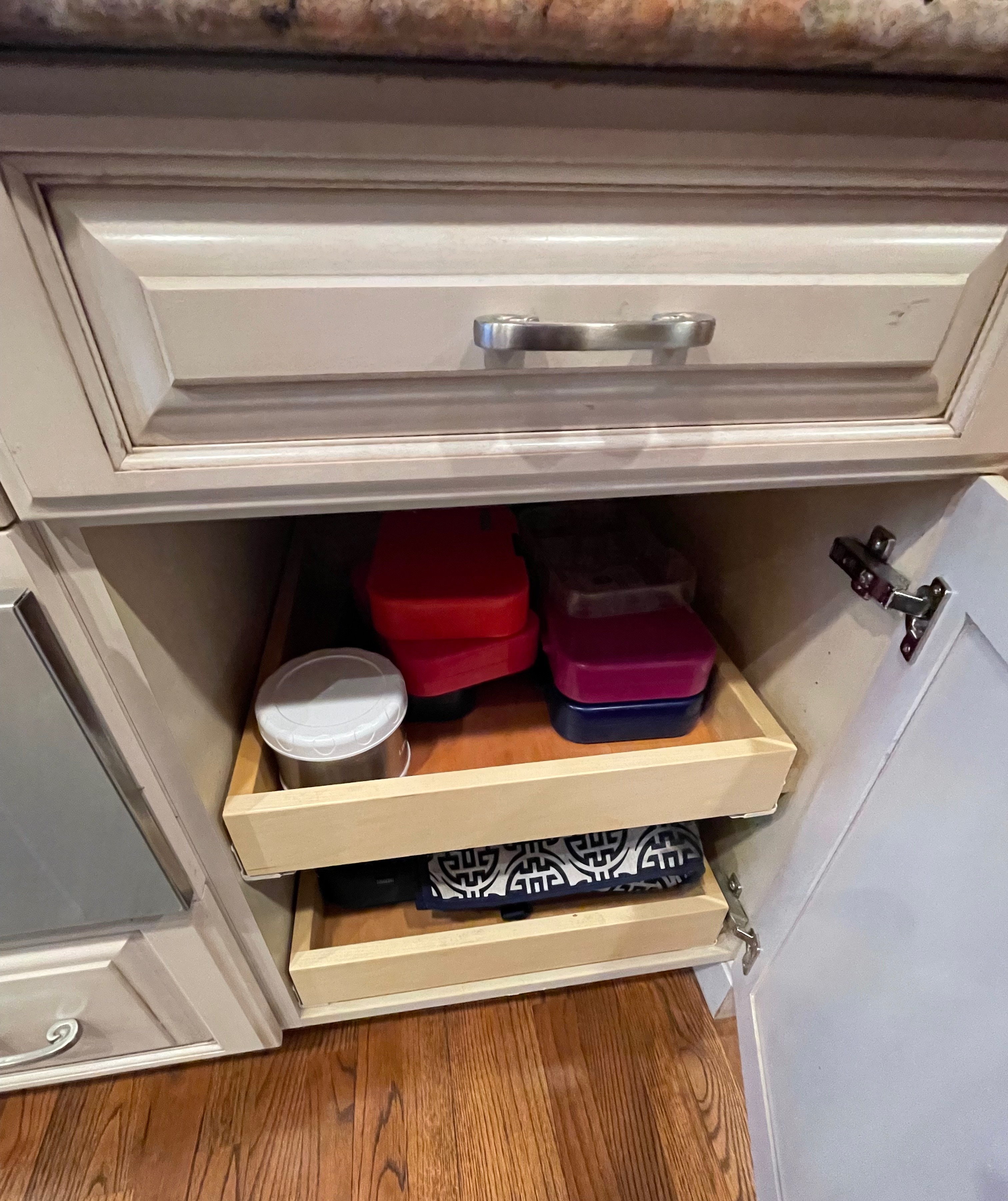 2-One drawer, One door base cabinets w/ two pull out drawers inside Dim.:18 x 36”h x 24”d