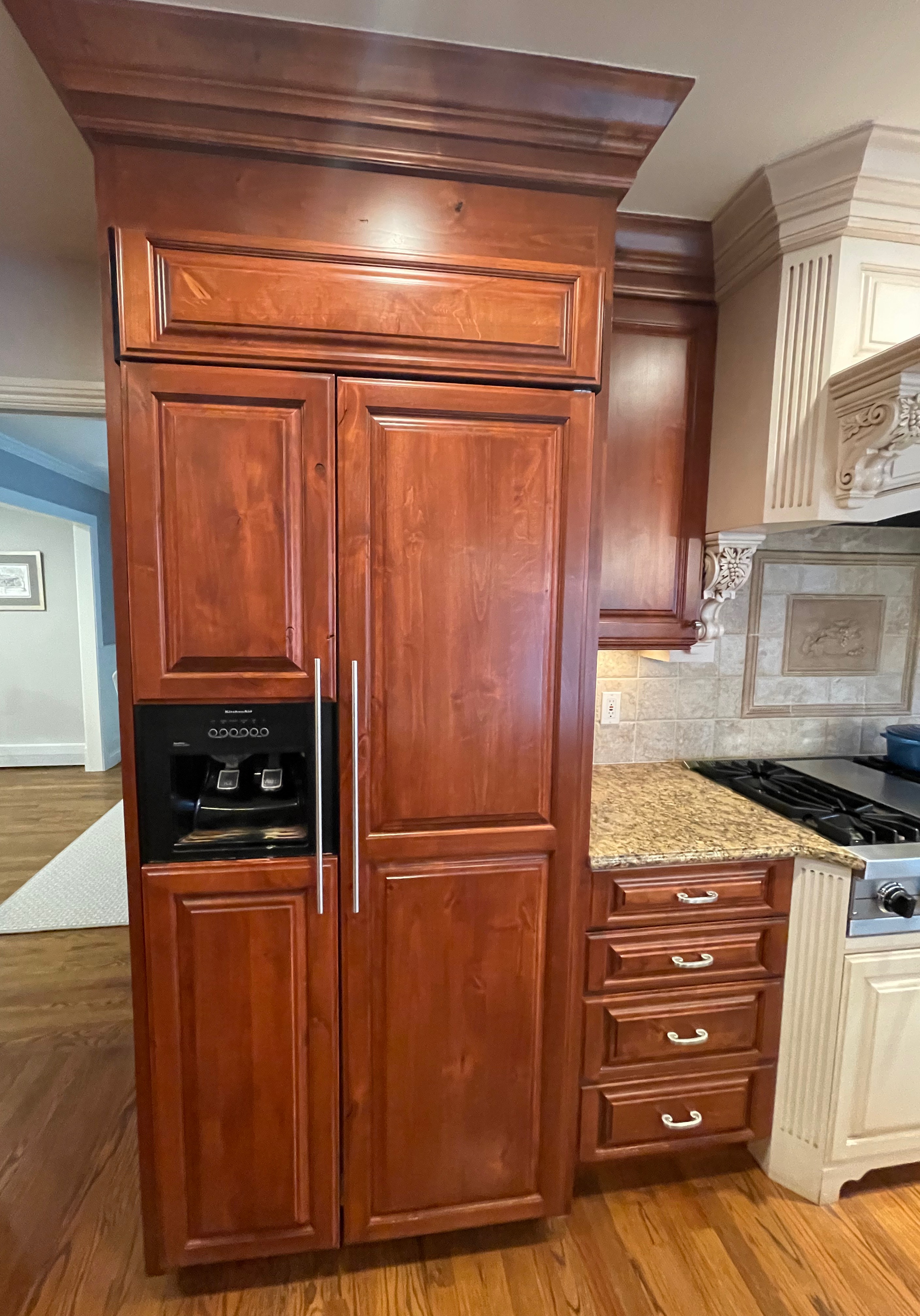 2-Three door double tall pantry cabinets, 5 pull-out drawers inside Dim.: 21”w x 90”h cab. only/96”h w/ crown x 24”d