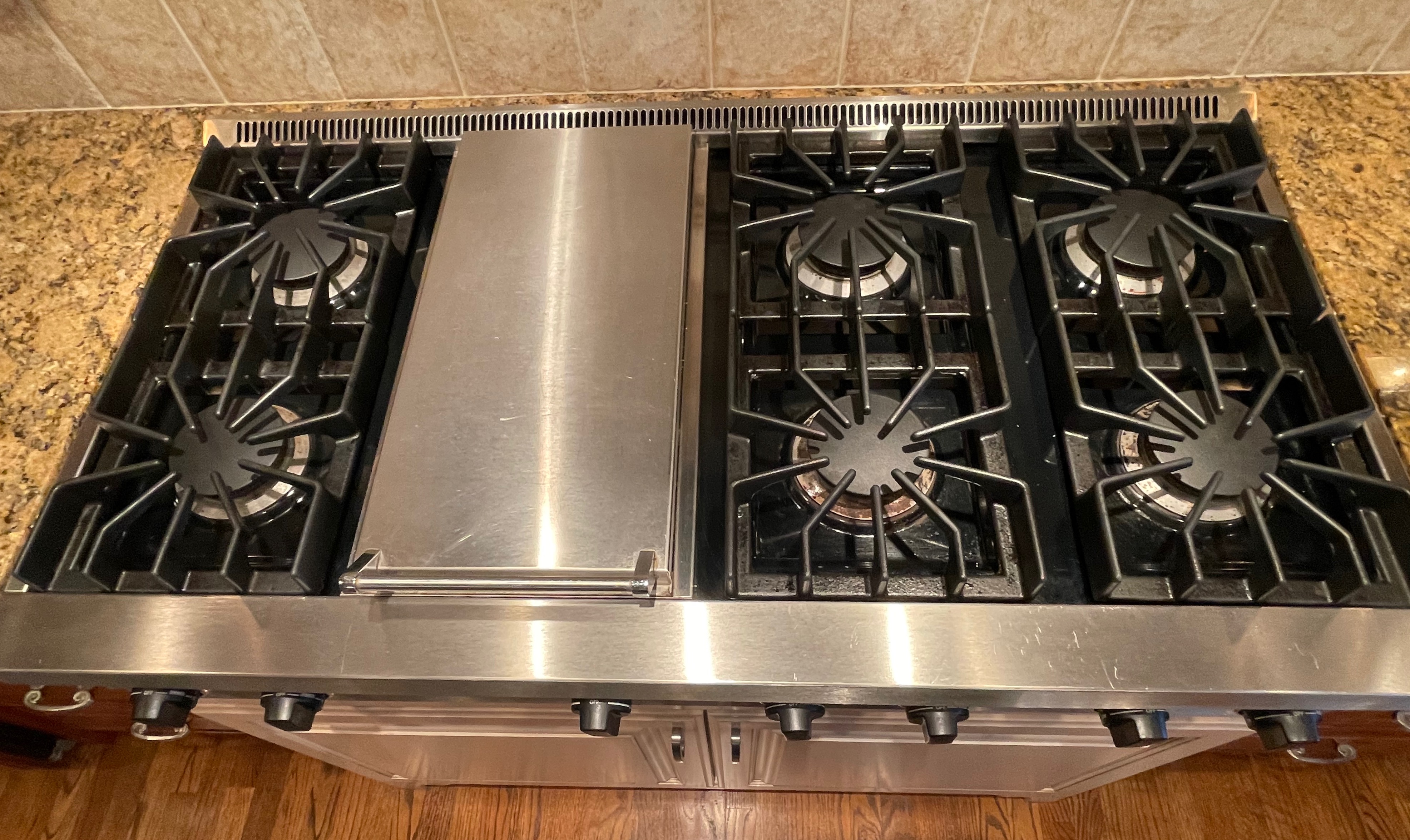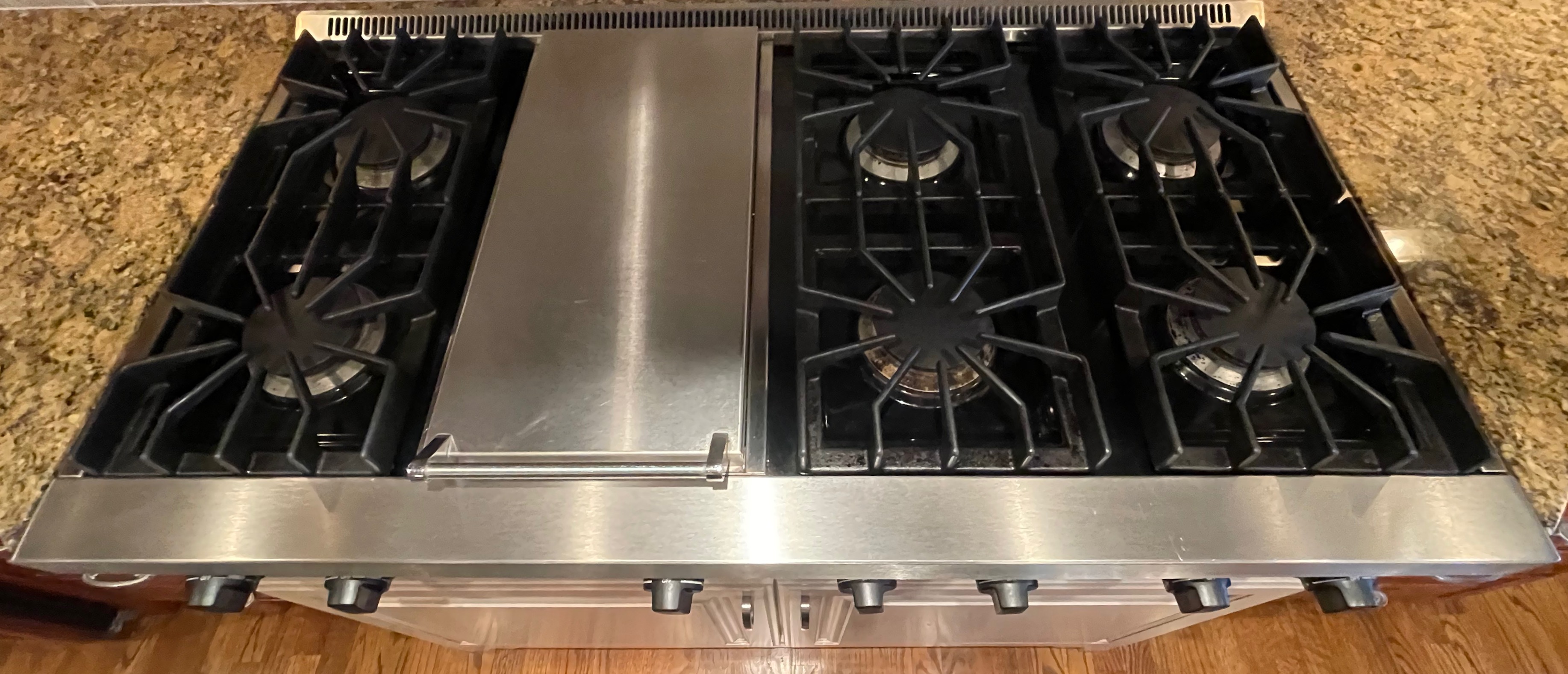 48” Viking stainless steel range top, Model: VGSU53616BSS00 Dim: 48”w x 7”h x 27”d New $7,000