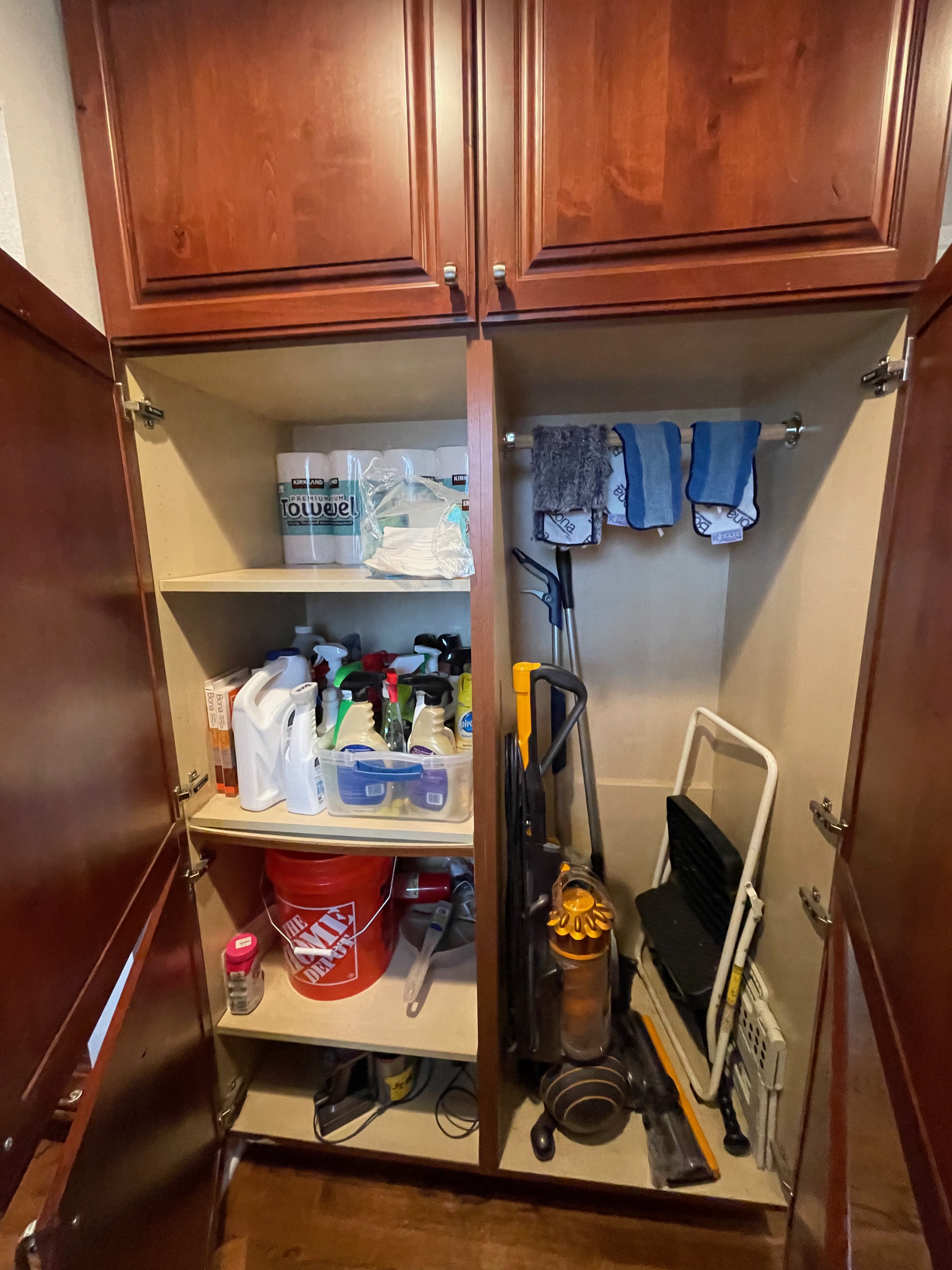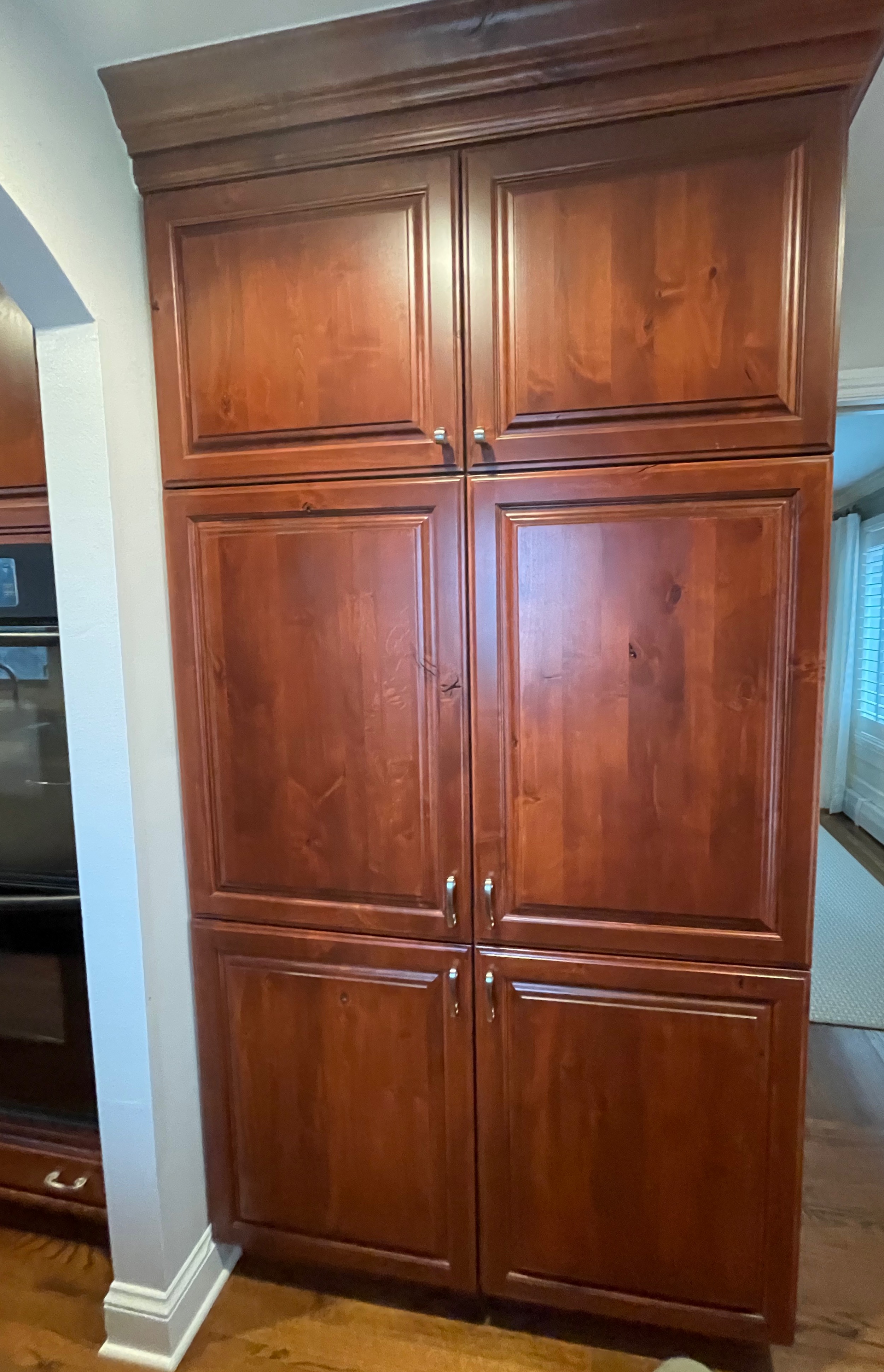 2-Three door or 6 door overall double tall pantry/broom closet cabinets Dim.: 24”w/48”w x 90”h cab. only/96”h w/ crown x 24”d