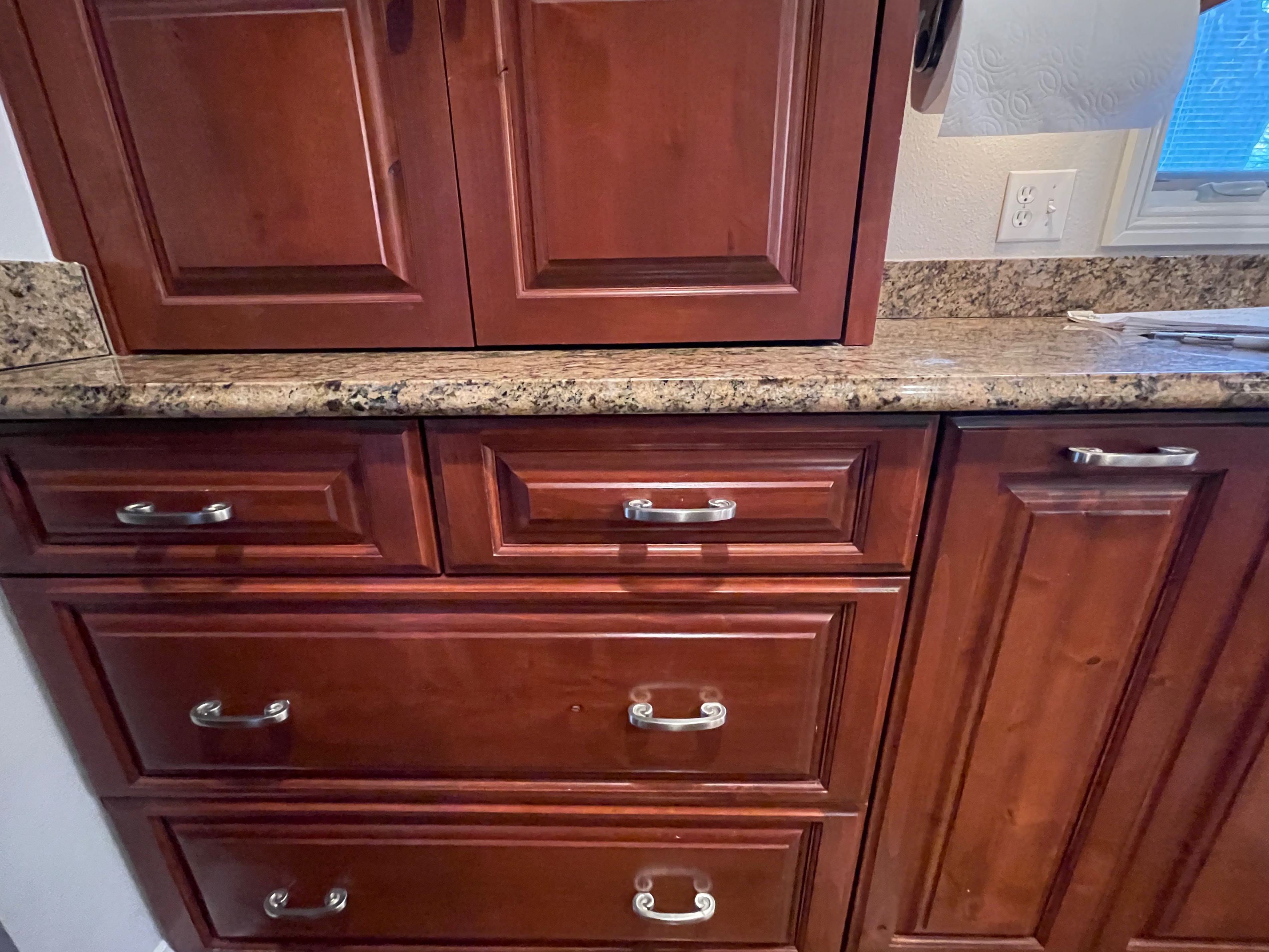 1-Four drawer base cabinet on the sink wall Dim.: 36”w x36”h x 24”d