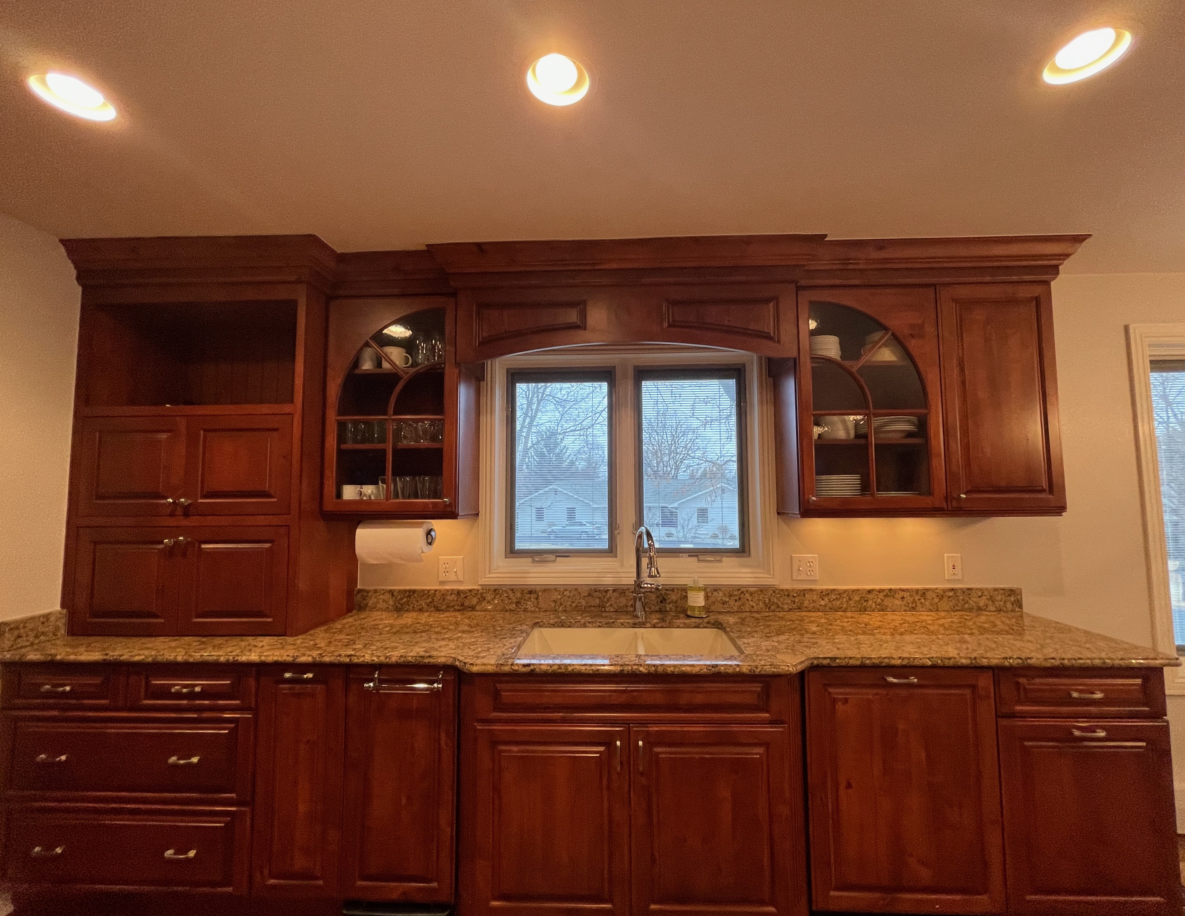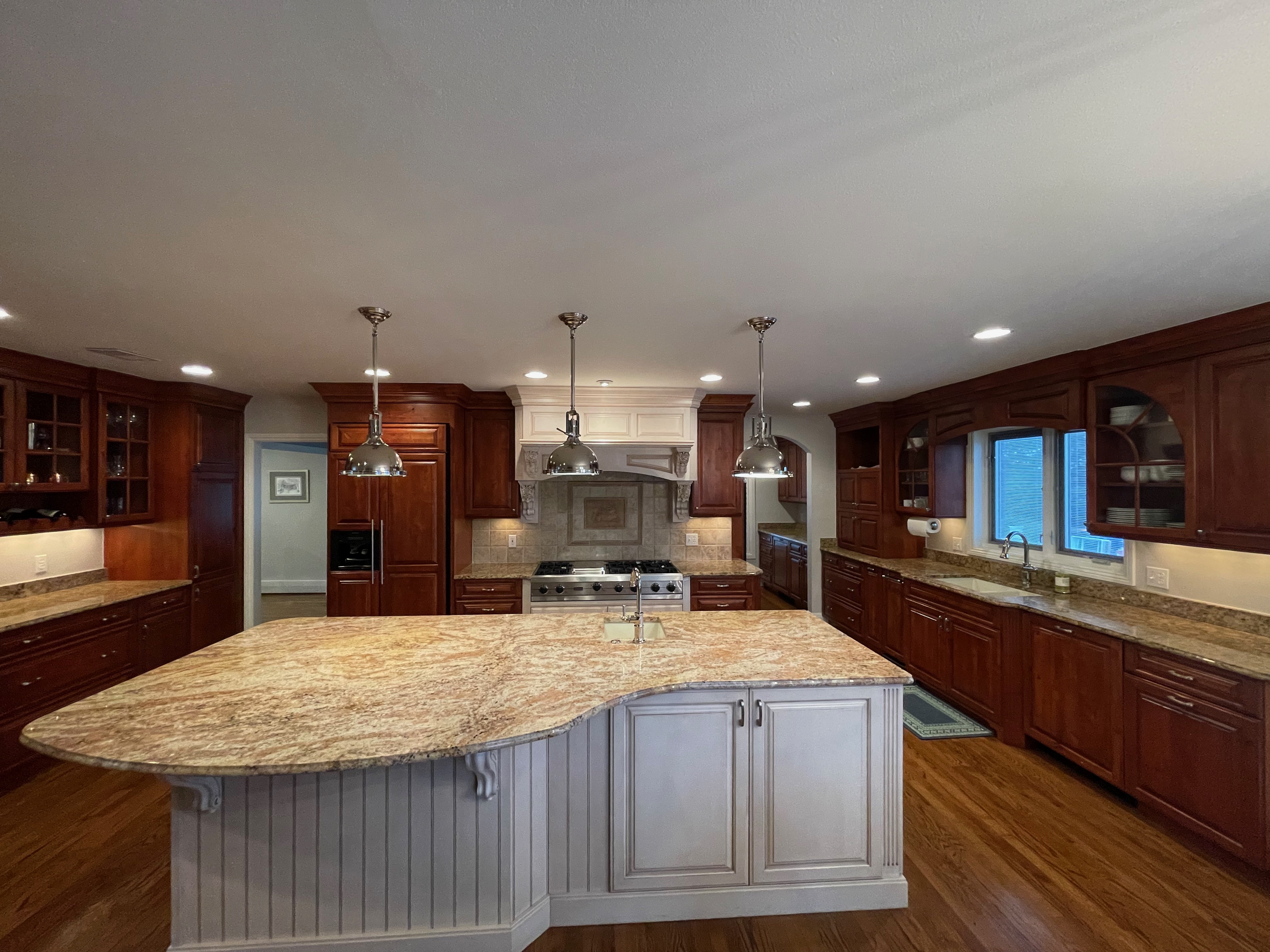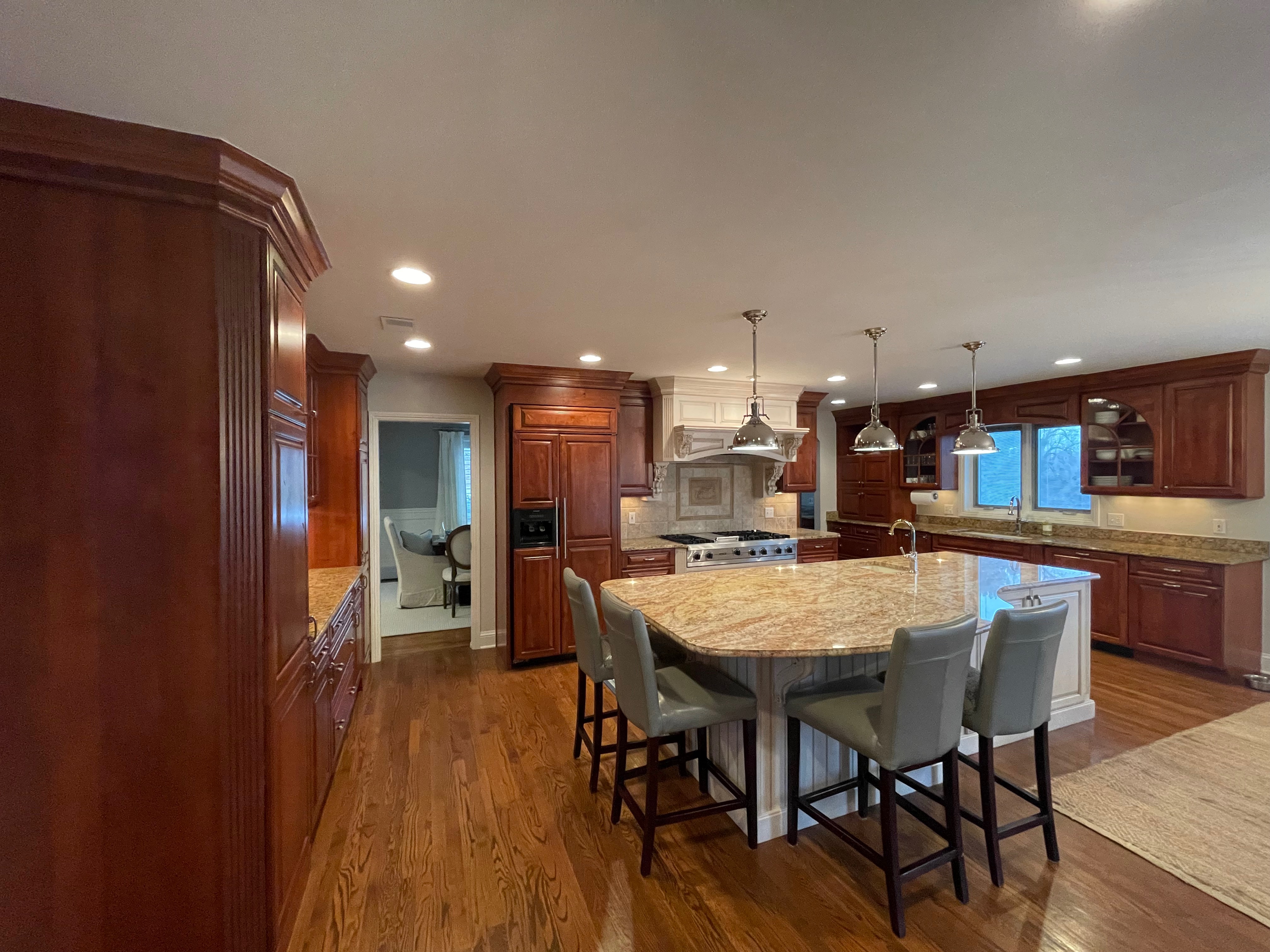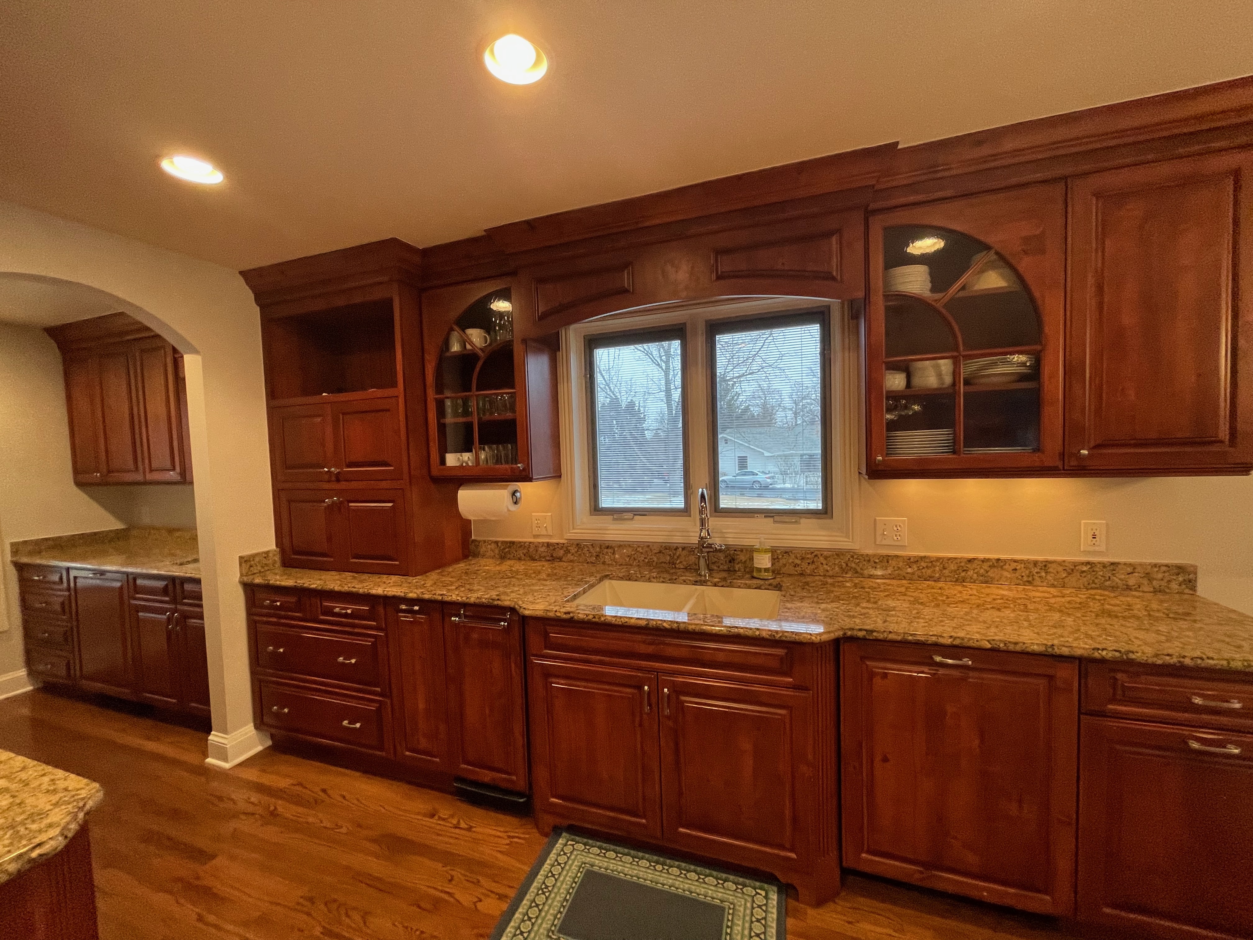 Nice “Crystal Cabinet Works” kitchen cabinets in a knotty cherry wood with contrasting cream island and wall cabinetry. The cabinets have dovetail joinery and the soft close feature. All of the appliances are included with a nice stainless steel Viking range top! To complete the package are slab granite counter tops, sinks, faucet sets and a disposal. The kitchen will fit in a kitchen with 8’ceilings. The set will be available to be removed by a qualified buyer early April or sub-contractors can be hired for the removal. Price for the package below.